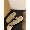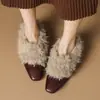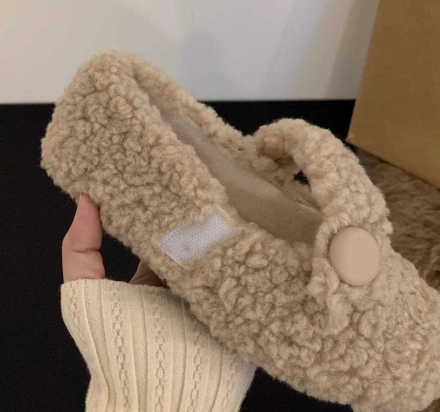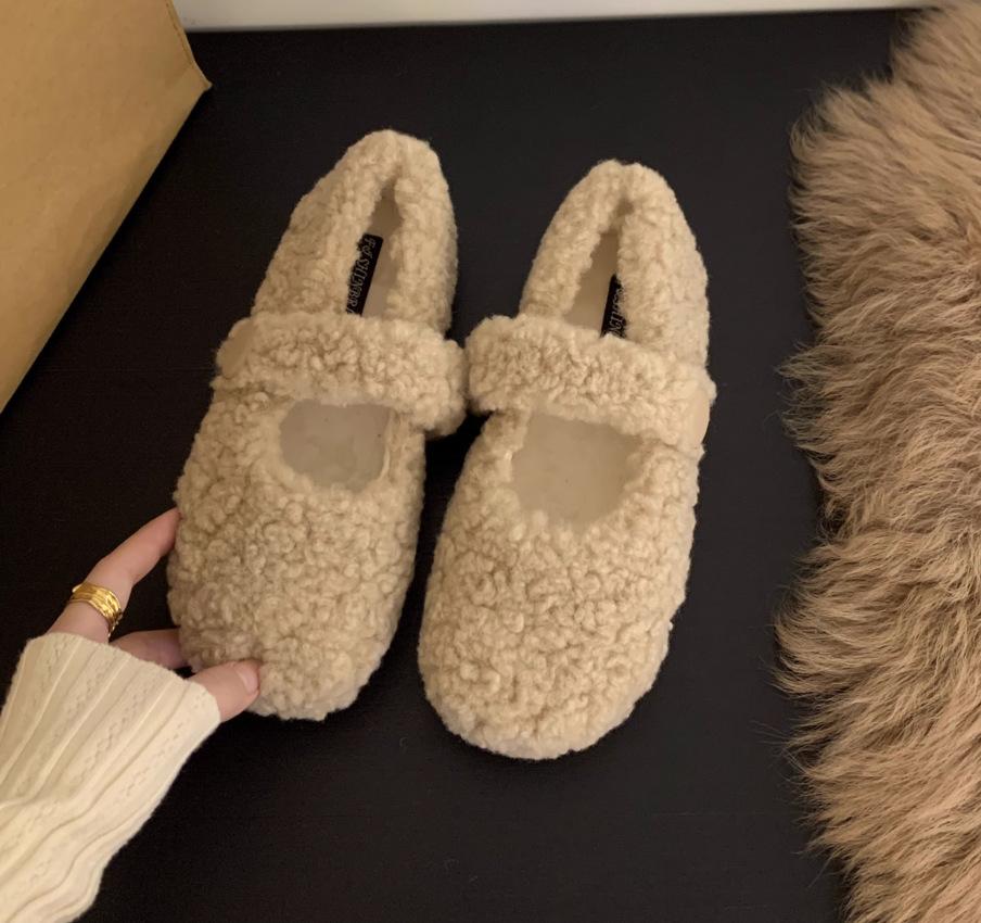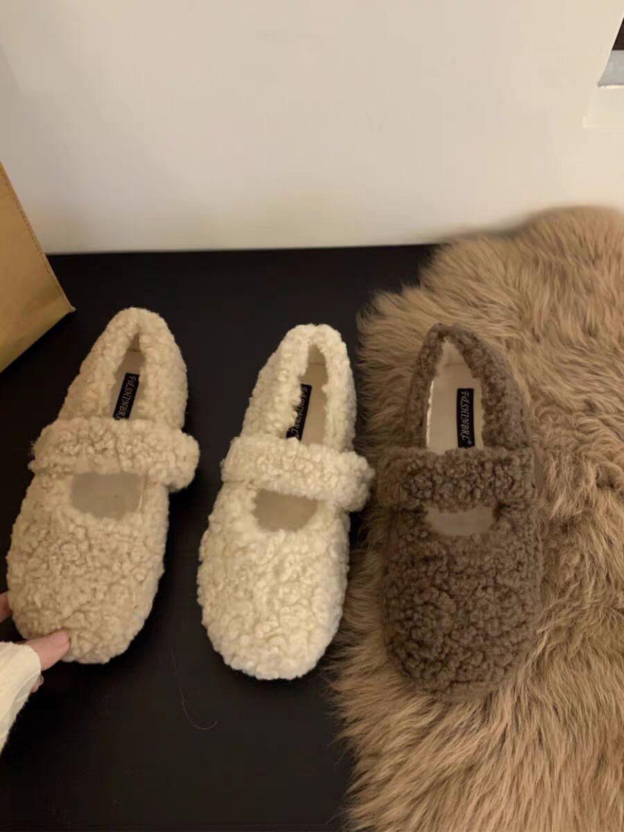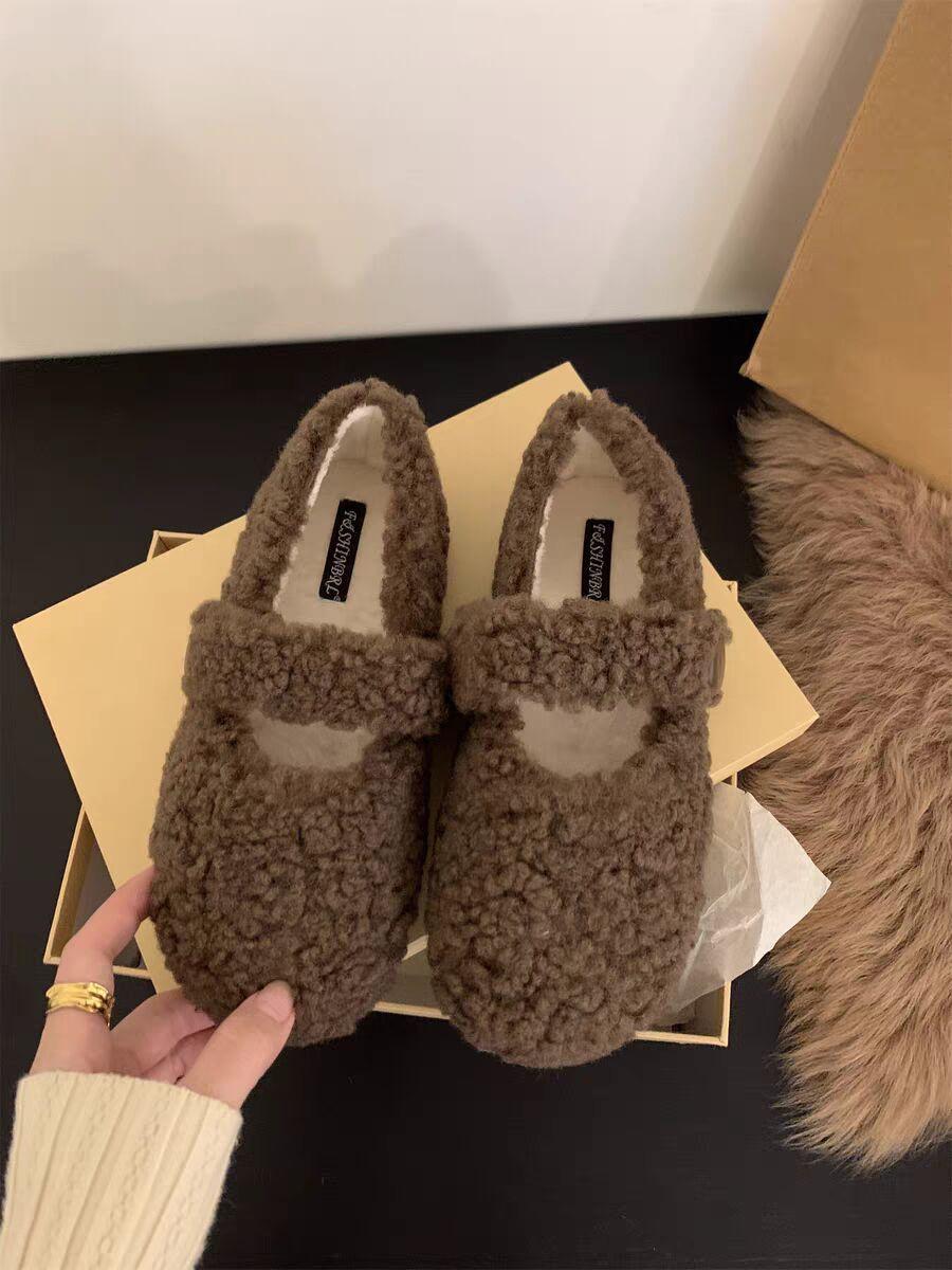 Mocasines planos de lana de cordero para mujer, ropa de invierno 2025 nuevo, zapatos de frijol de felpa, Mary Jane de una sola correa, zapatos sencillos
