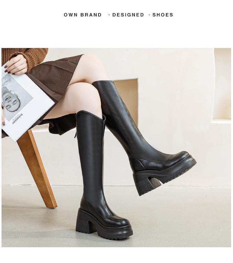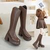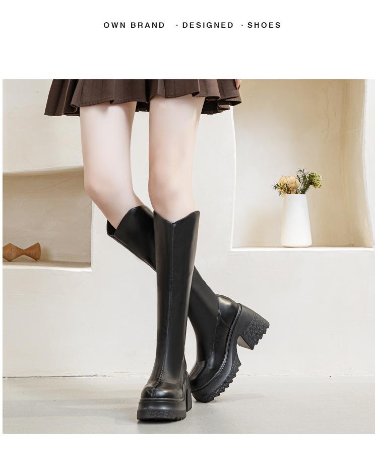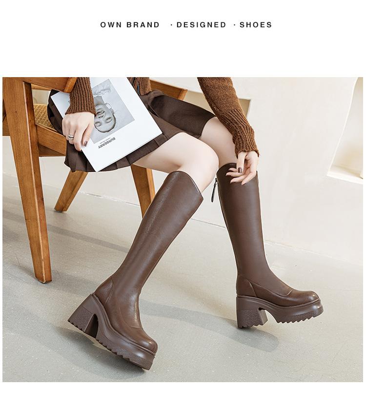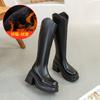 Botas de Mujer Altas hasta el Muslo con Tacón Grueso 2025 Botas Largas por Encima de la Rodilla Primavera Tacón Alto Botas de Caballero Suela Gruesa Botas Adelgazantes