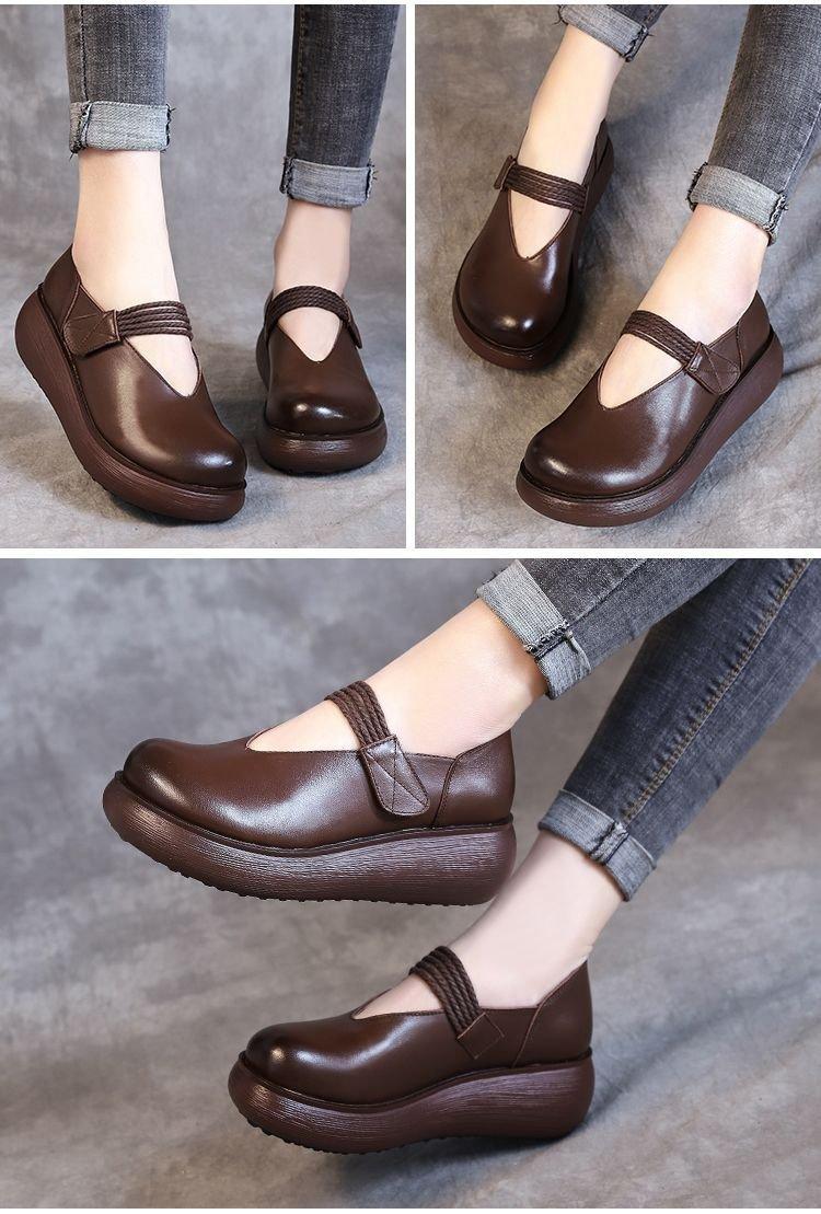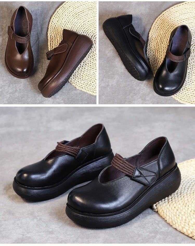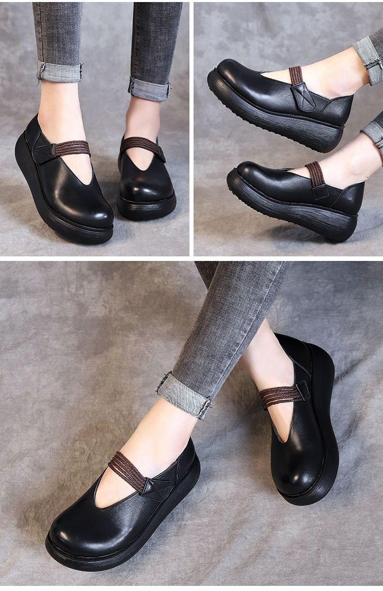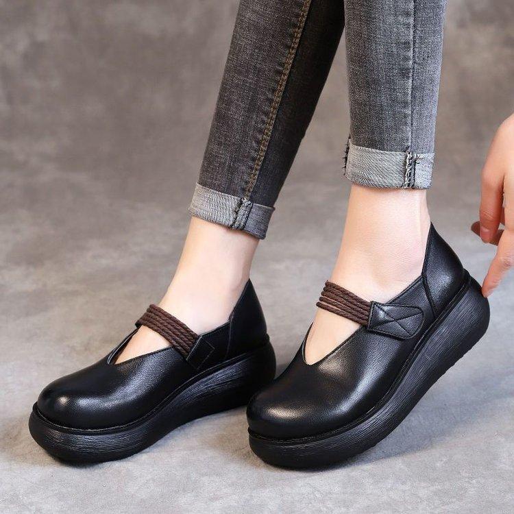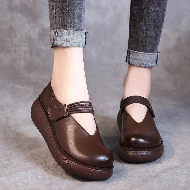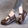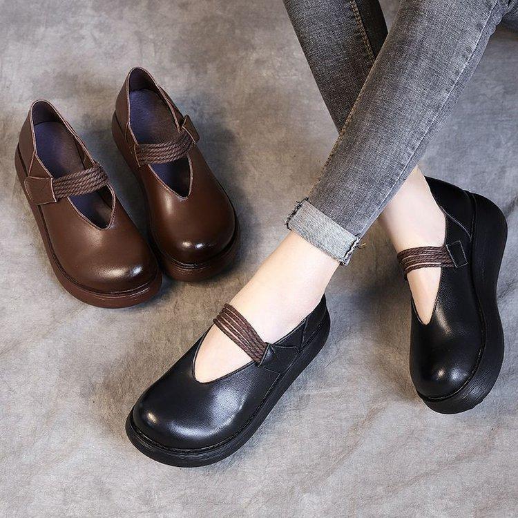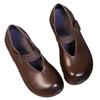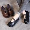 Zapatos de mujer estilo étnico de otoño estilo páramo 2025 nuevos suela blanda punta redonda zapatos de cuero pequeños suela gruesa retro zapatos individuales de madre