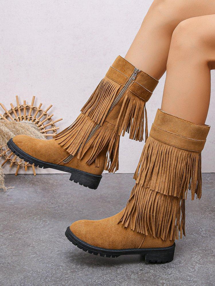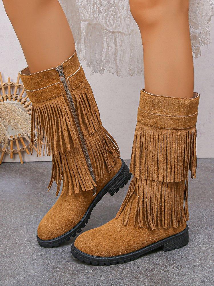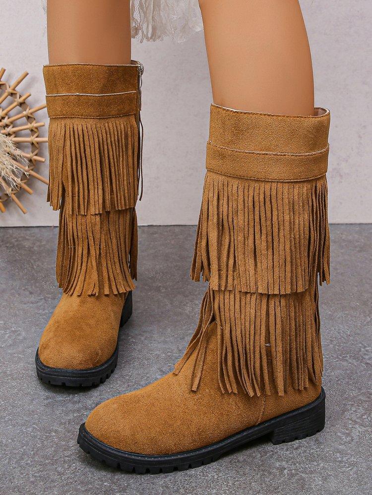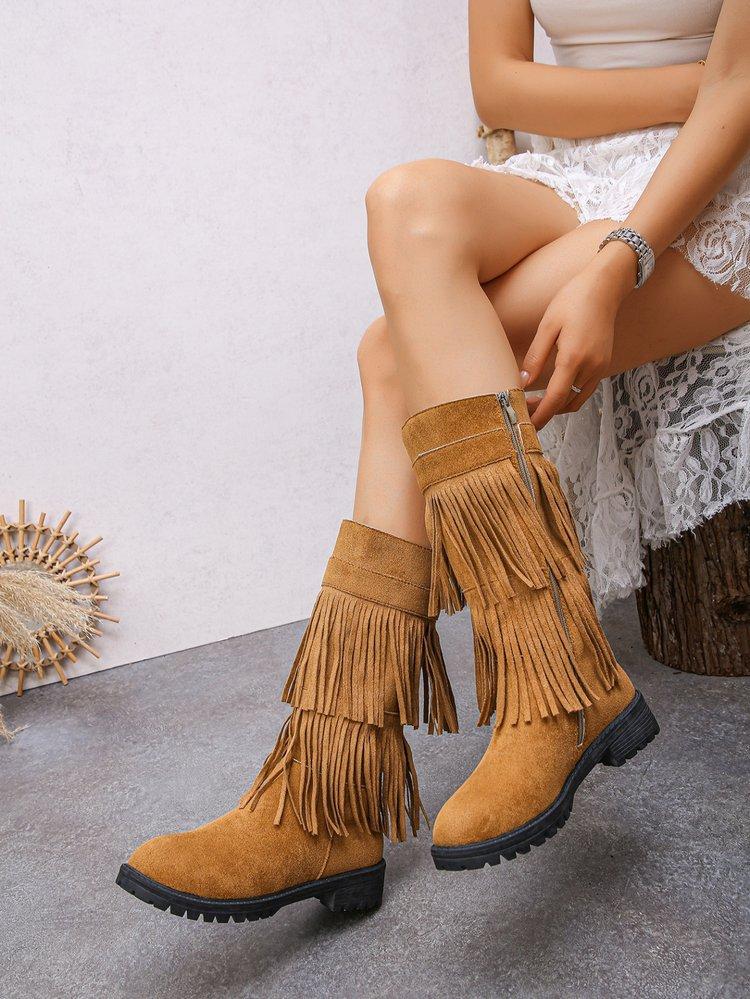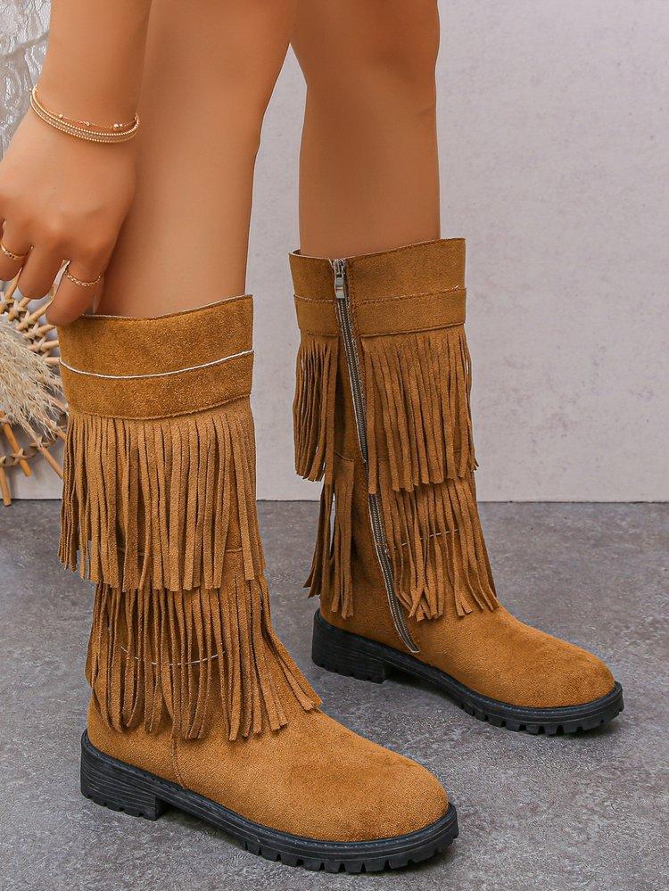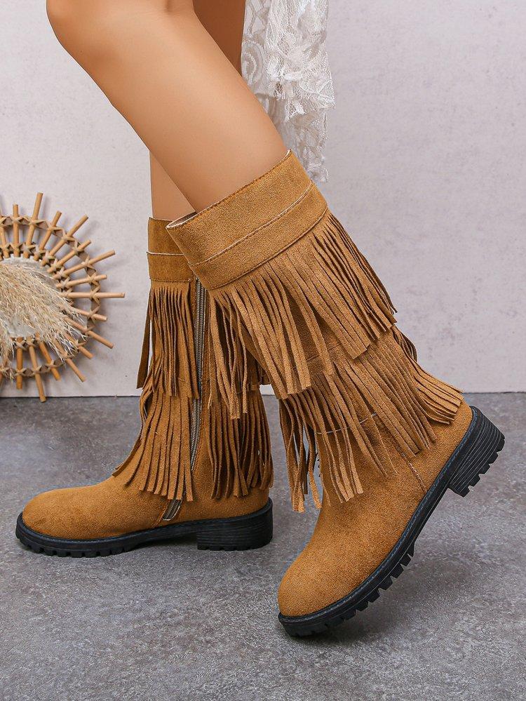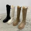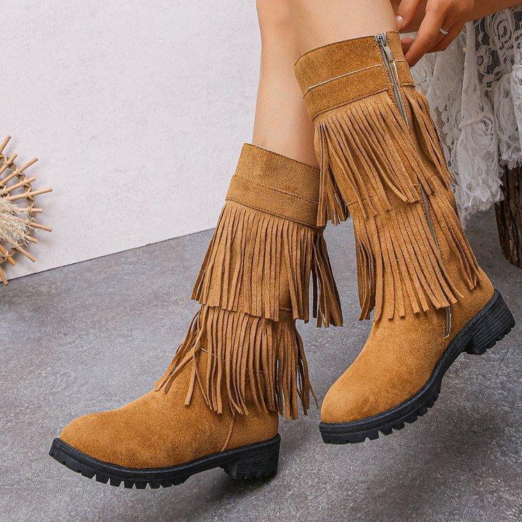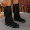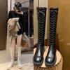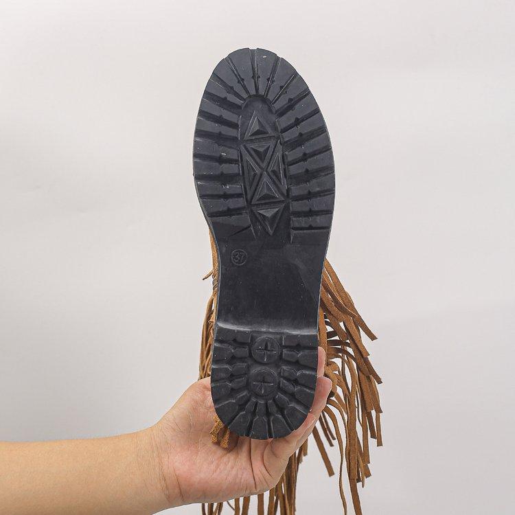 Botas Altas Hasta el Muslo de Talla Grande Transfronterizas para Mujer Otoño Invierno Borla Estilo Europeo y Americano Cierre Lateral Estilo Retro Botas de Caballero con Estoperoles para Mujer