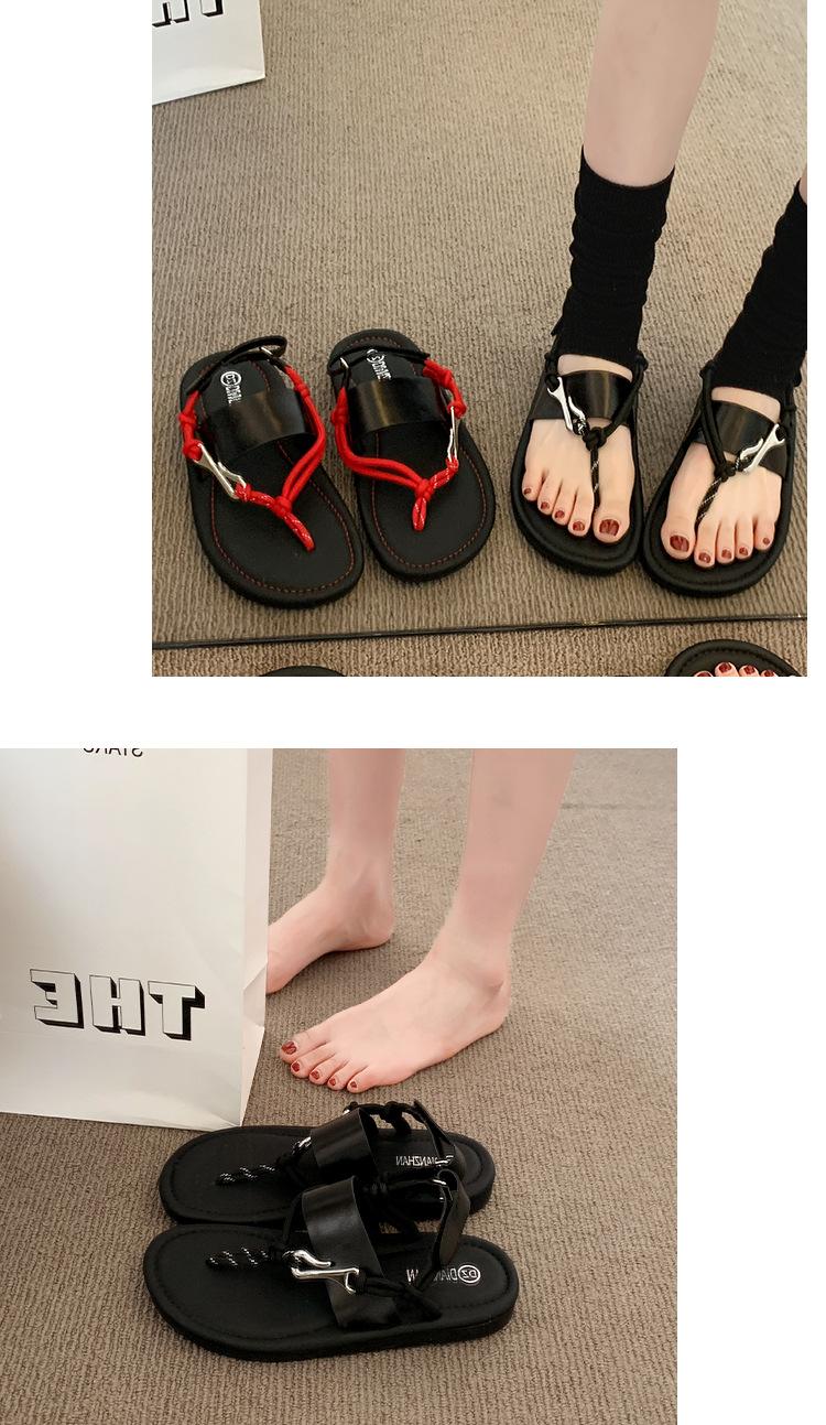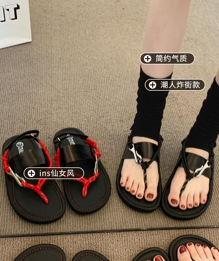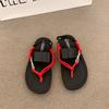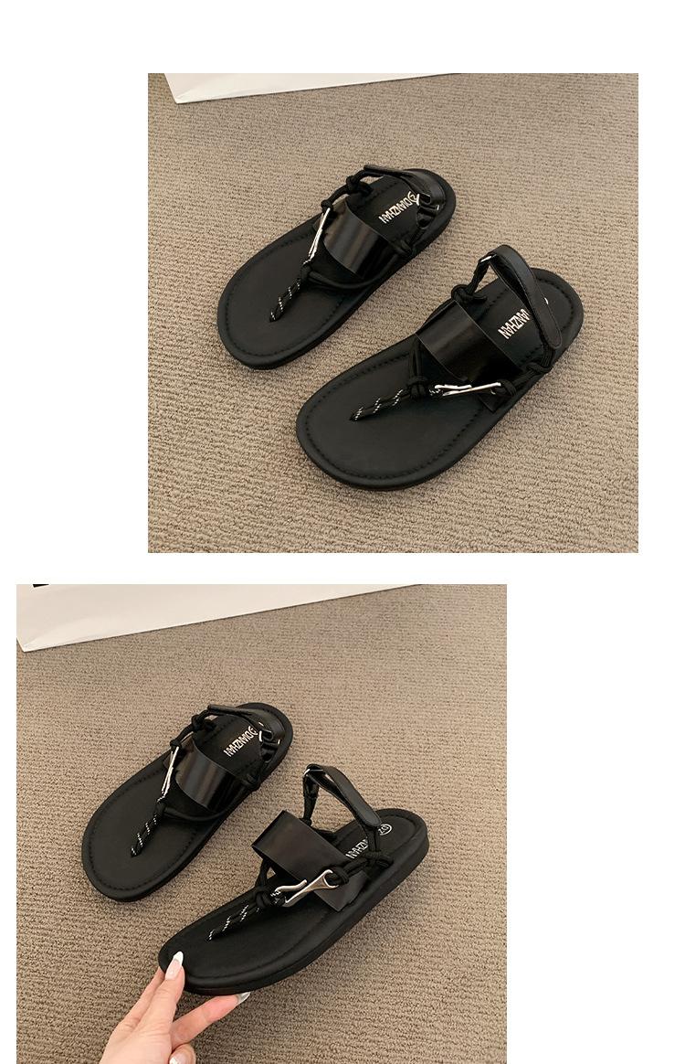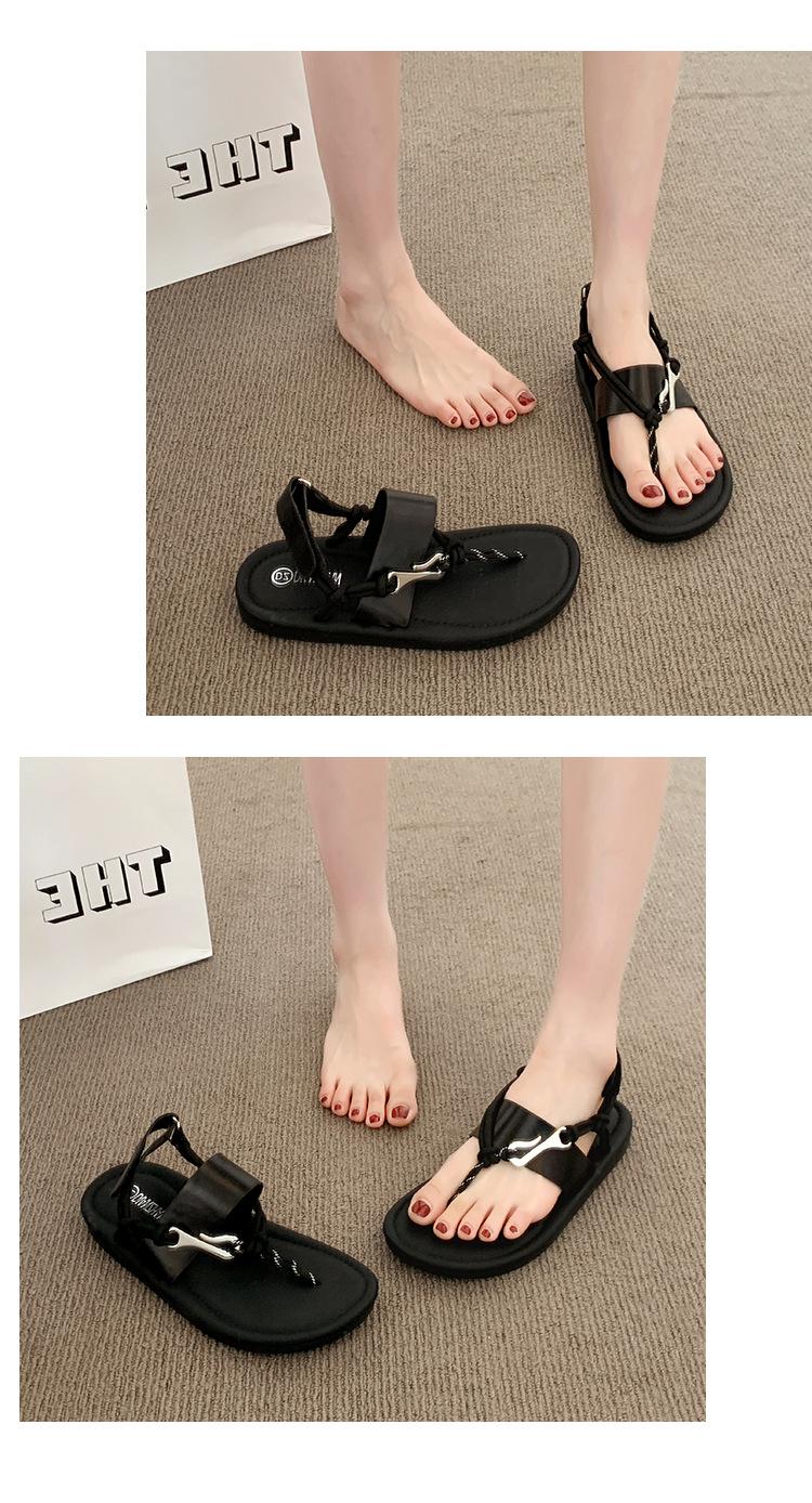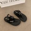 Sandalias de Tanga Romanas Vintage Negras Casuales de Verano con Punta Abierta Planas de Vacaciones en la Playa de Una Tira para Mujer
