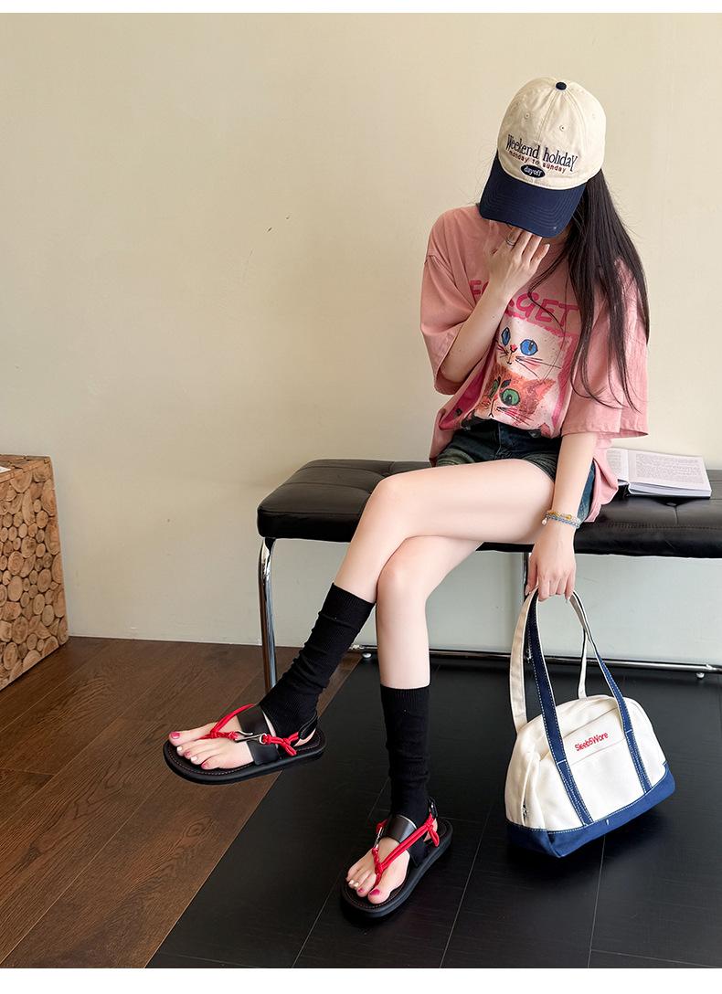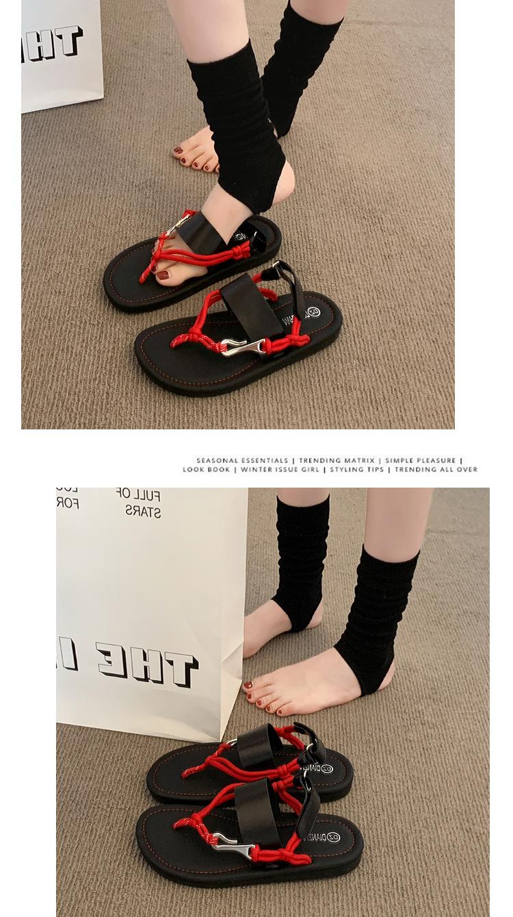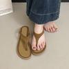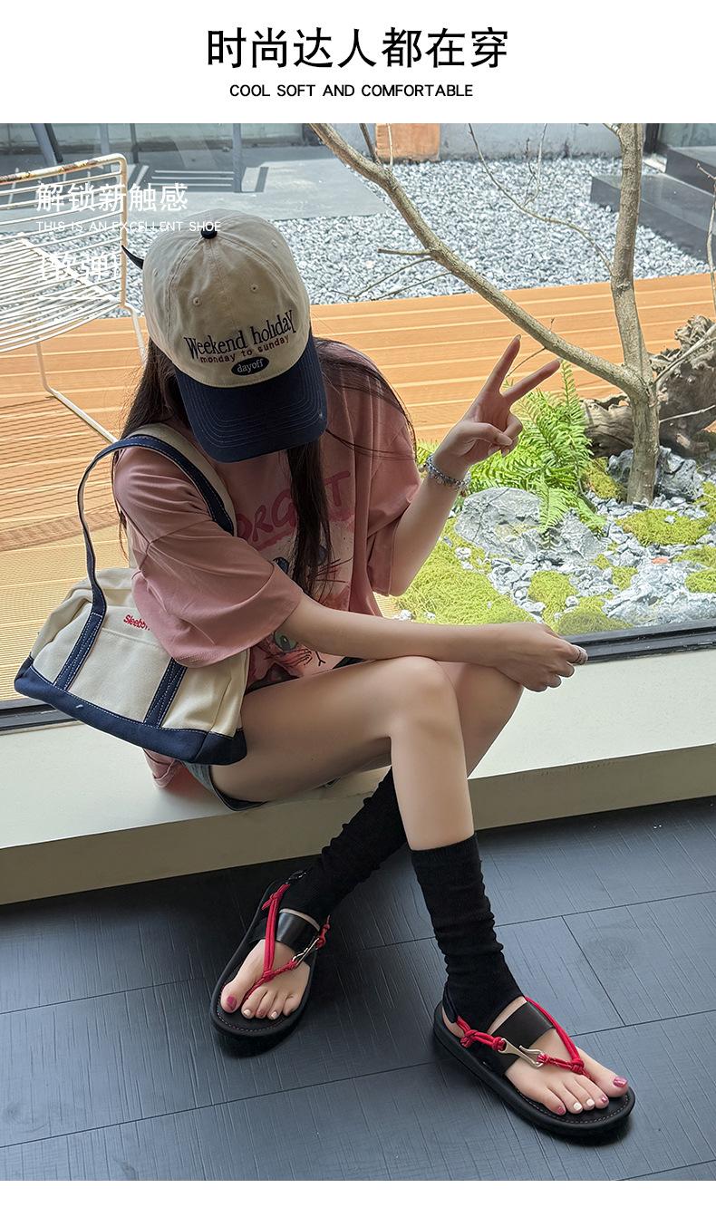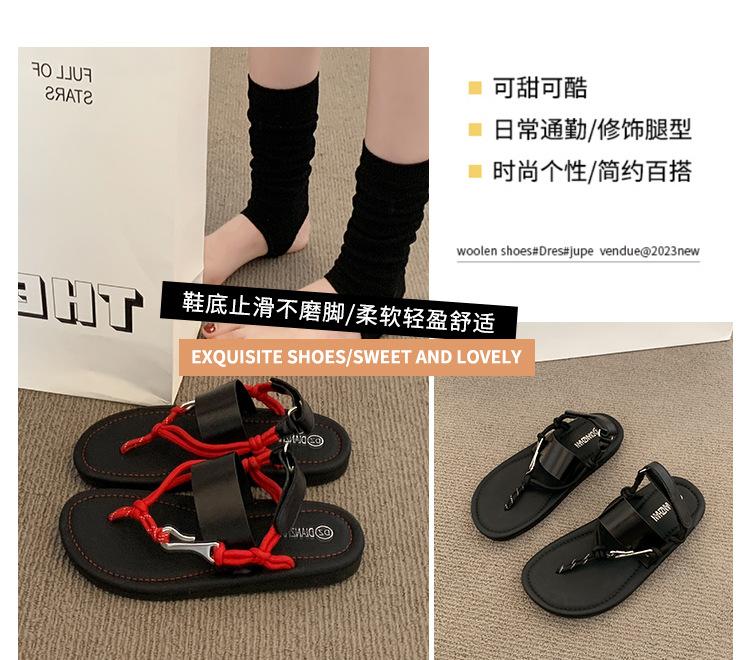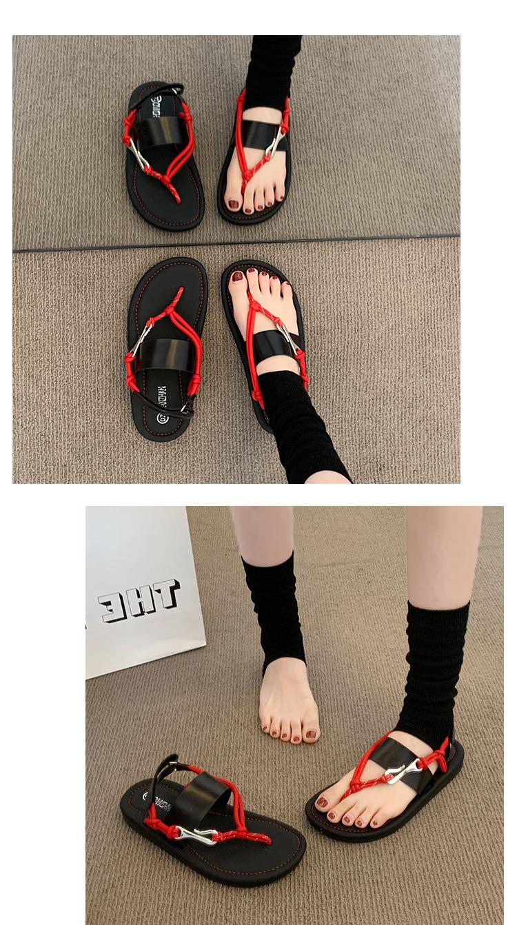 Sandalias de Tanga Romanas Vintage Negras Casuales de Verano con Punta Abierta Planas de Vacaciones en la Playa de Una Tira para Mujer
