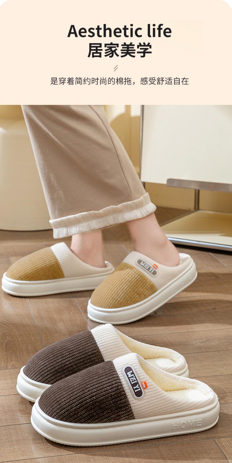 2025 Invierno Nuevo Moda para Hombre para Estar en Casa Interior Suela Gruesa Antideslizante Ropa de Exterior Pantuflas de Algodón Cálidas de Felpa para Mujer