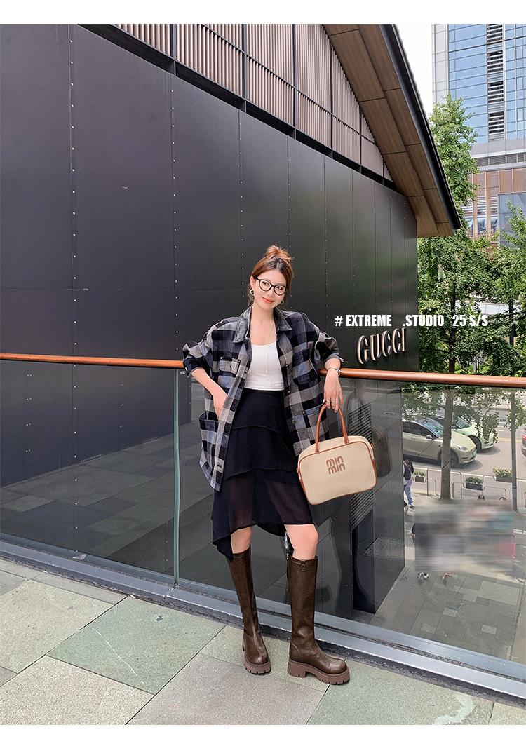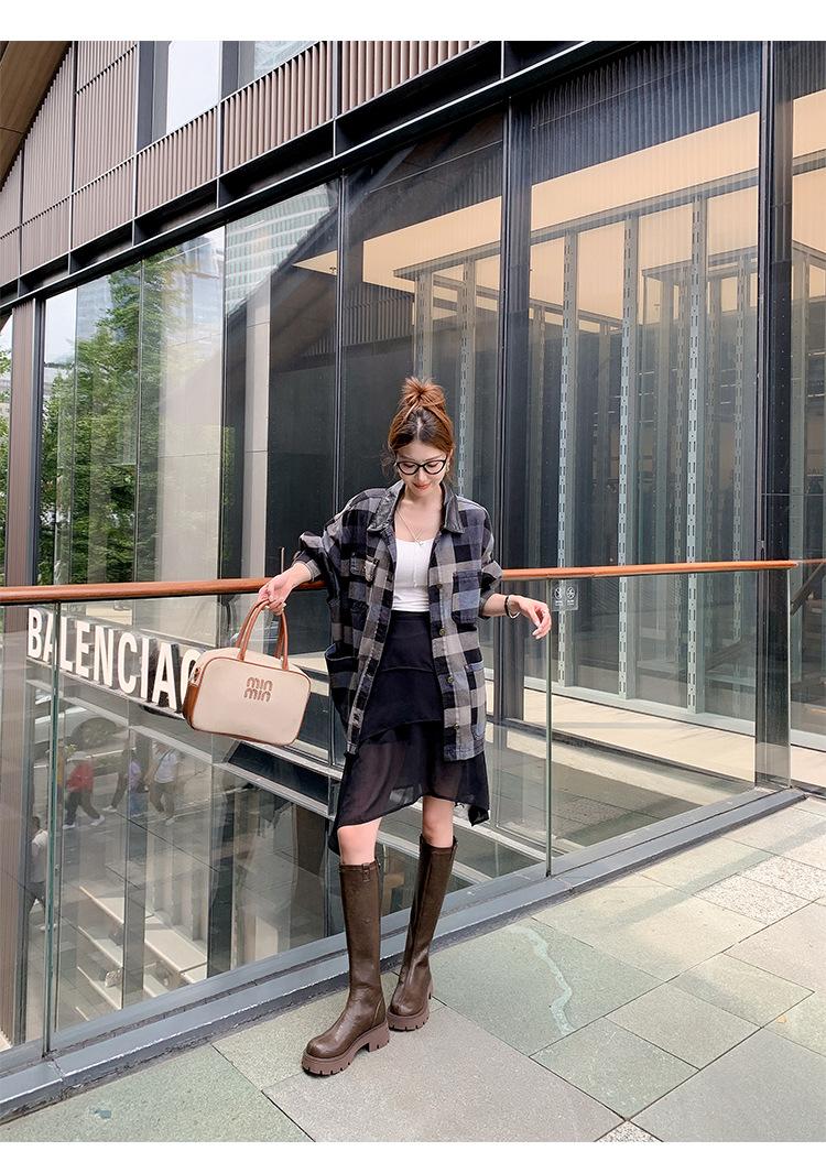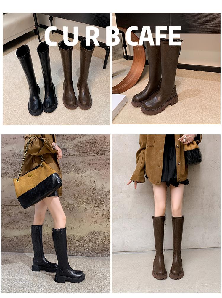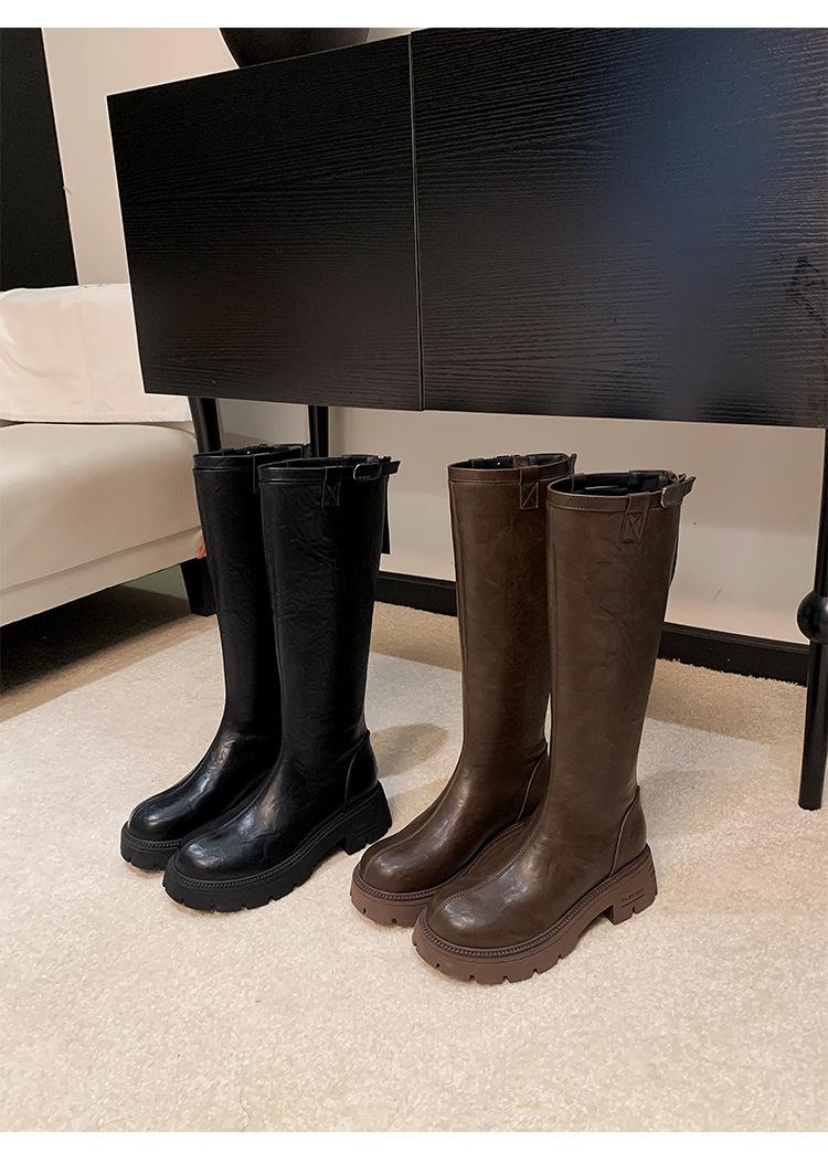 Botas Largas Estilo Coreano 2025 Nuevo Otoño/Invierno Zapatos de Suela Gruesa Botas Martin Mujeres Estatura Petite Botas de Jinete Botas Altas Botas Largas