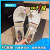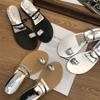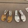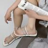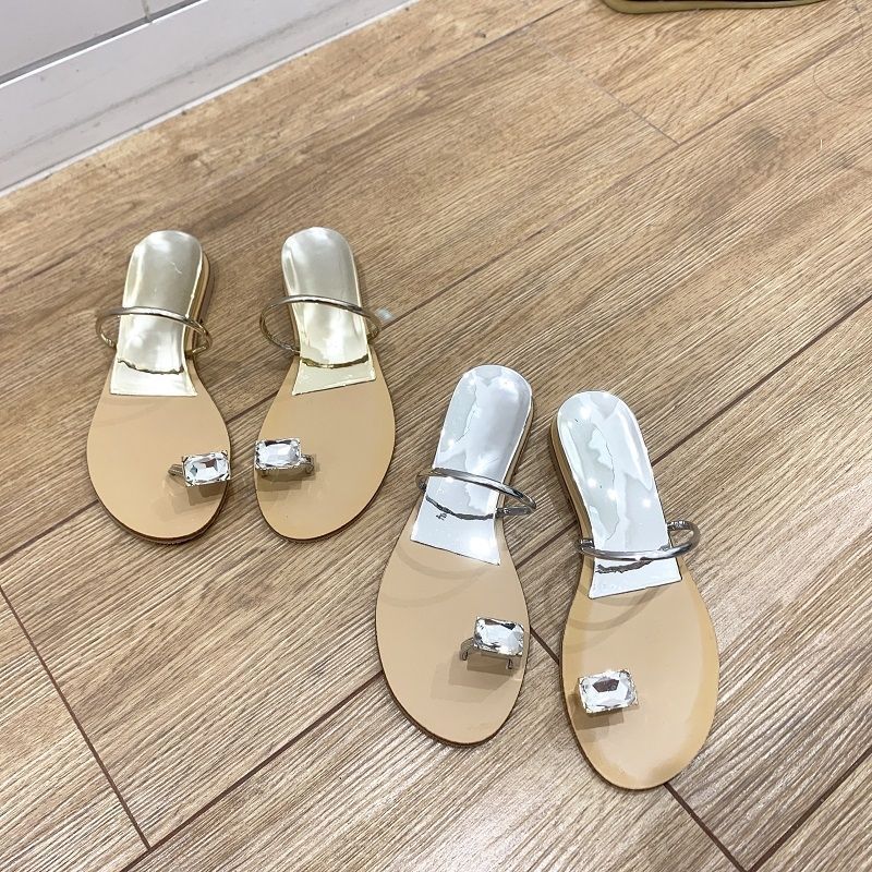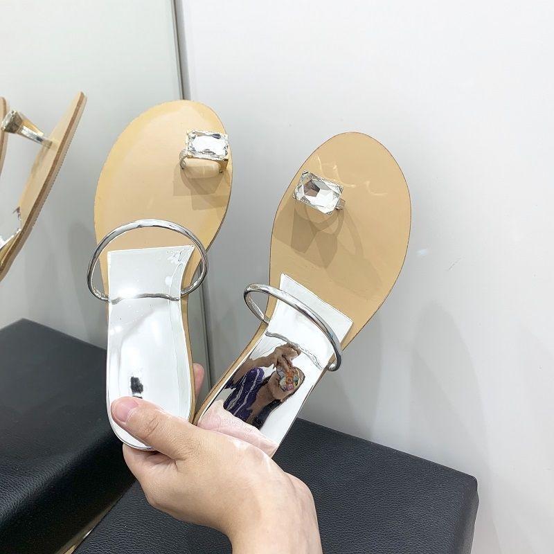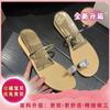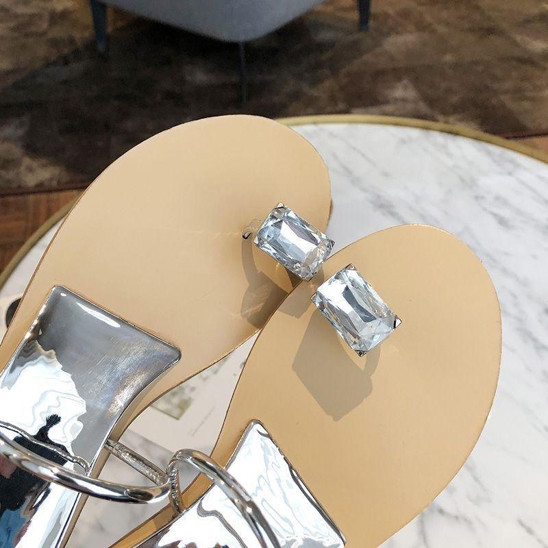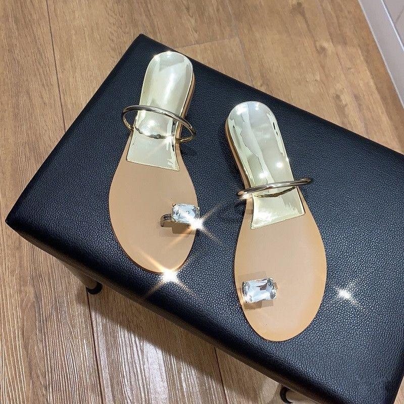 Elegante ropa de exterior adelgazante estilo hermana mayor clip sandalias planas zapatillas de playa con pedrería para mujer dedo en huevo de paloma