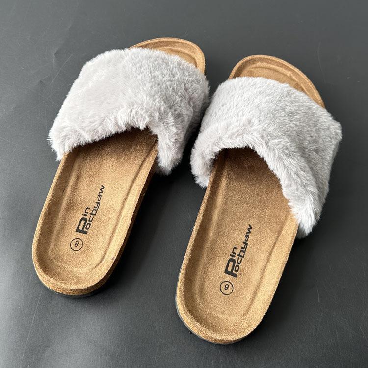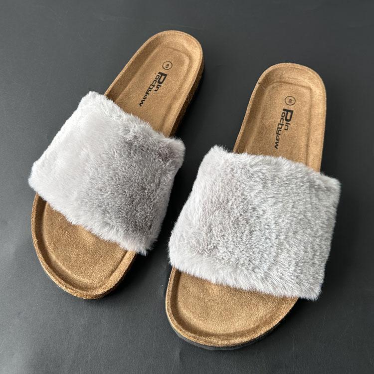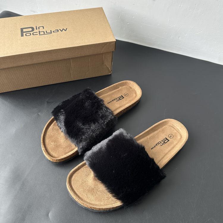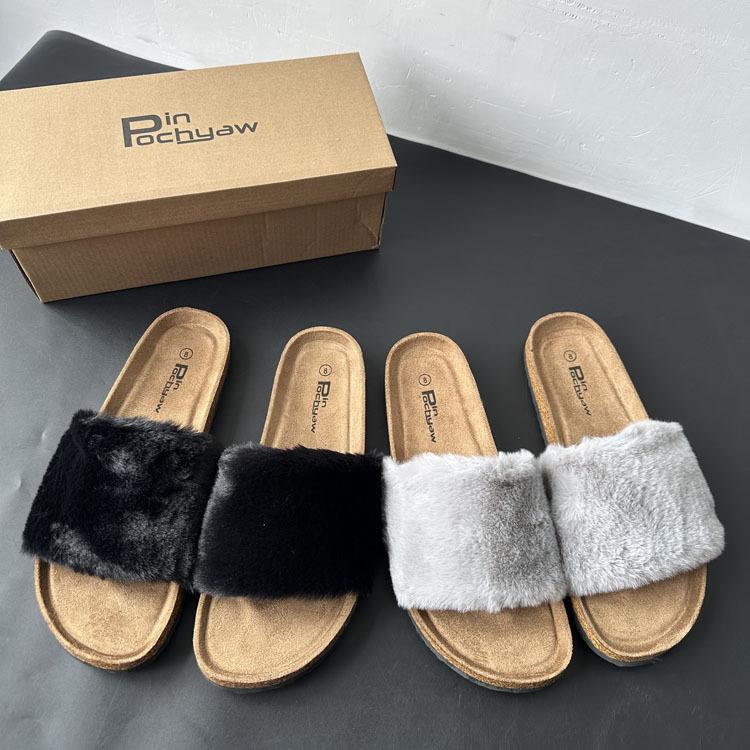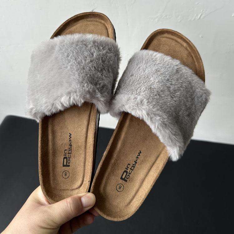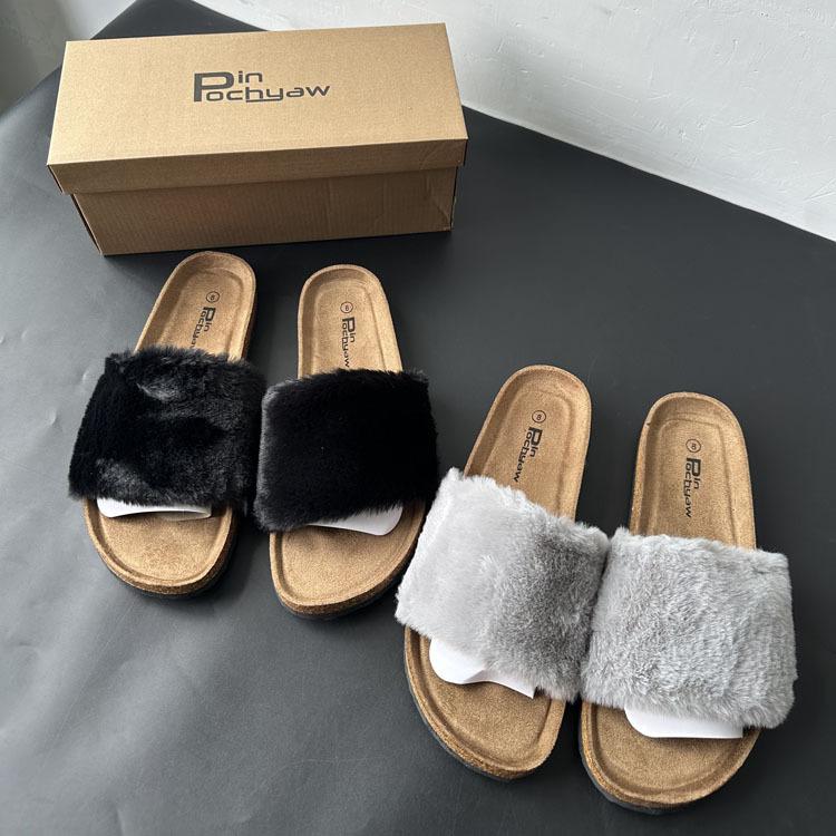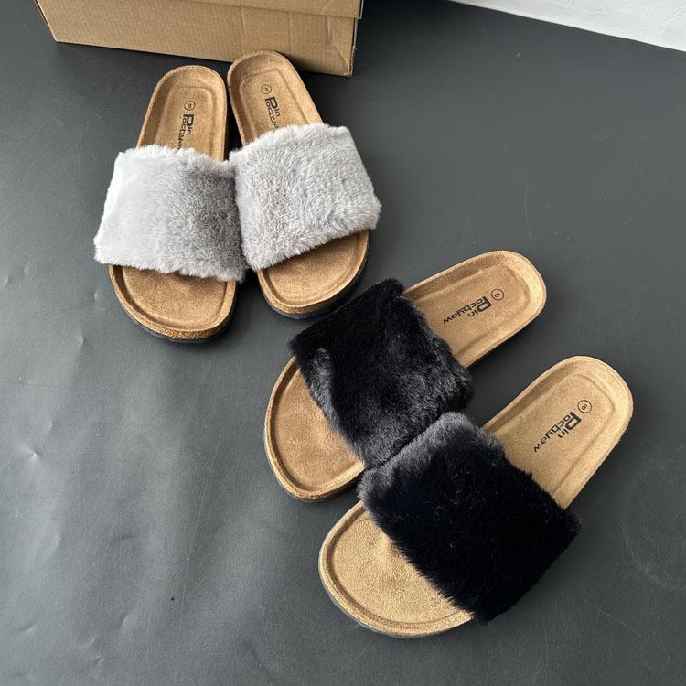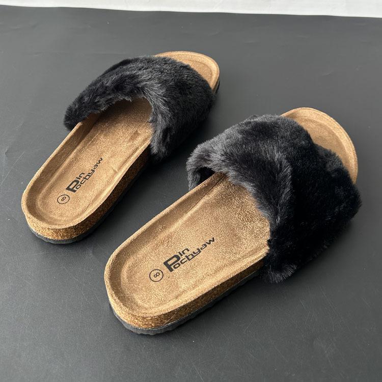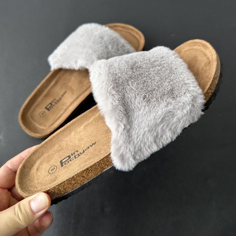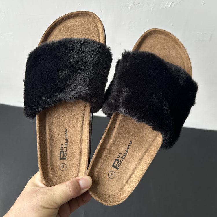 2025 Otoño Nueva Moda Versátil Zapatillas de Una Tira Casual para Exterior Zapatillas Peludas de Mujer Venta al Por Mayor de Comercio Exterior