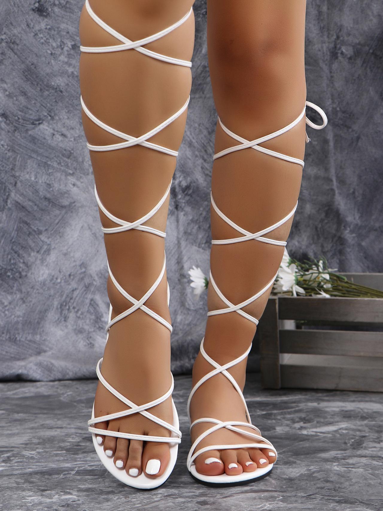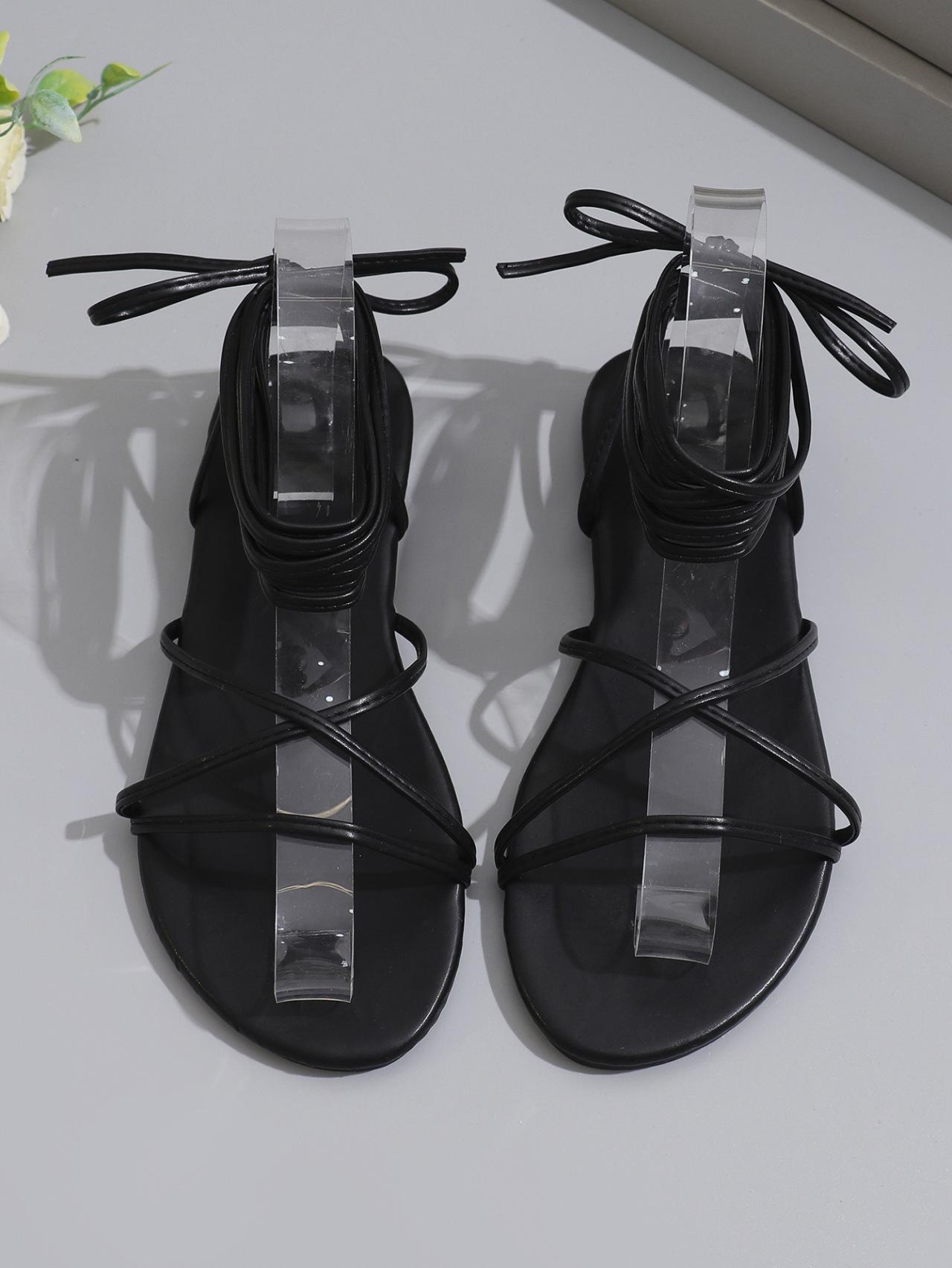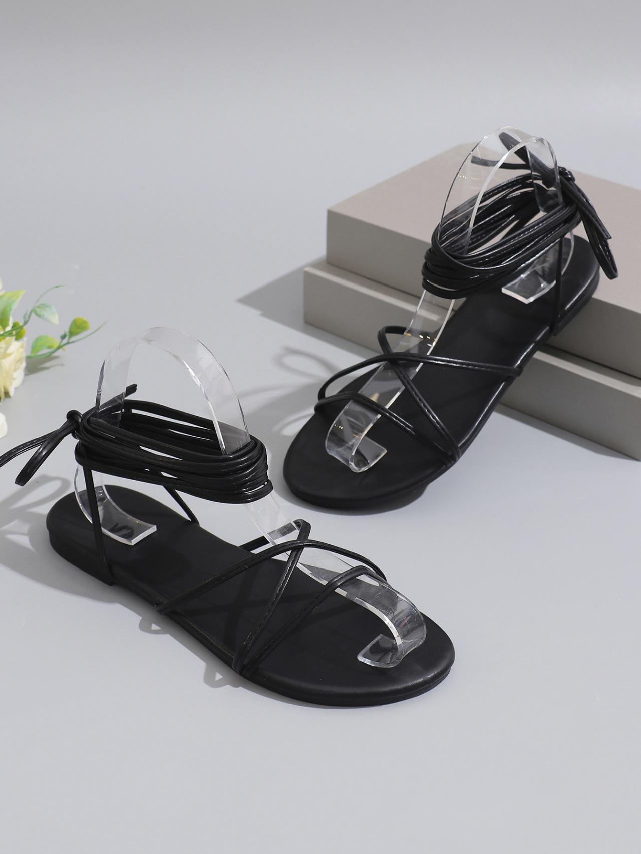 Sandalias planas de tobillera de talla grande para exportación europea y americana para mujer, para uso transfronterizo, color puro, punta abierta, sandalias de playa Ebay