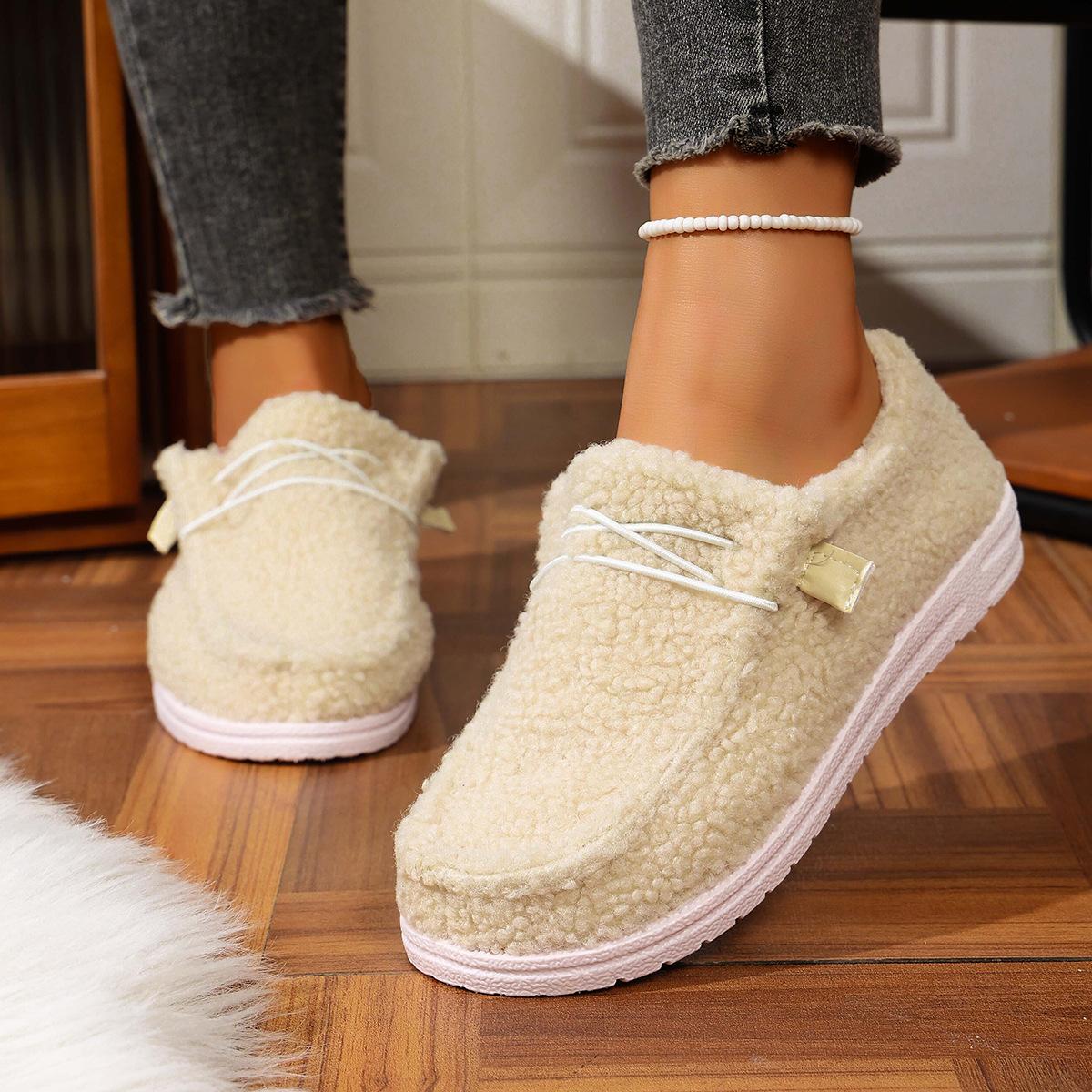 Comercio Exterior 2025 Nuevos Zapatos Casuales Planos de Talla Grande para Mujer Moda Punta Redonda Ante Mocasines Zapatos de Felpa Corta