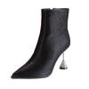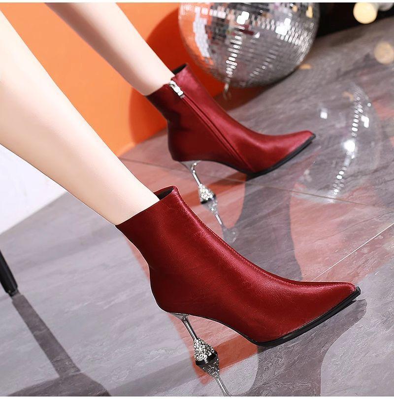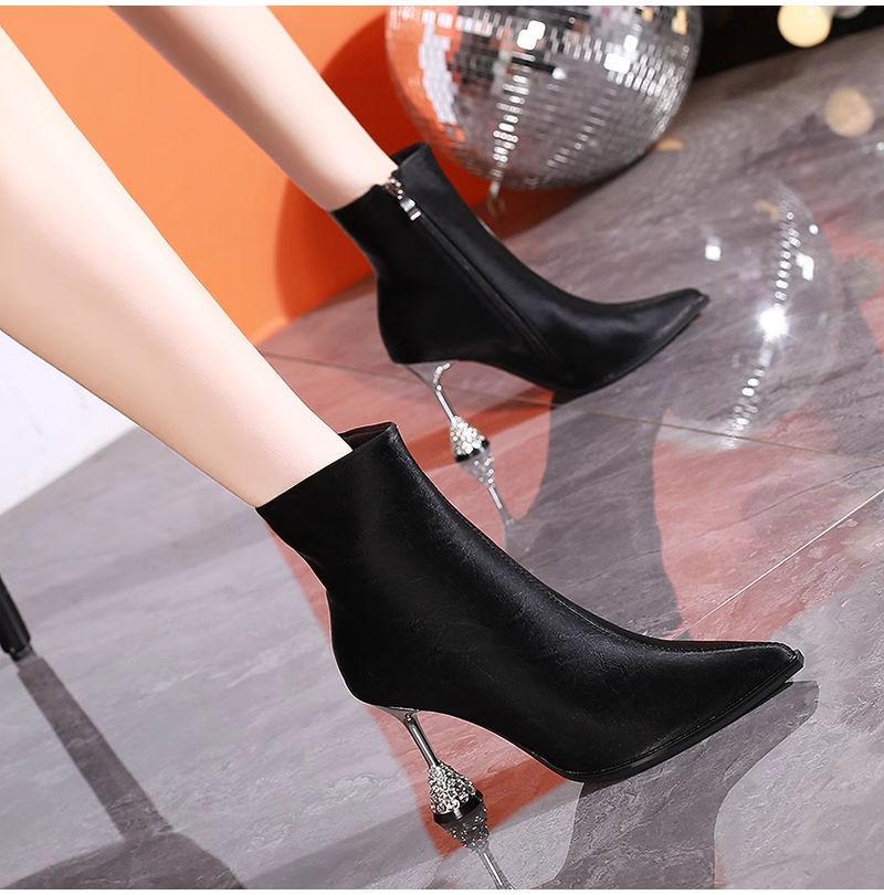 Botines de Tacón Alto con Punta Afilada Mujer 2025 Otoño/Invierno Nuevo Tacón de Aguja Metálico Cierre Lateral Temperamento Versátil Talla Pequeña Botas de Moda