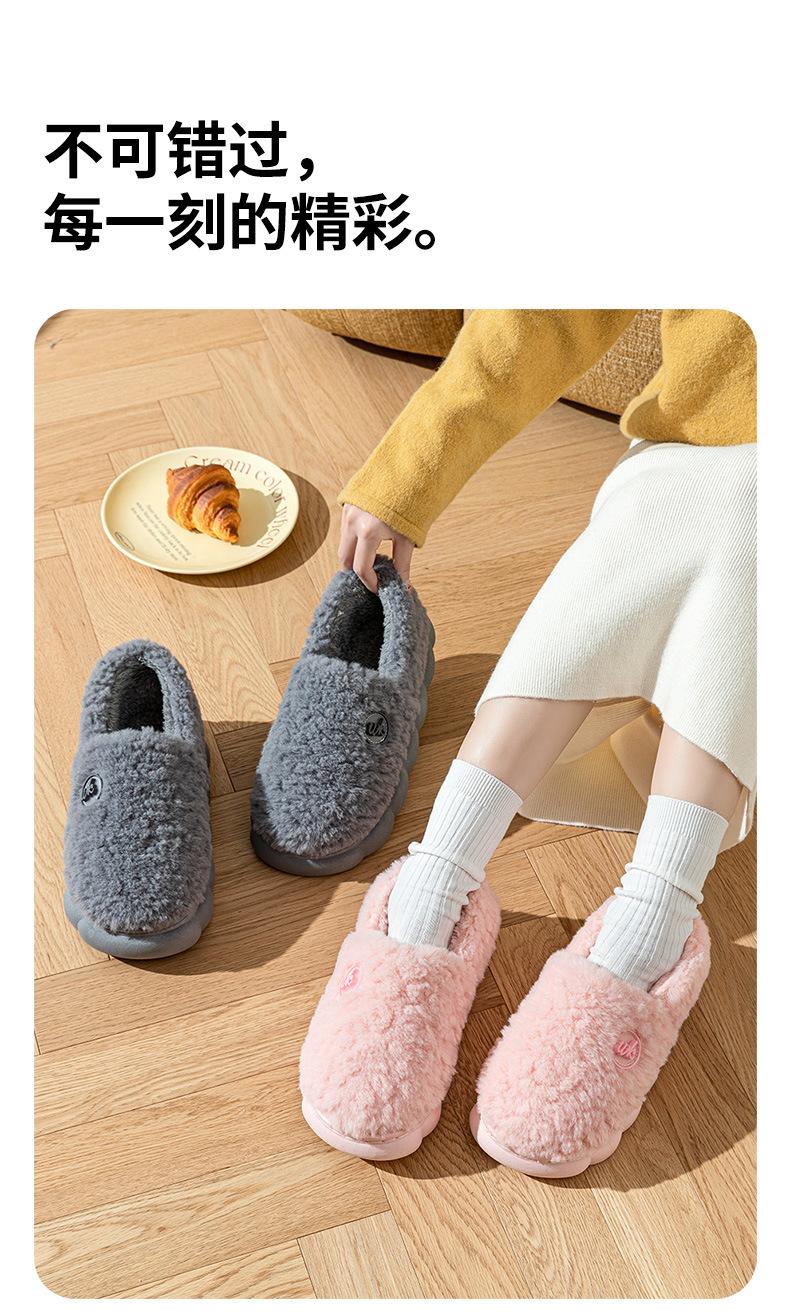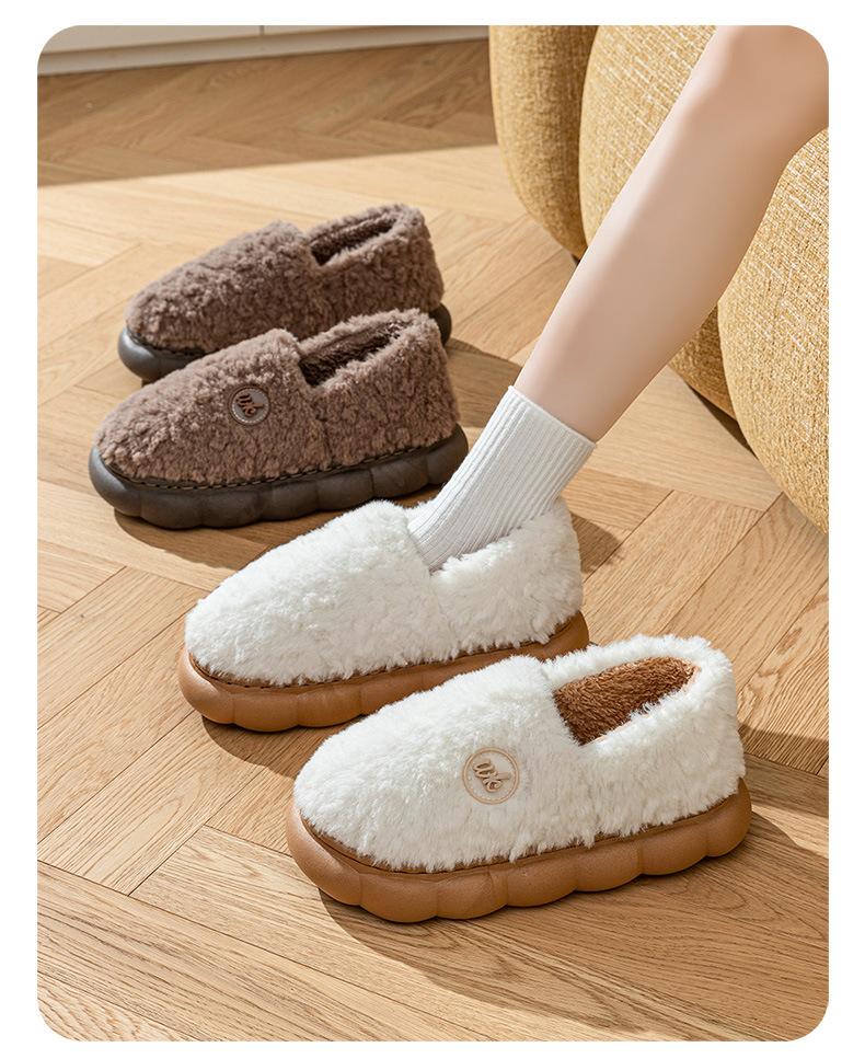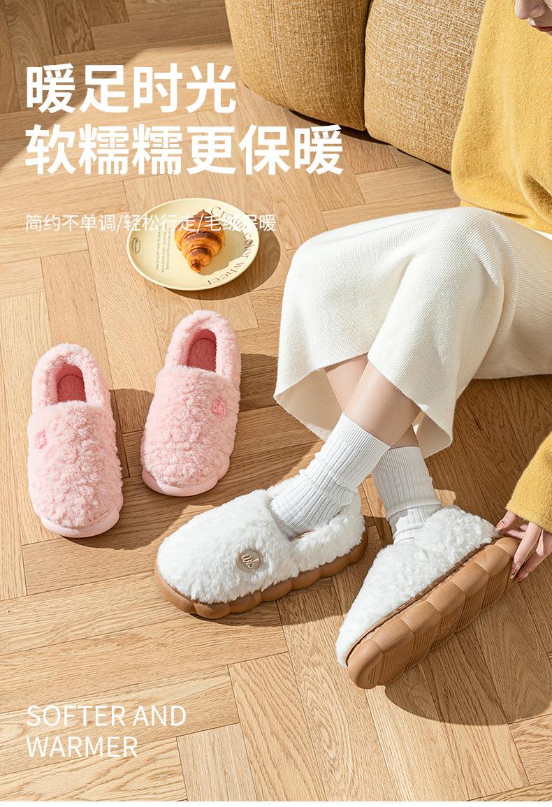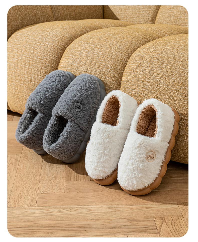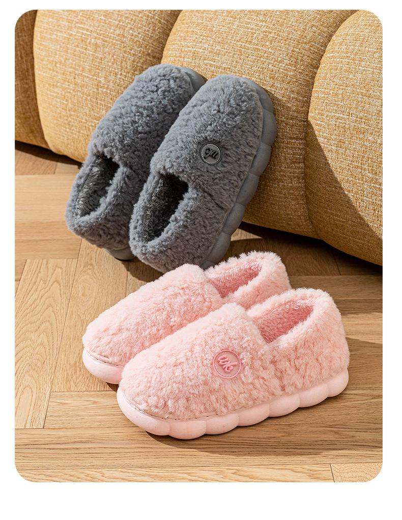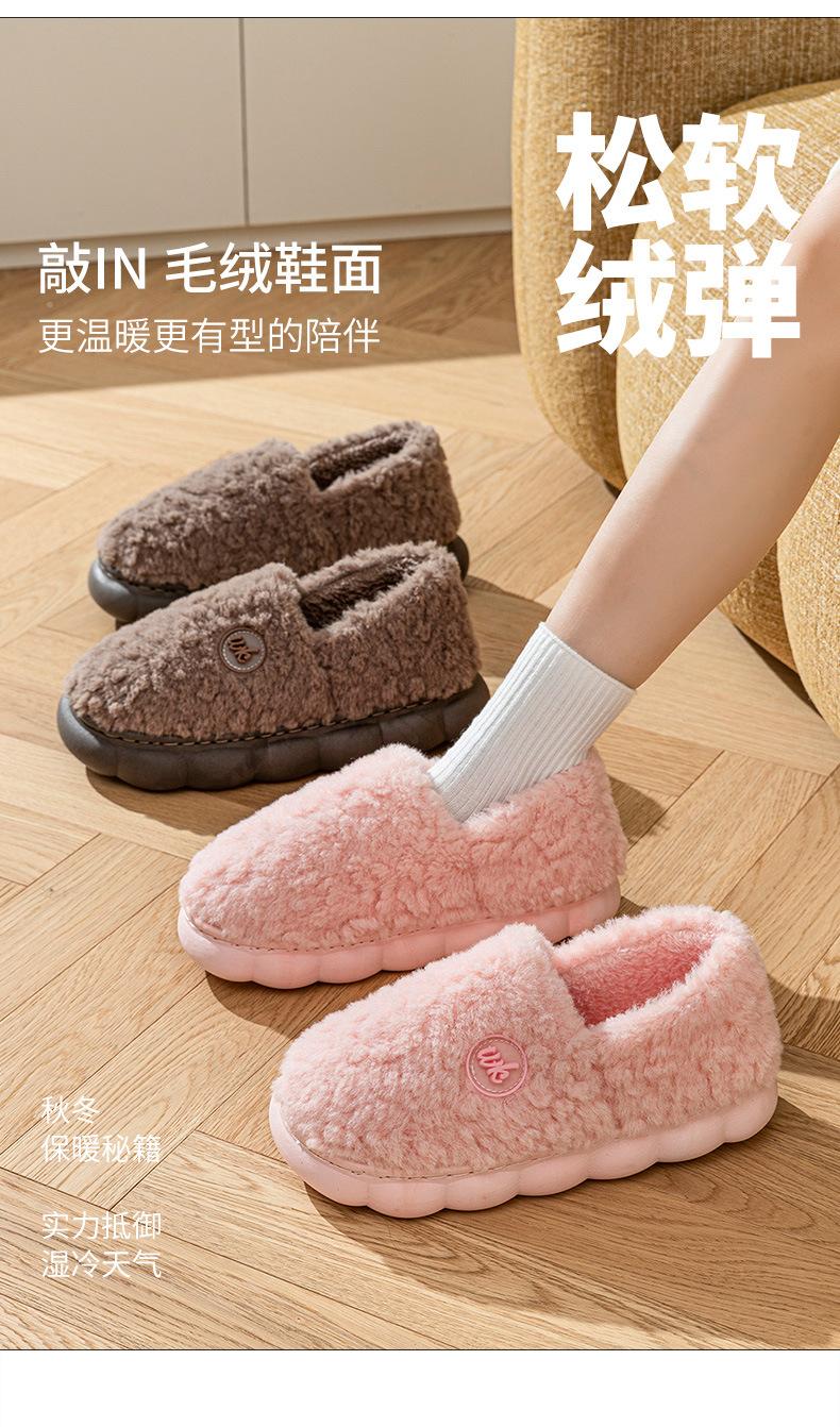 Pantuflas de Algodón para Mujer Otoño e Invierno 2025 Nuevo Estilo Talón Cerrado Interior Hogar Antideslizante Felpa Cálido Zapatos de Algodón para Pareja Desgastables