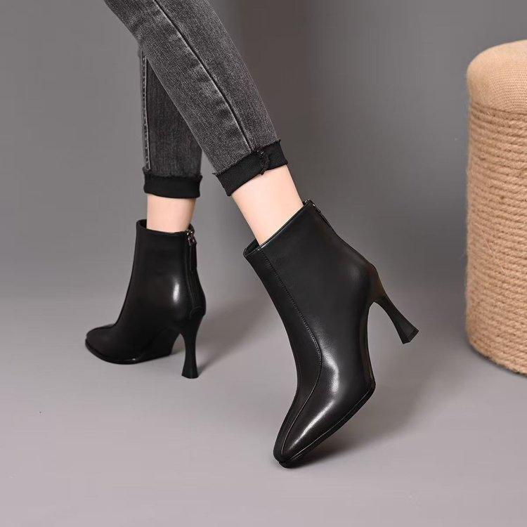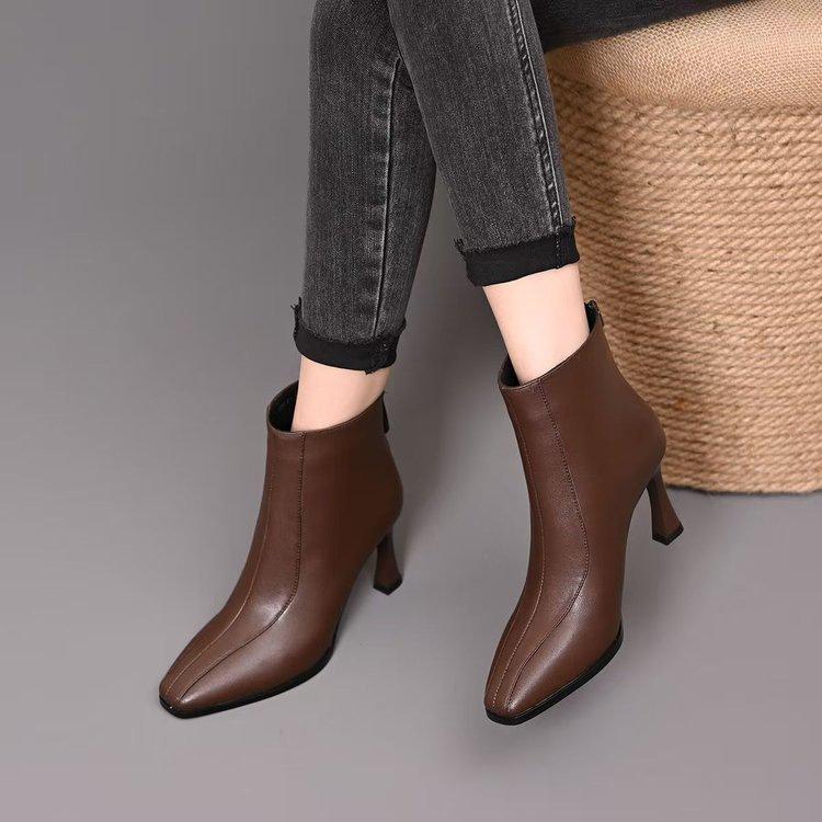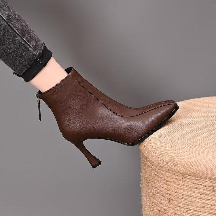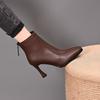 Tacones Altos de Punta para Mujer Moda Tacón de Aguja Zapatos de Mamá 2025 Nuevo Temperamento Otoño Invierno Más Terciopelo Botines Marrones