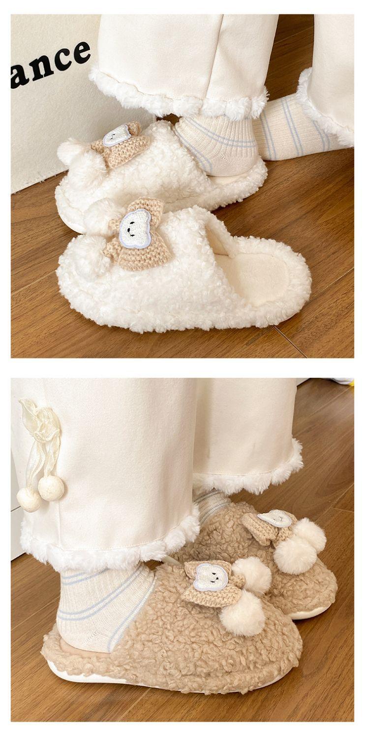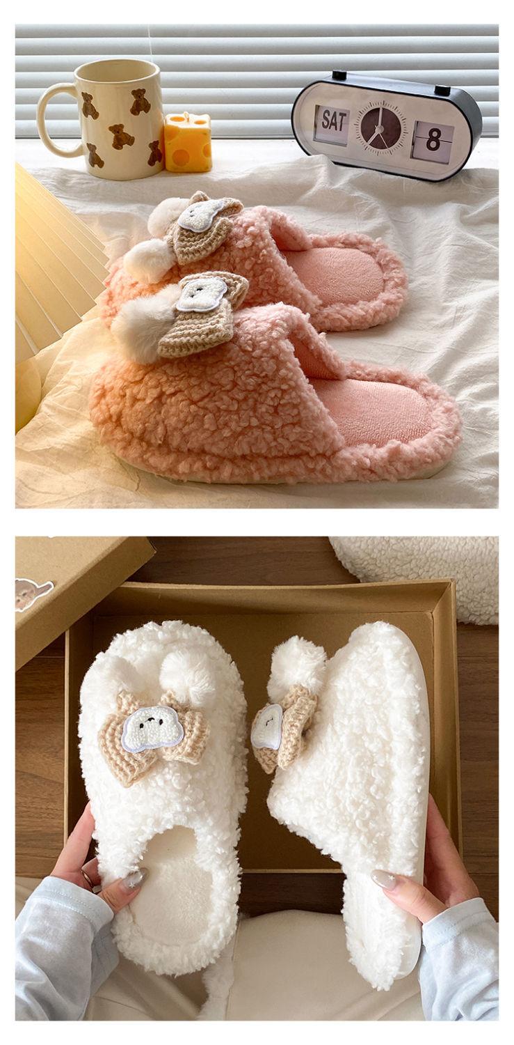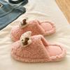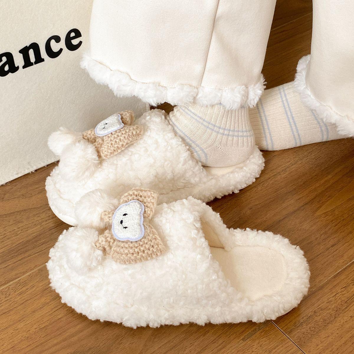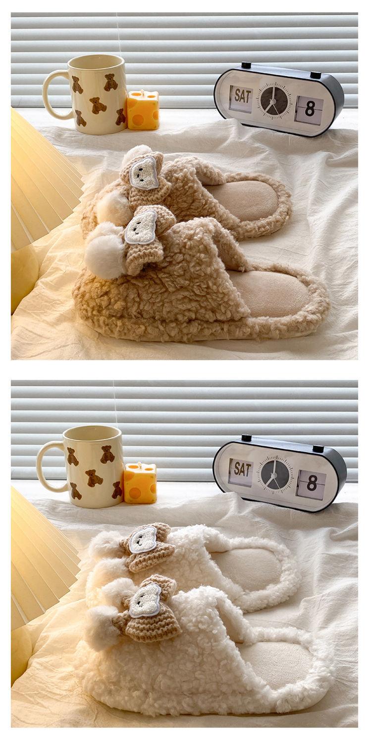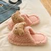 2025 Otoño/Invierno Nuevas Chanclas Suaves y Lindas de Dibujos Animados de Osito para Mujer Ligeras para Casa Esponjosas Planas Peludas de Algodón