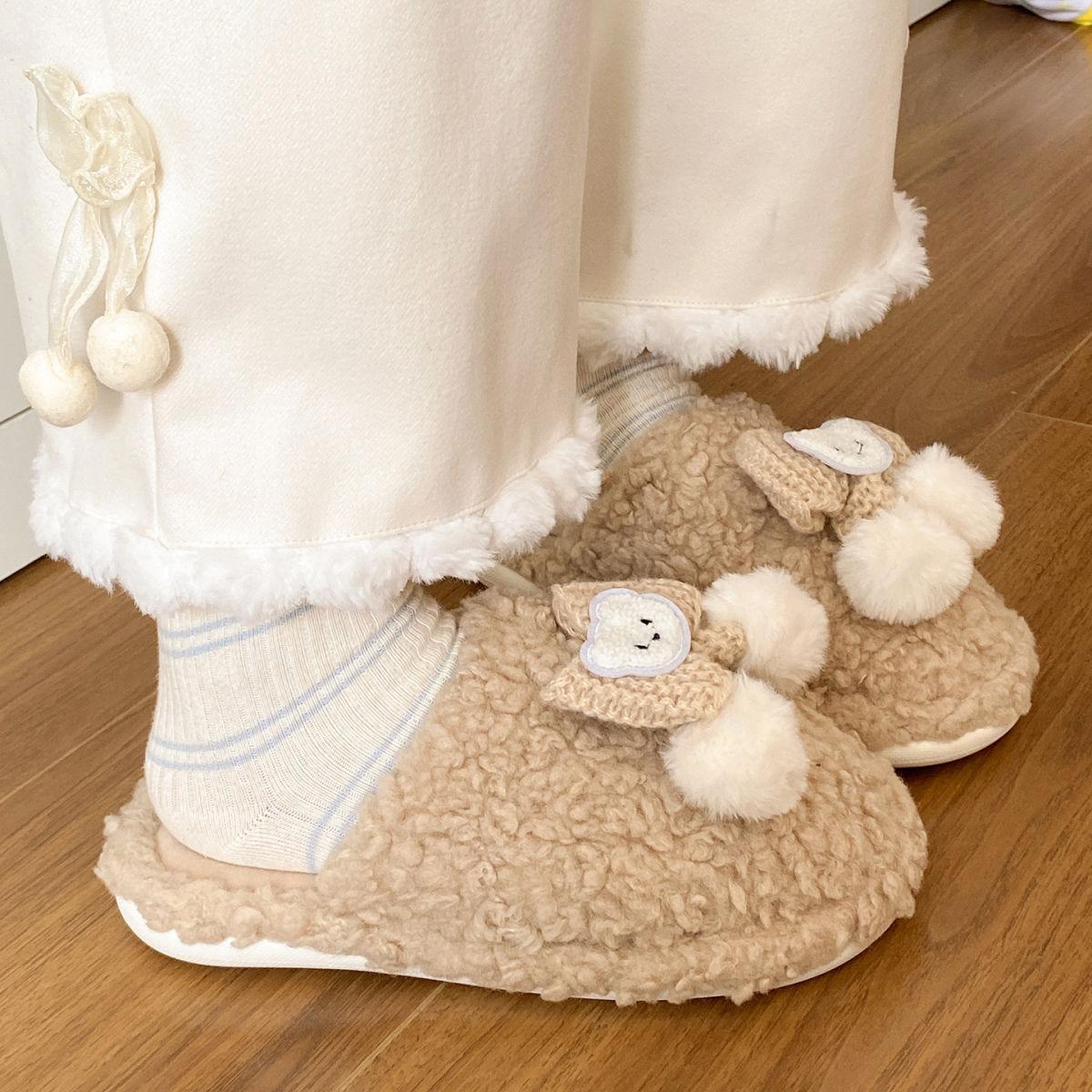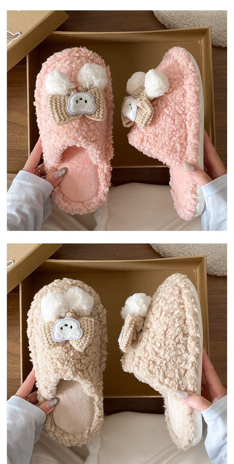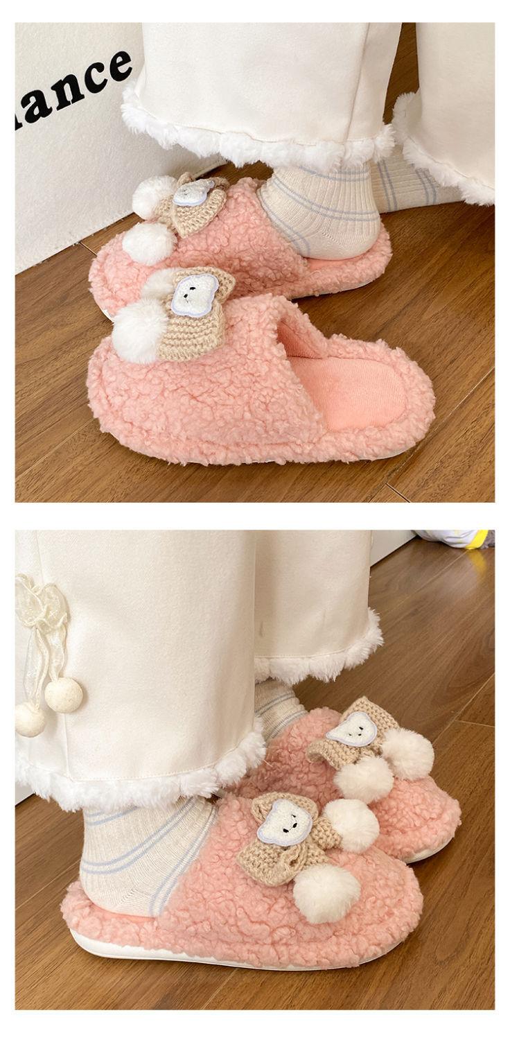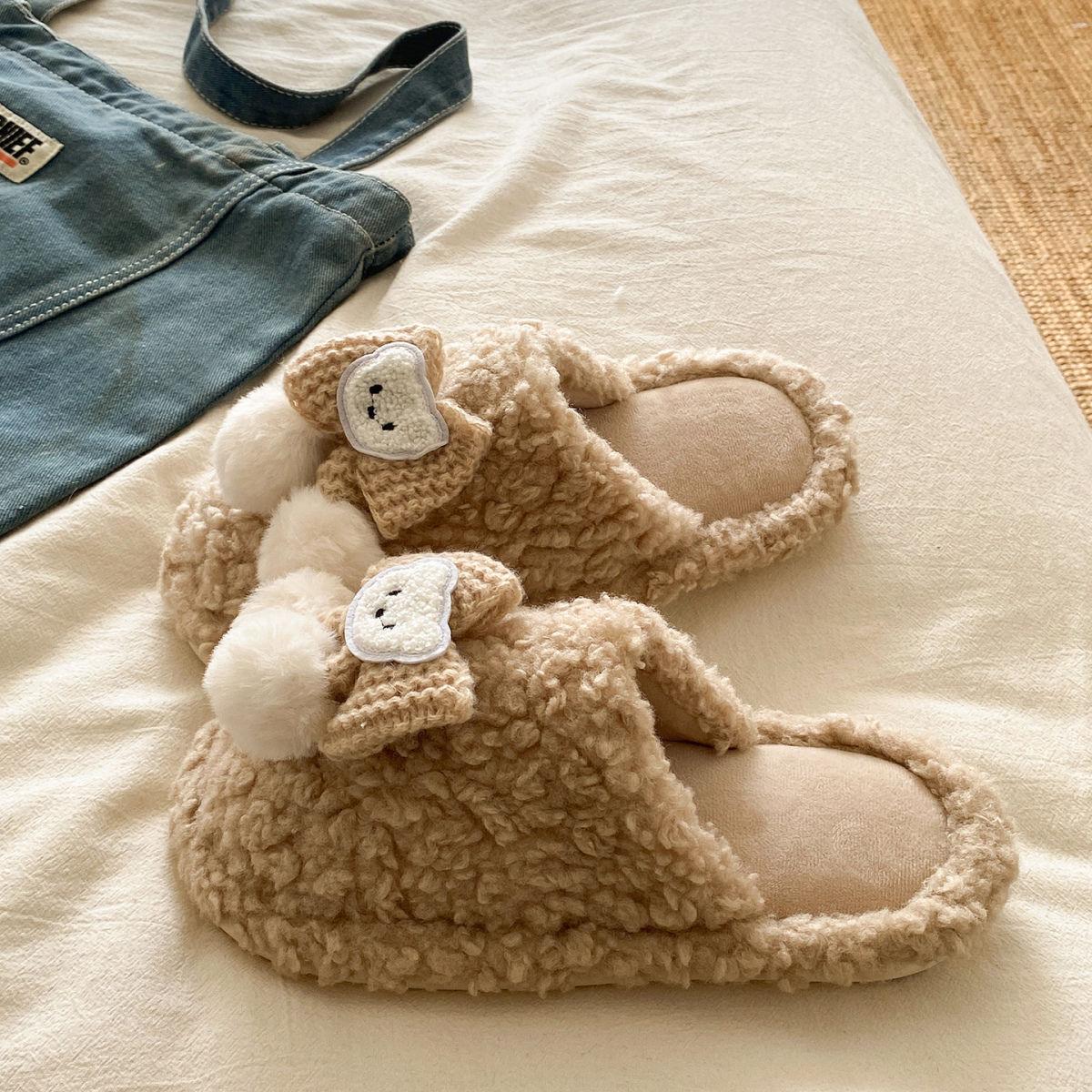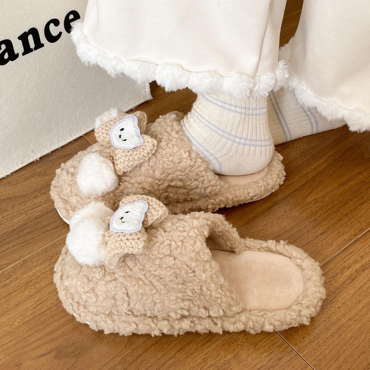 2025 Otoño/Invierno Nuevas Chanclas Suaves y Lindas de Dibujos Animados de Osito para Mujer Ligeras para Casa Esponjosas Planas Peludas de Algodón