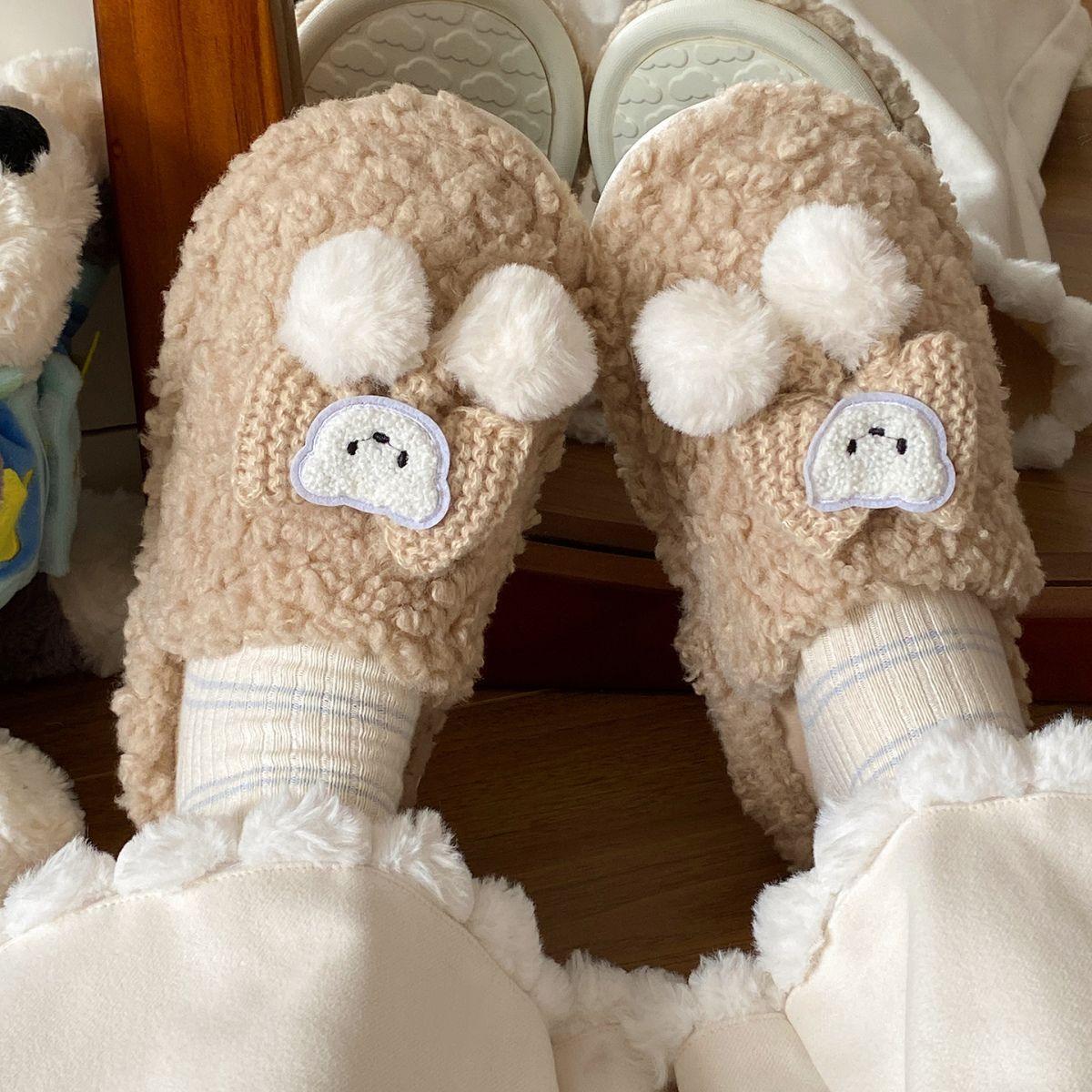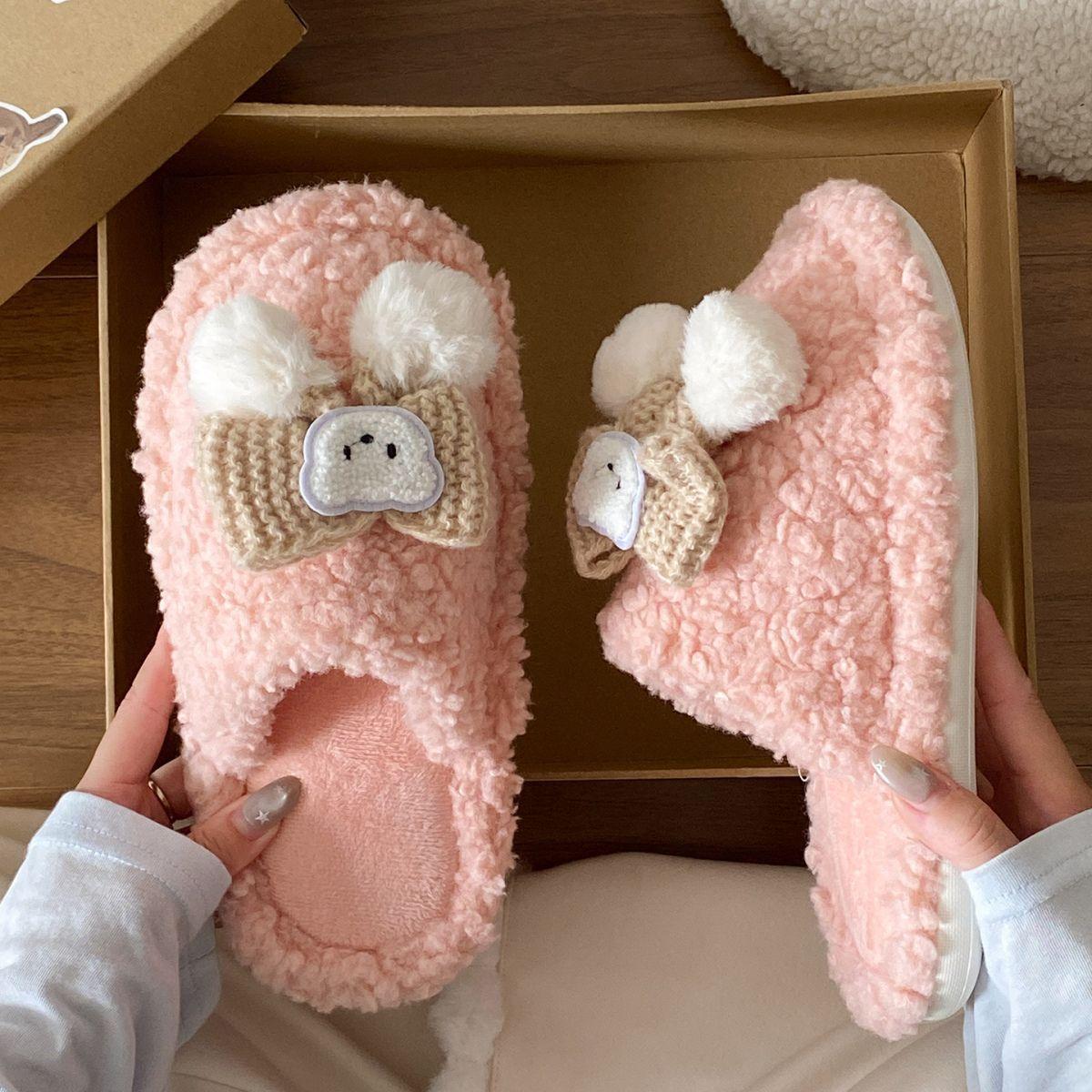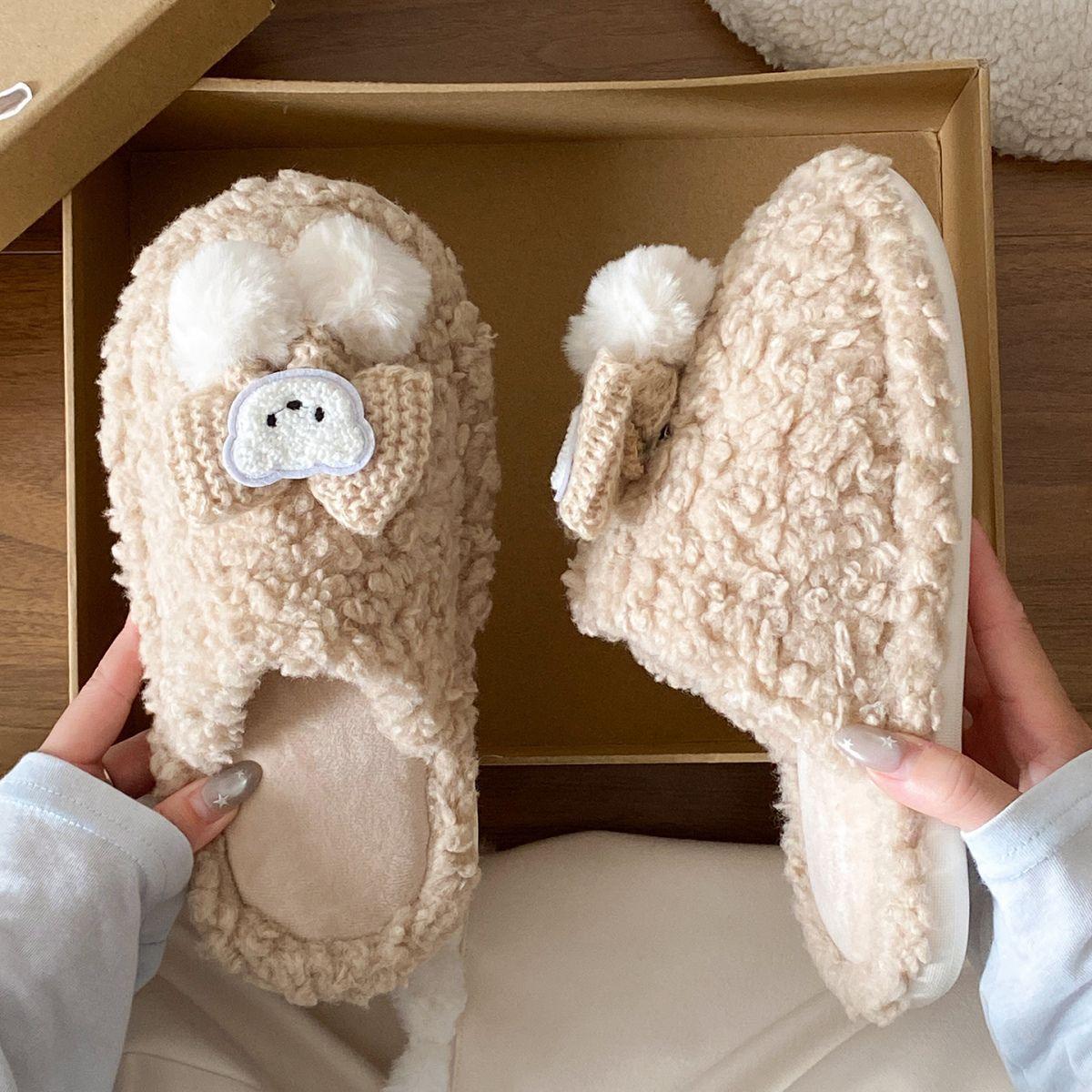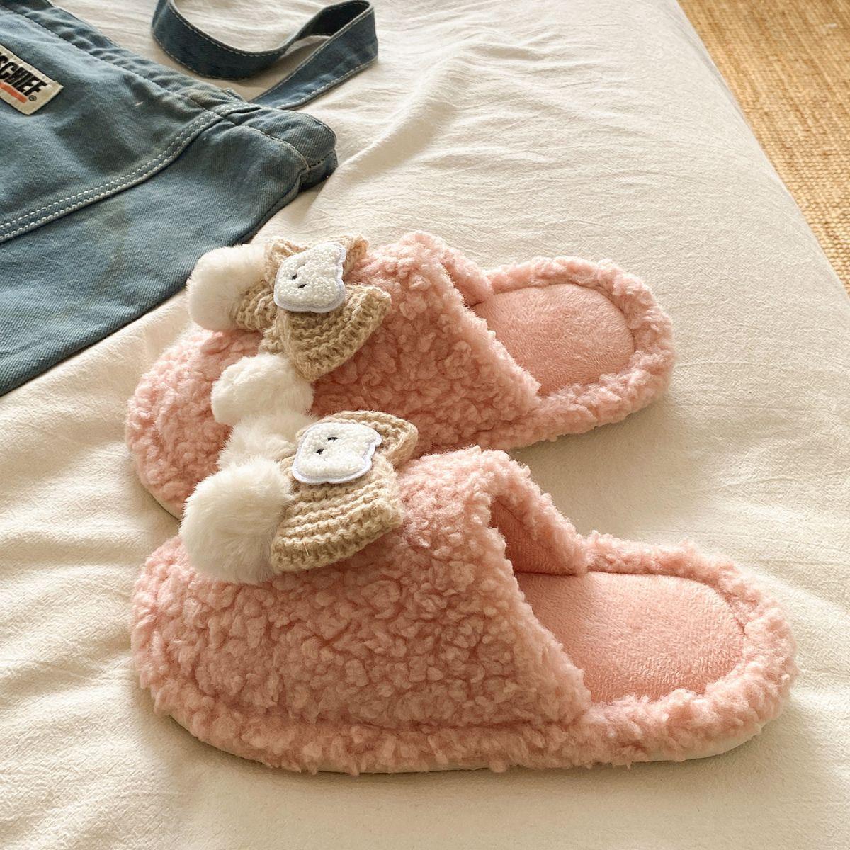 2025 Otoño/Invierno Nuevas Chanclas Suaves y Lindas de Dibujos Animados de Osito para Mujer Ligeras para Casa Esponjosas Planas Peludas de Algodón