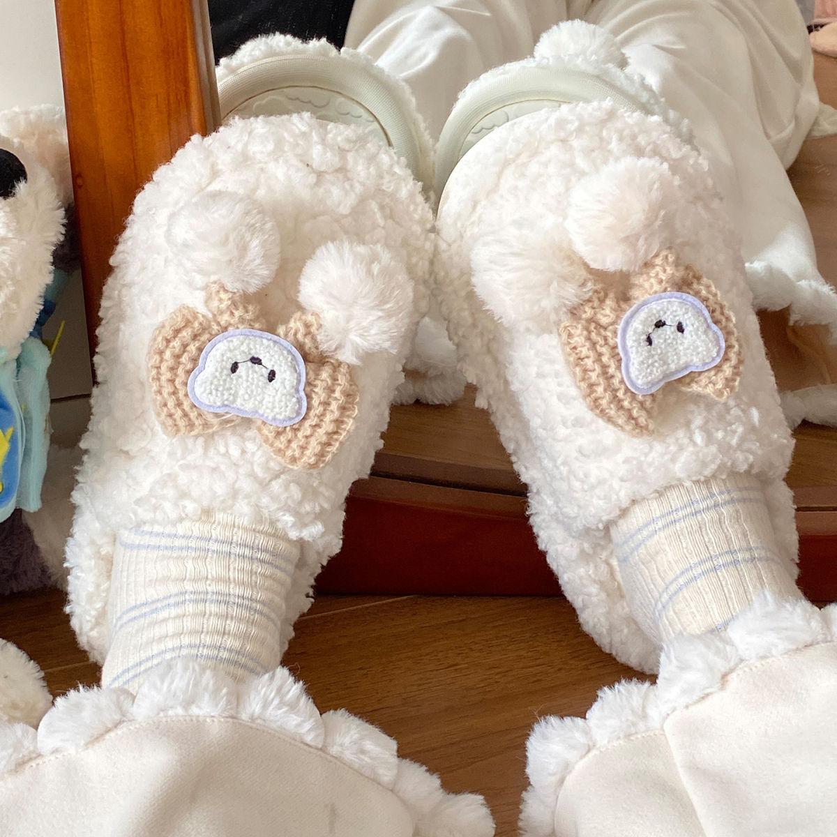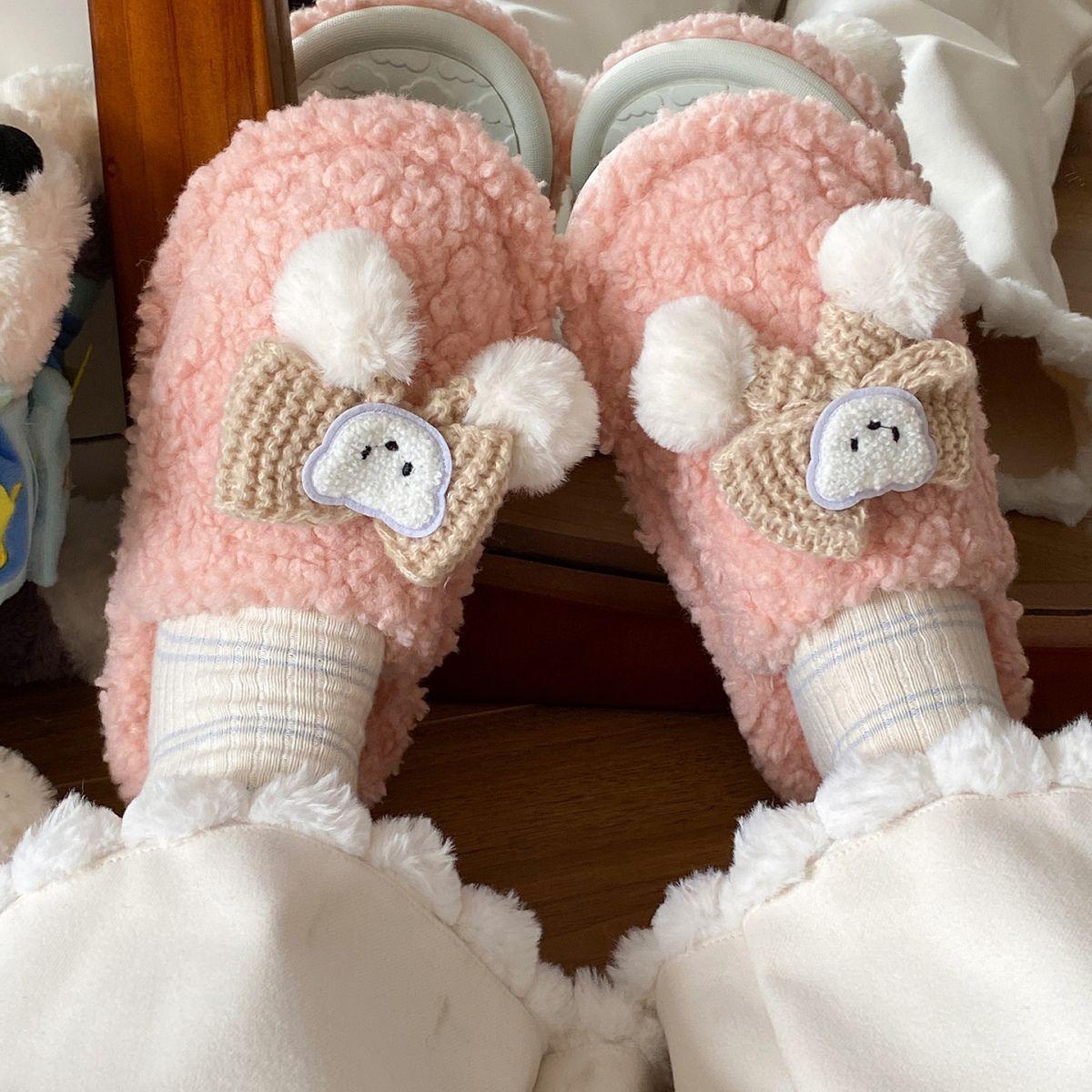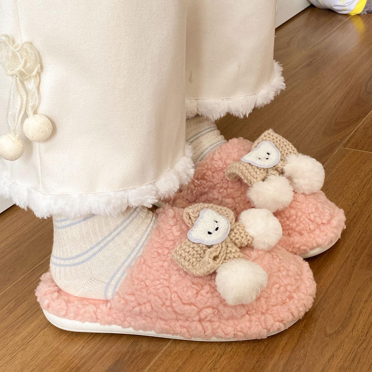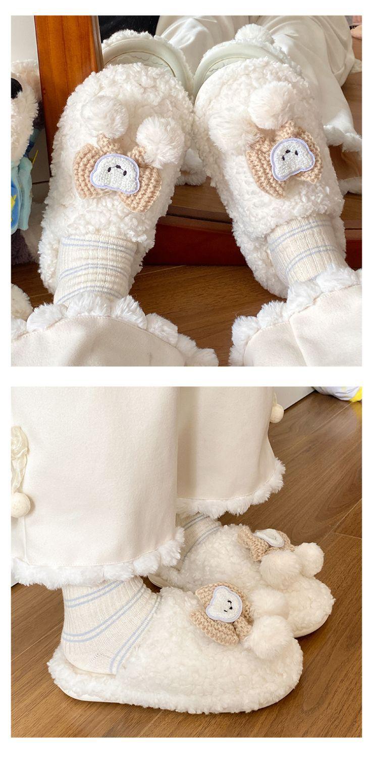 2025 Otoño/Invierno Nuevas Chanclas Suaves y Lindas de Dibujos Animados de Osito para Mujer Ligeras para Casa Esponjosas Planas Peludas de Algodón