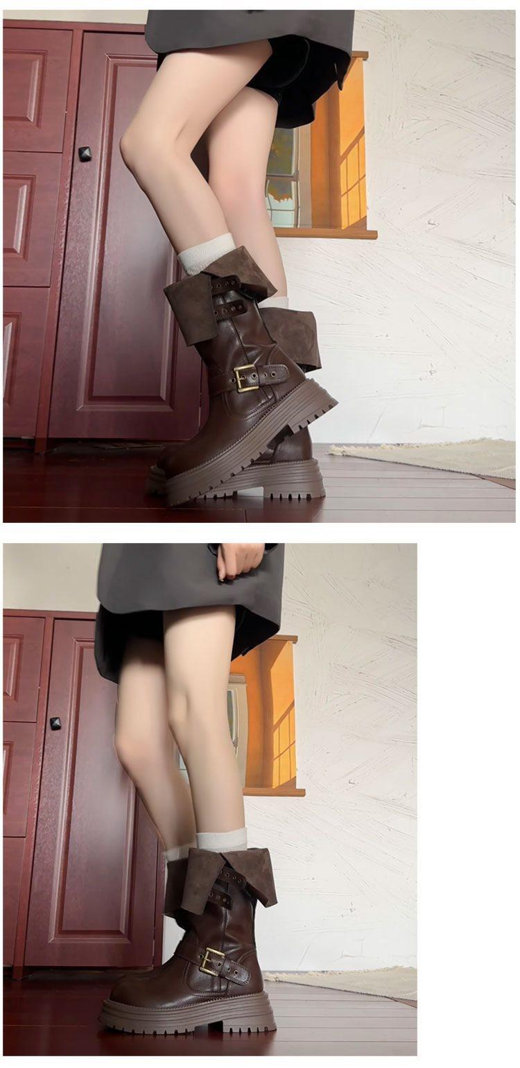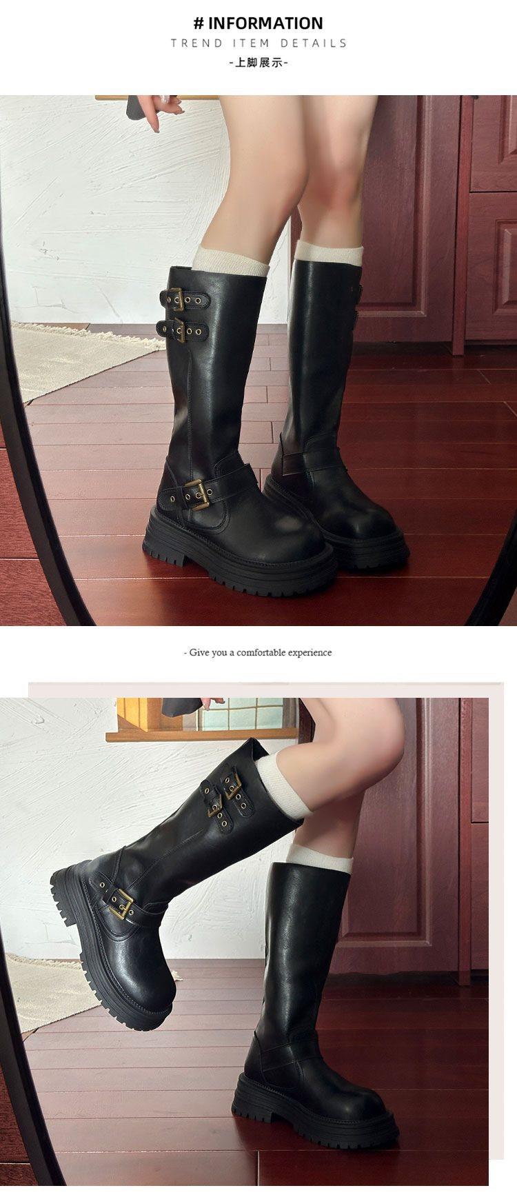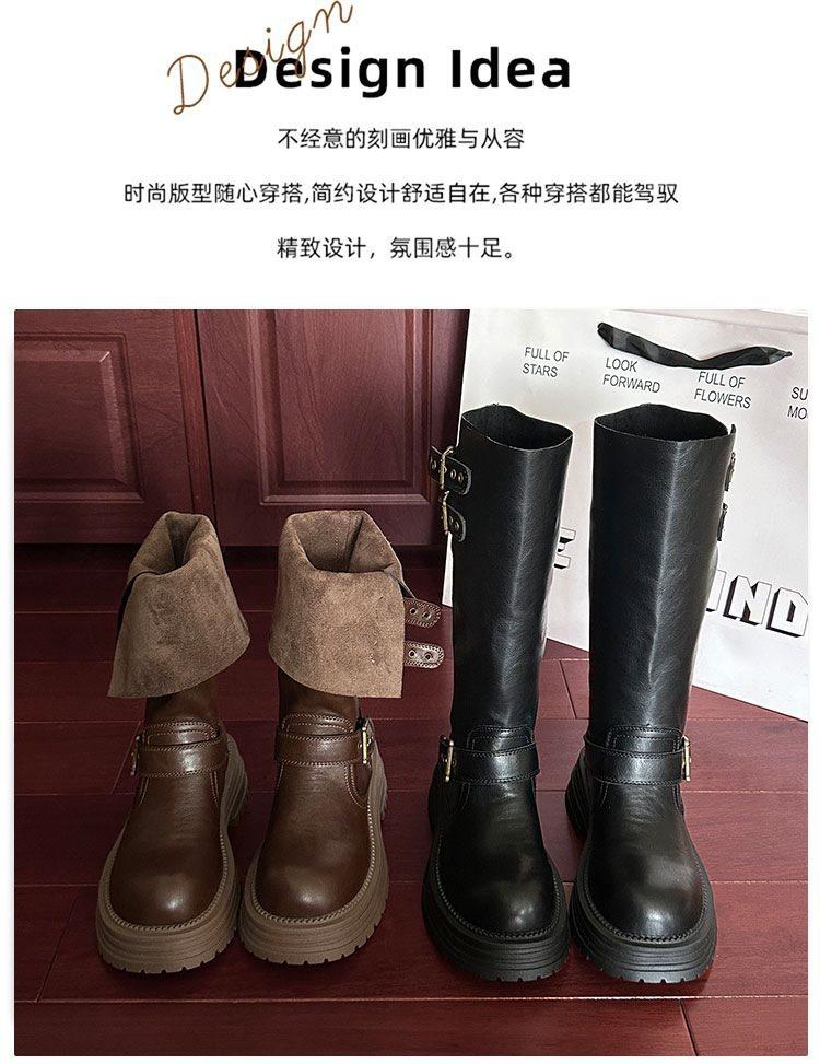 Botas altas hasta la rodilla de estilo británico con suela gruesa para aumentar la altura para mujer 2025 nuevo otoño e invierno retro bidireccionales cortas para mujer por encima de la rodilla caballero botas largas