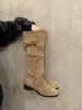 Botas largas holgadas de gamuza albaricoque de tacón grueso francés para mujer, zapatos 2025 nuevo primavera otoño invierno versátiles adelgazantes hasta la rodilla