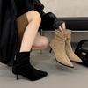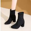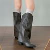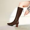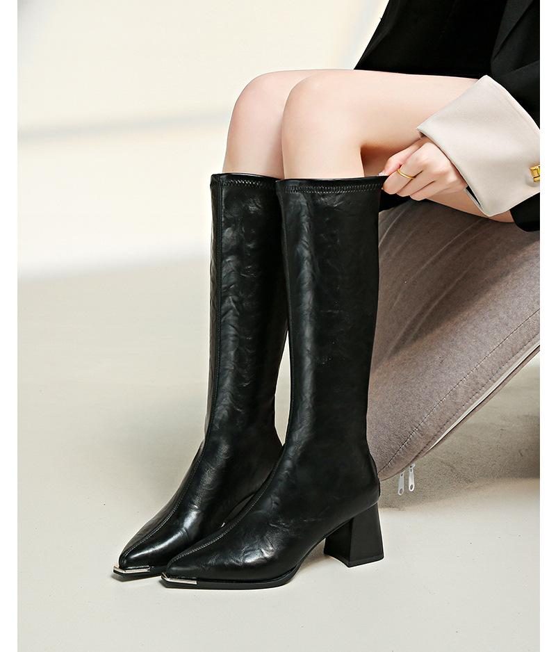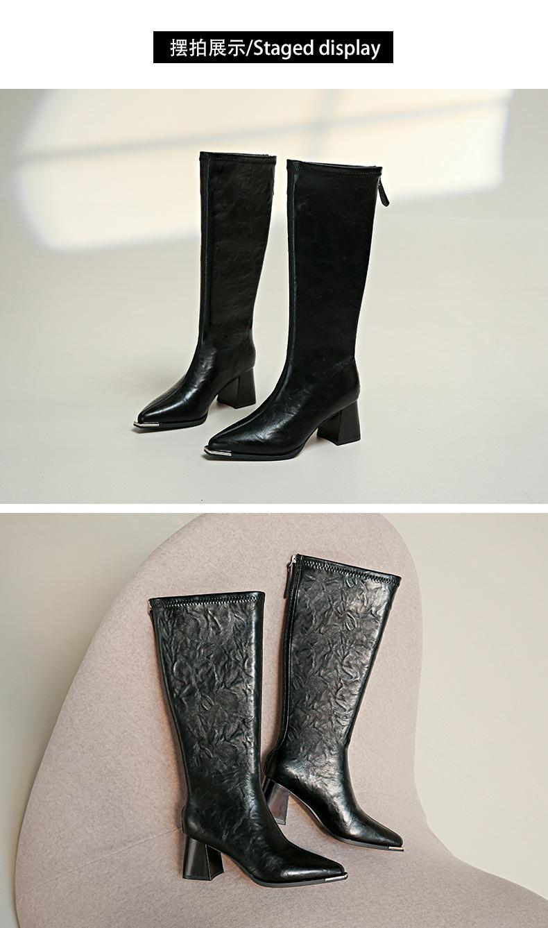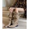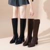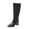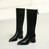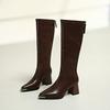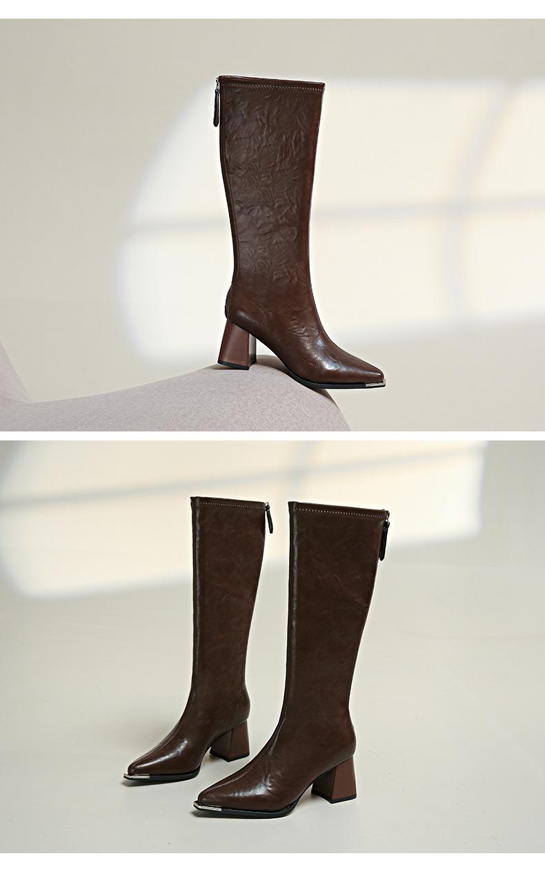 Otoño 2025 Nuevo Estilo Británico Punta Afilada Patrón Repujado Botas Altas Mujer Cierre Trasero Tacón Grueso Moda Botas Largas de Cuero