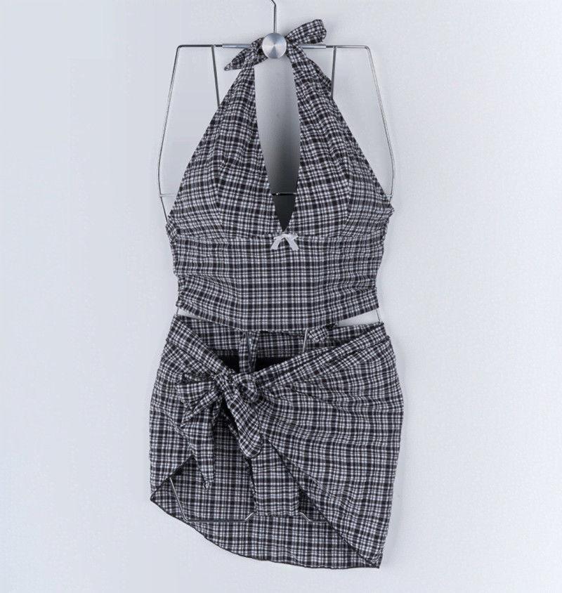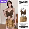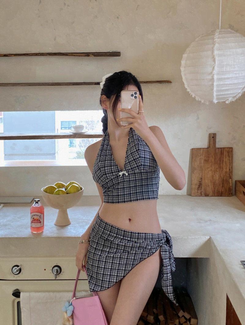 Nuevo Traje de Baño Dividido para Mujer Sexy Bikini de Chica Caliente Set de Tres Piezas Cuello Halter Adelgazante Estilo Falda Ropa de Playa Casual