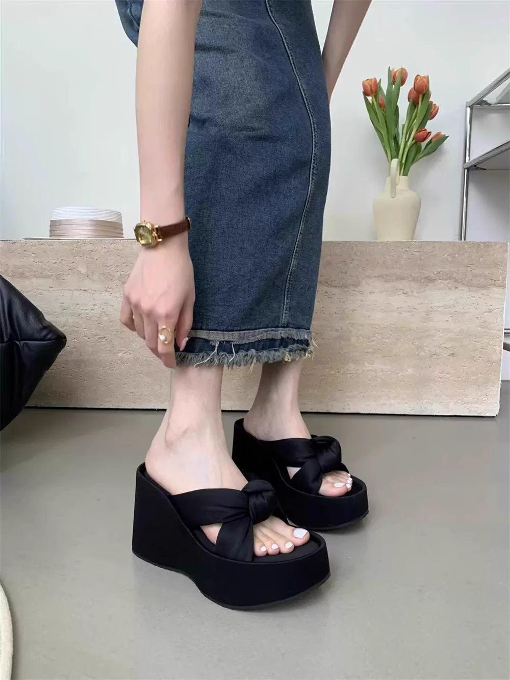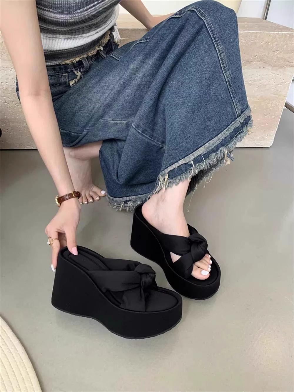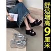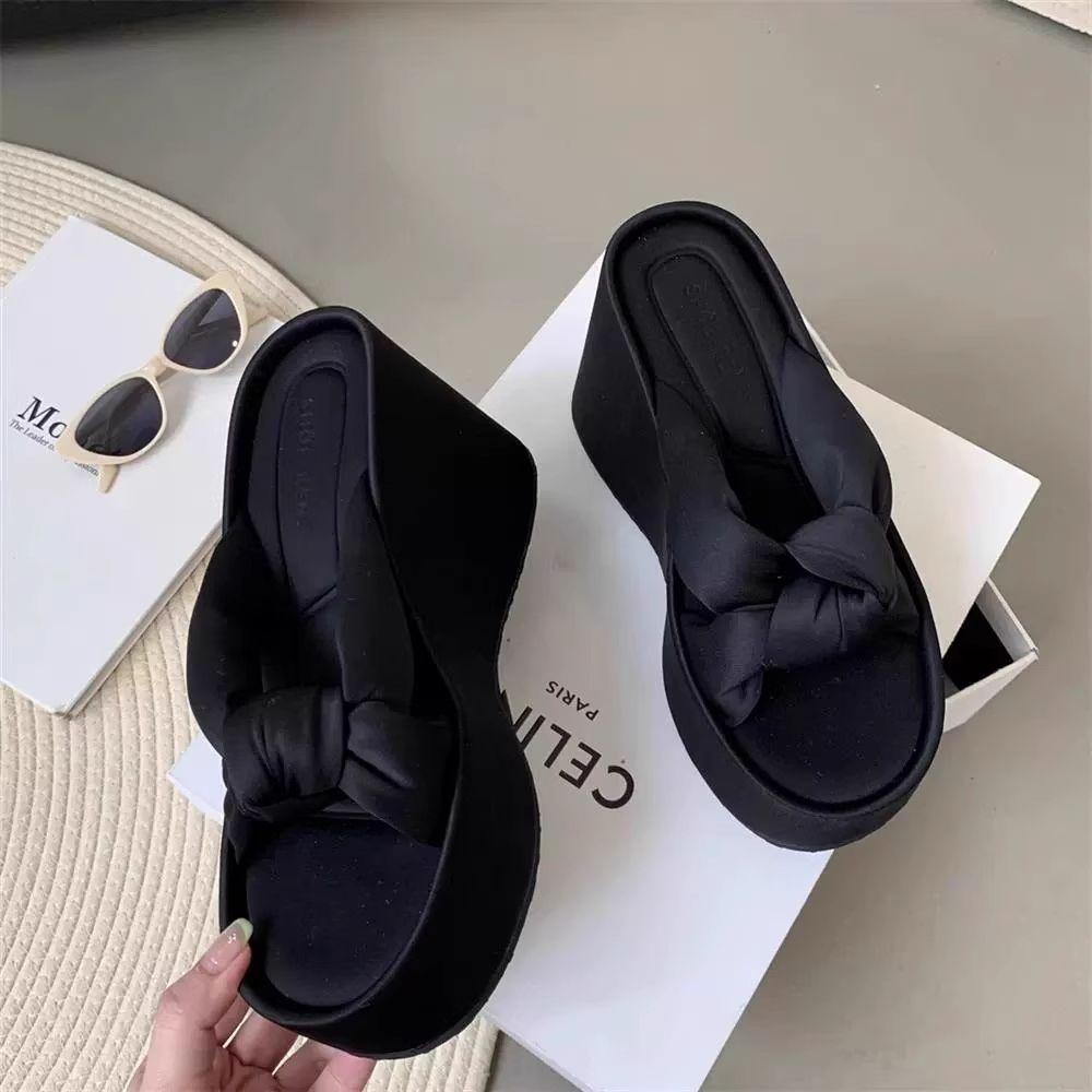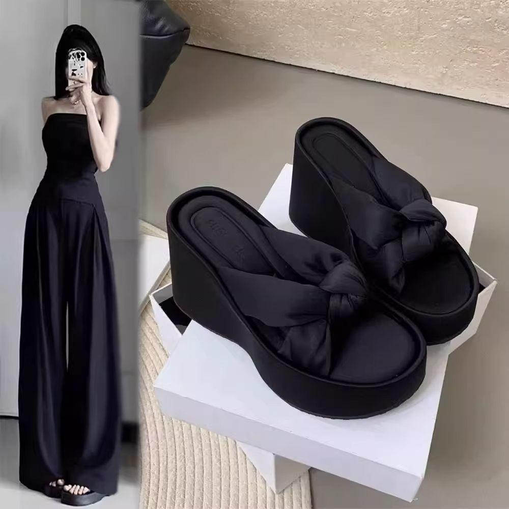 Pantuflas Mujer Verano Suela Gruesa Moda Red Nuevas Sandalias Exquisitas 2025 Tacón de Cuña Tacón Alto Combinar Vestido Negro Rojo Aumento de Altura