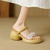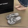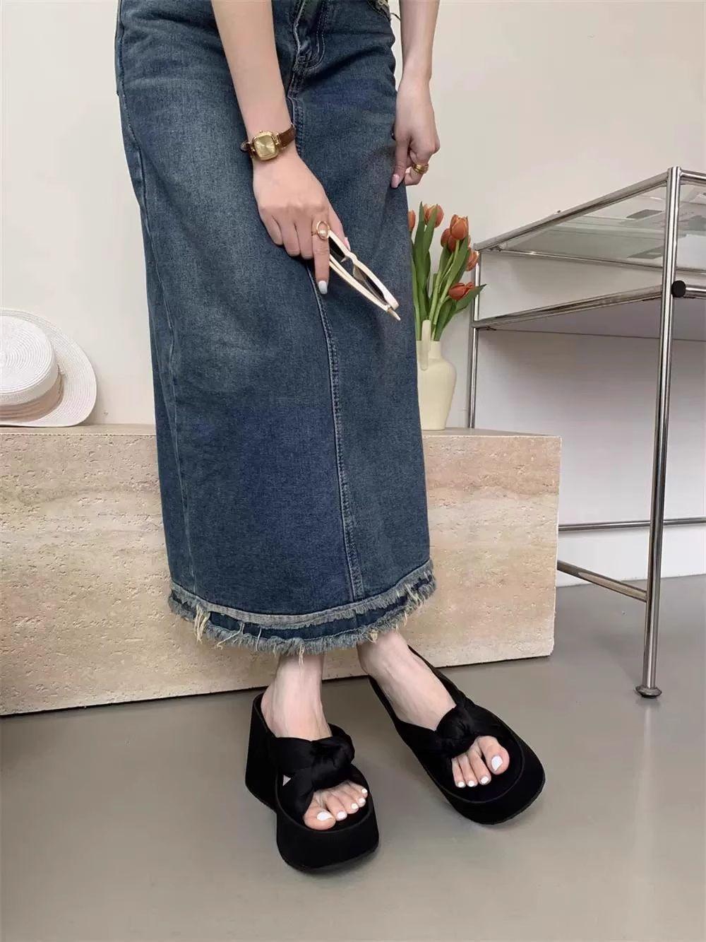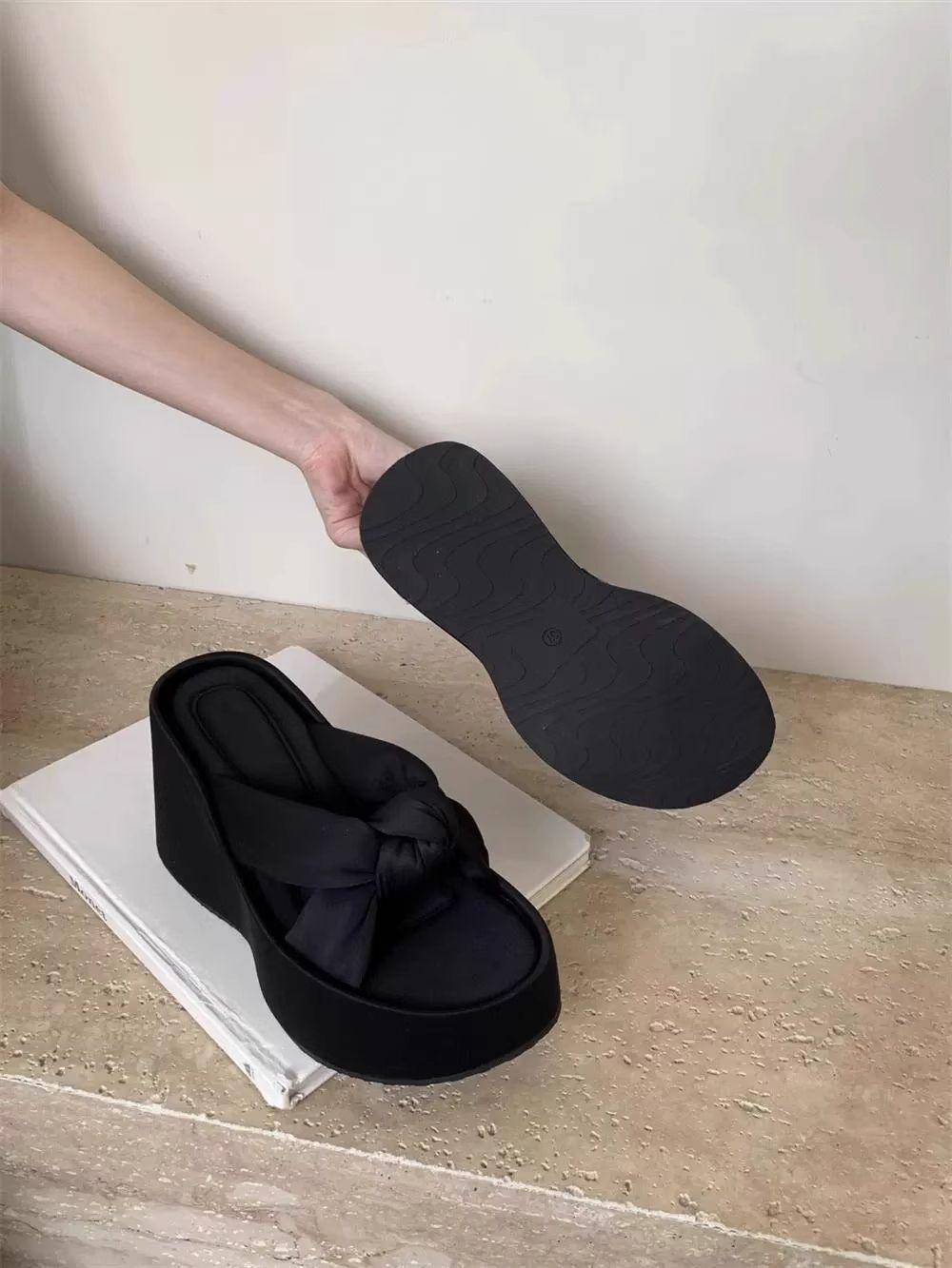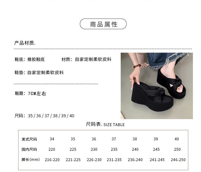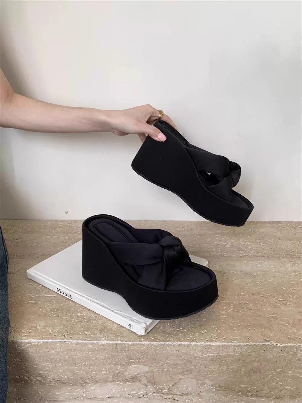 Pantuflas Mujer Verano Suela Gruesa Moda Red Nuevas Sandalias Exquisitas 2025 Tacón de Cuña Tacón Alto Combinar Vestido Negro Rojo Aumento de Altura