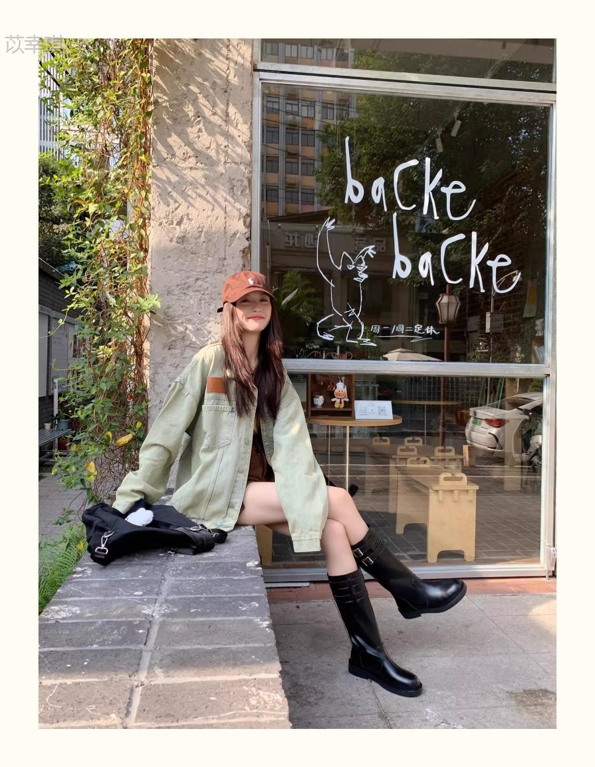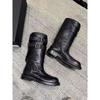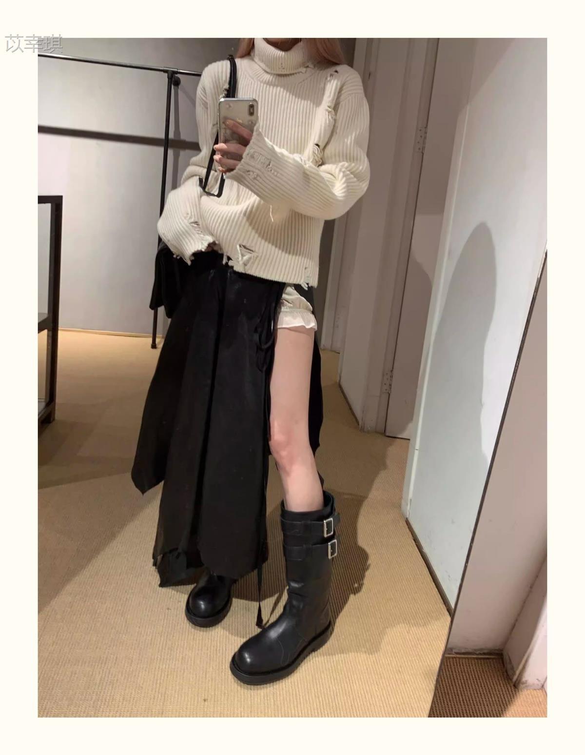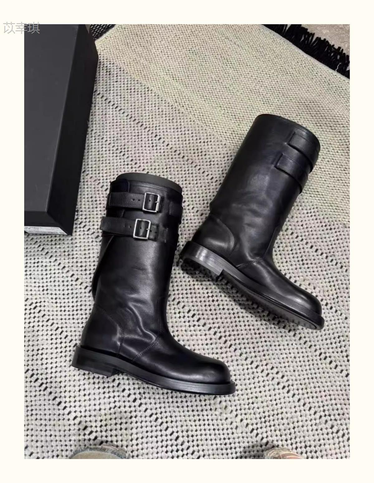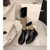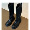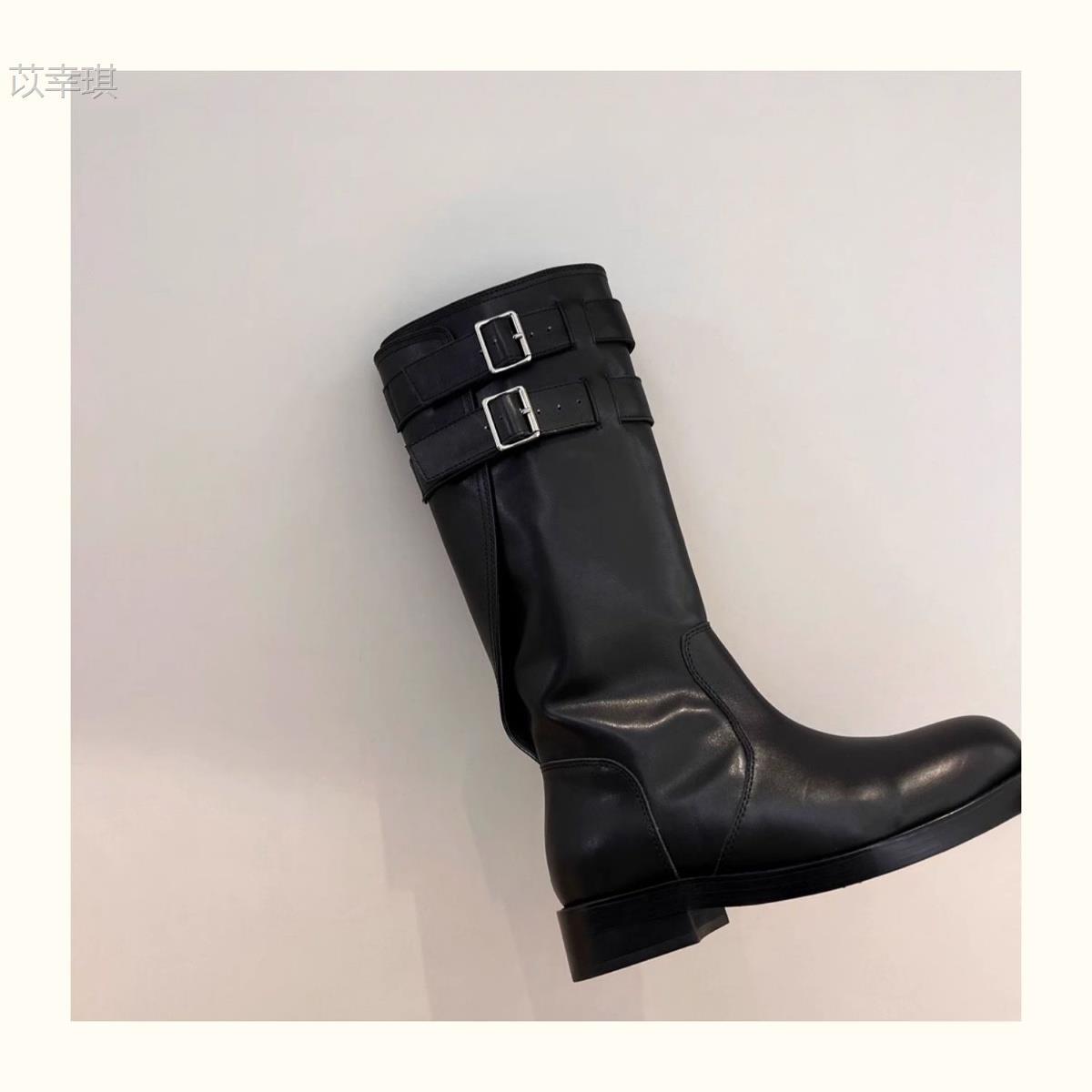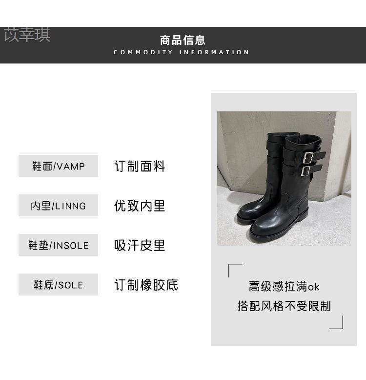 Versión de piel de vaca~Botas de motociclista retro de cuero genuino botas de caballero para mujer tacón grueso sobre la rodilla botas largas hasta media pantorrilla adelgazantes botas Martin
