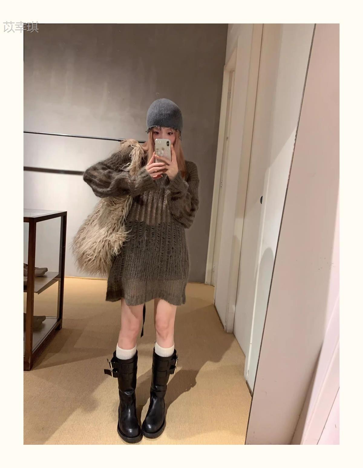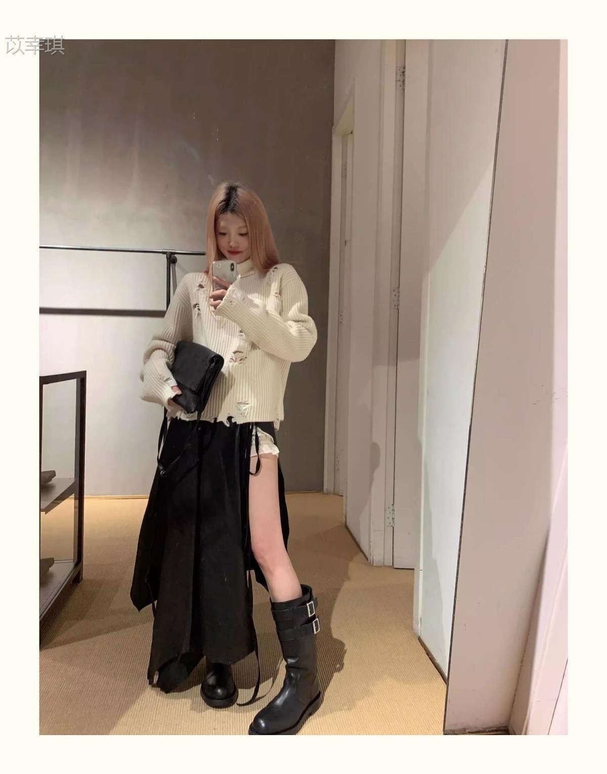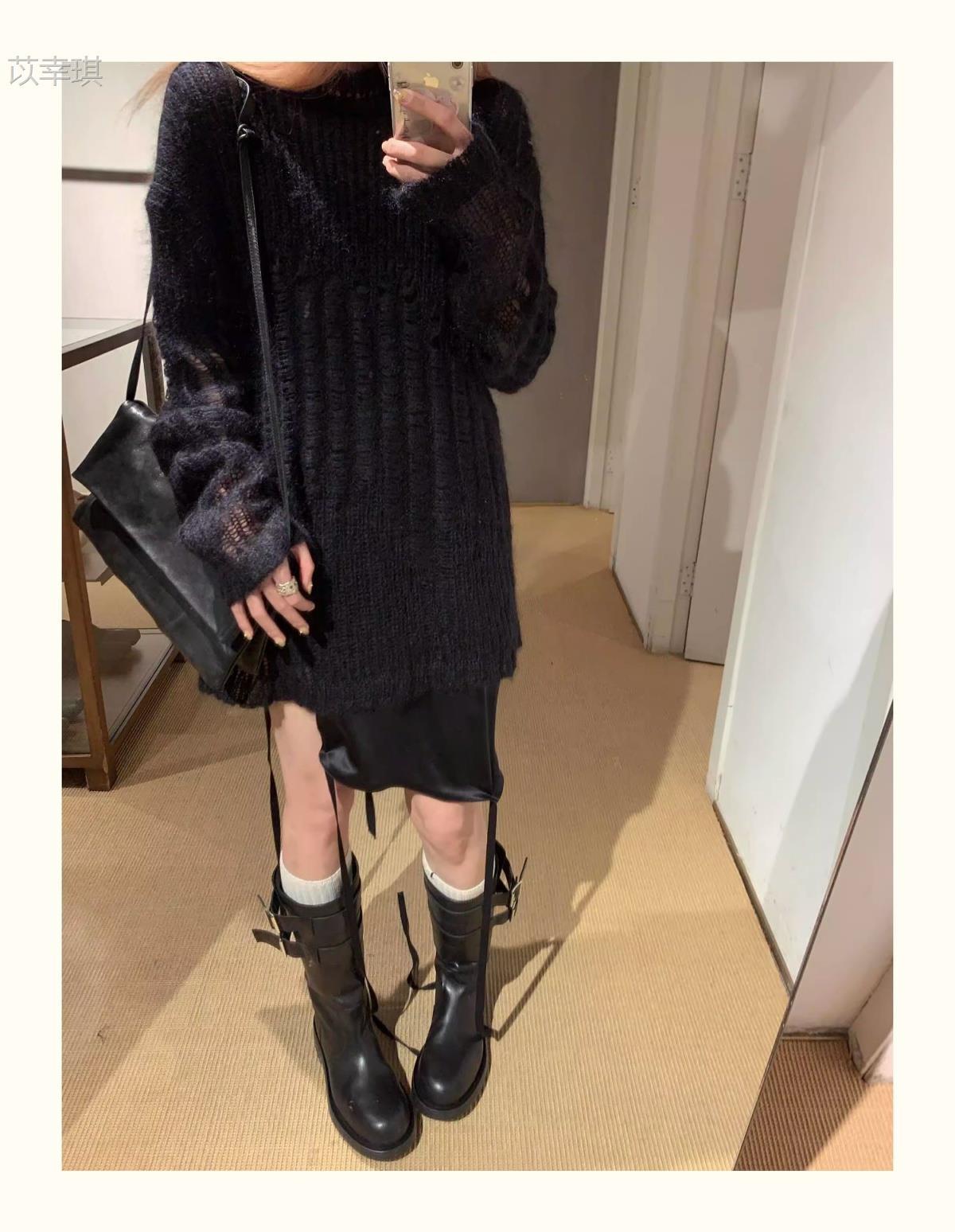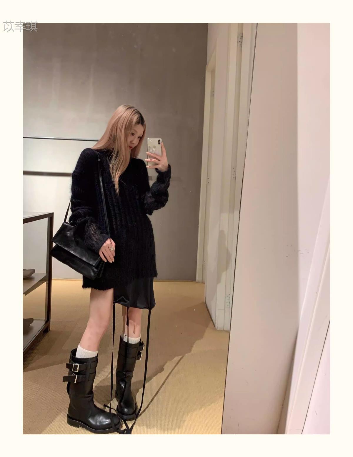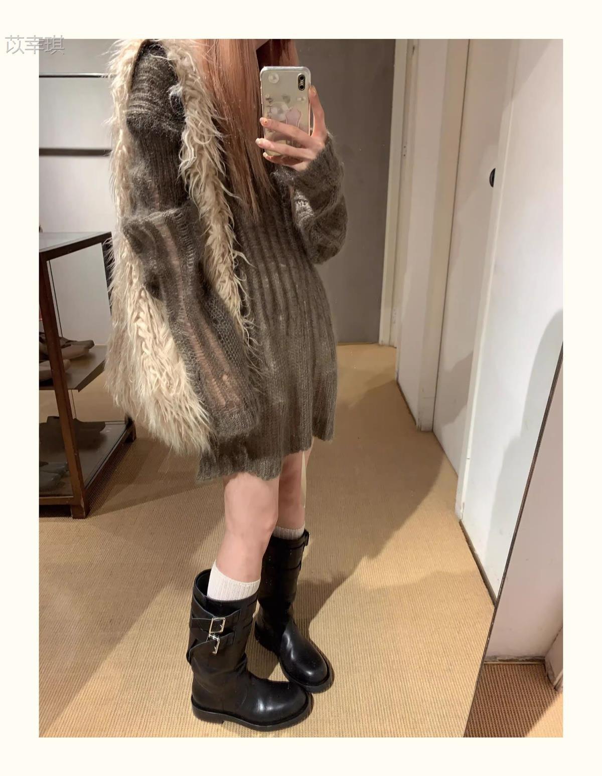 Versión de piel de vaca~Botas de motociclista retro de cuero genuino botas de caballero para mujer tacón grueso sobre la rodilla botas largas hasta media pantorrilla adelgazantes botas Martin