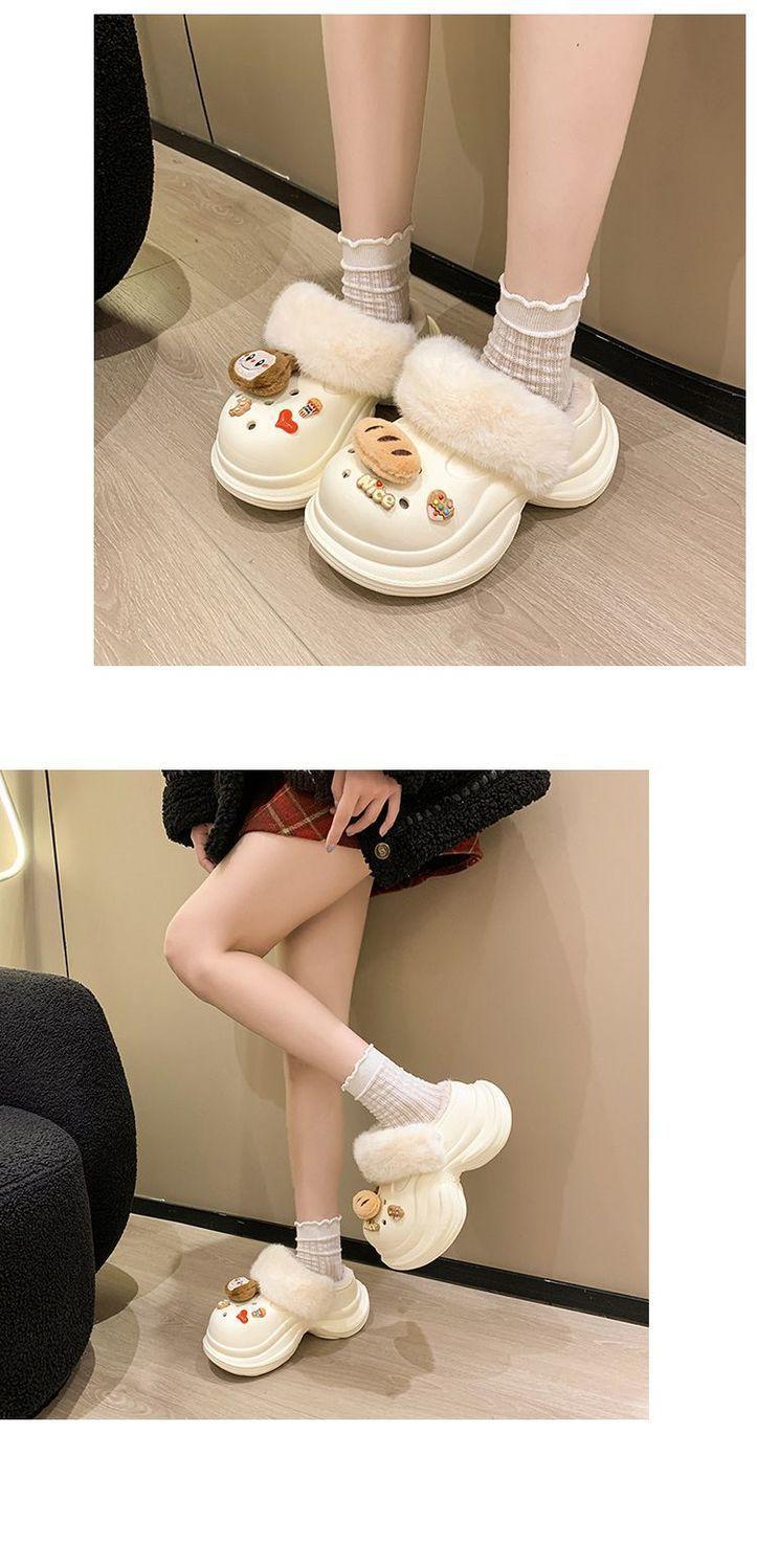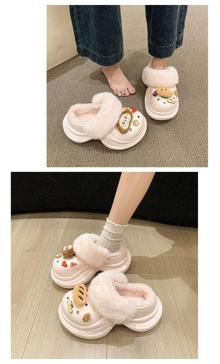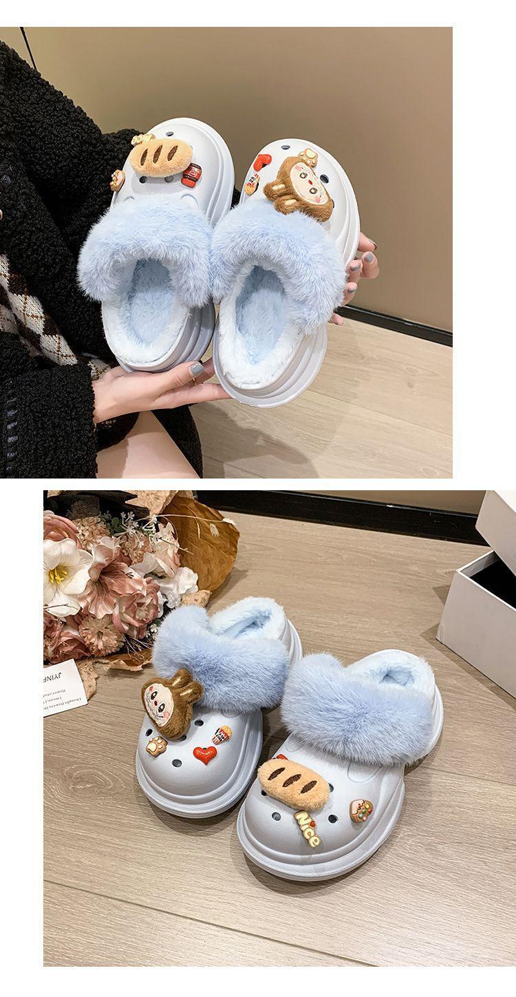 Pantuflas de Algodón Cómodas de Suela Gruesa que Aumentan la Altura con Lindas Pantuflas de Casa de Felpa de Dibujos Animados 2025 Otoño/Invierno Nuevo