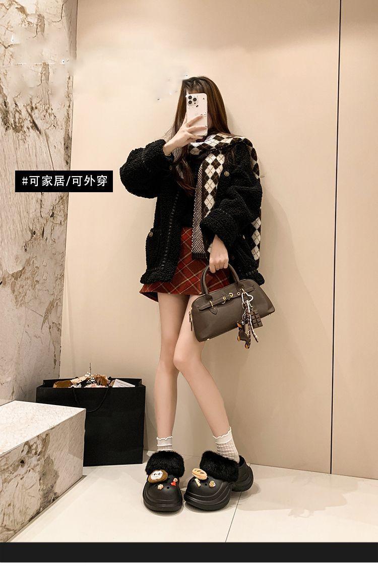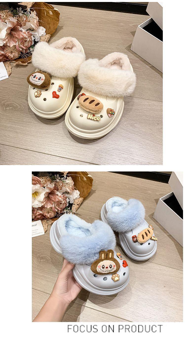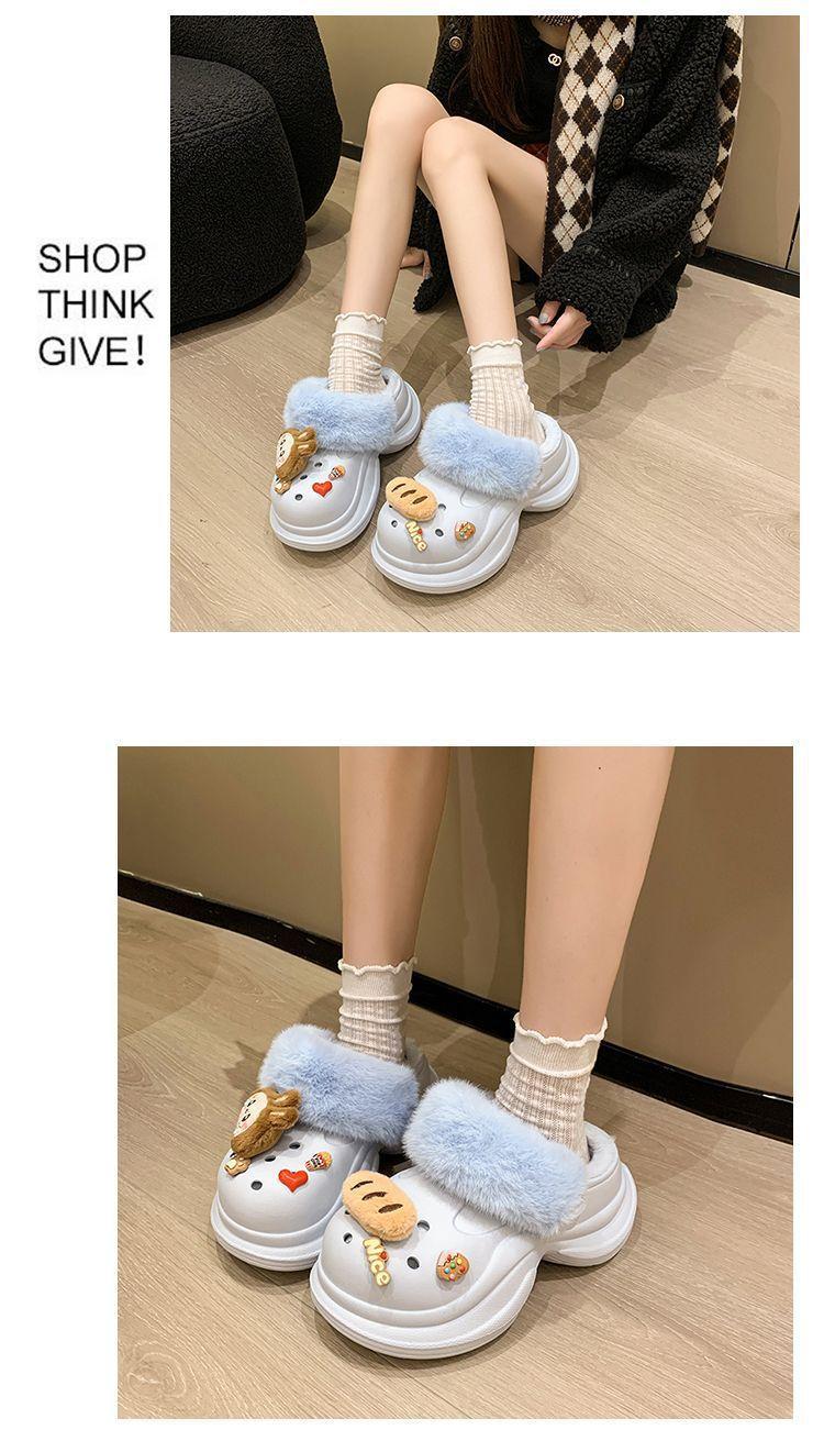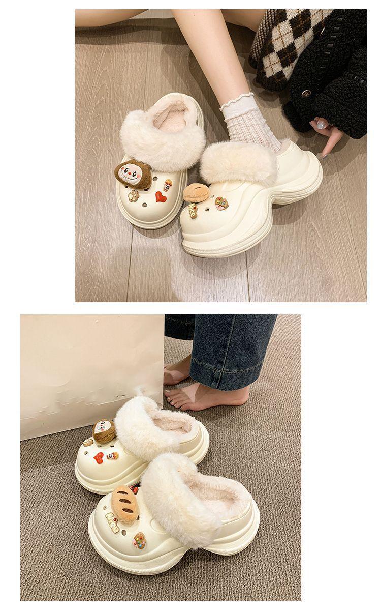 Pantuflas de Algodón Cómodas de Suela Gruesa que Aumentan la Altura con Lindas Pantuflas de Casa de Felpa de Dibujos Animados 2025 Otoño/Invierno Nuevo