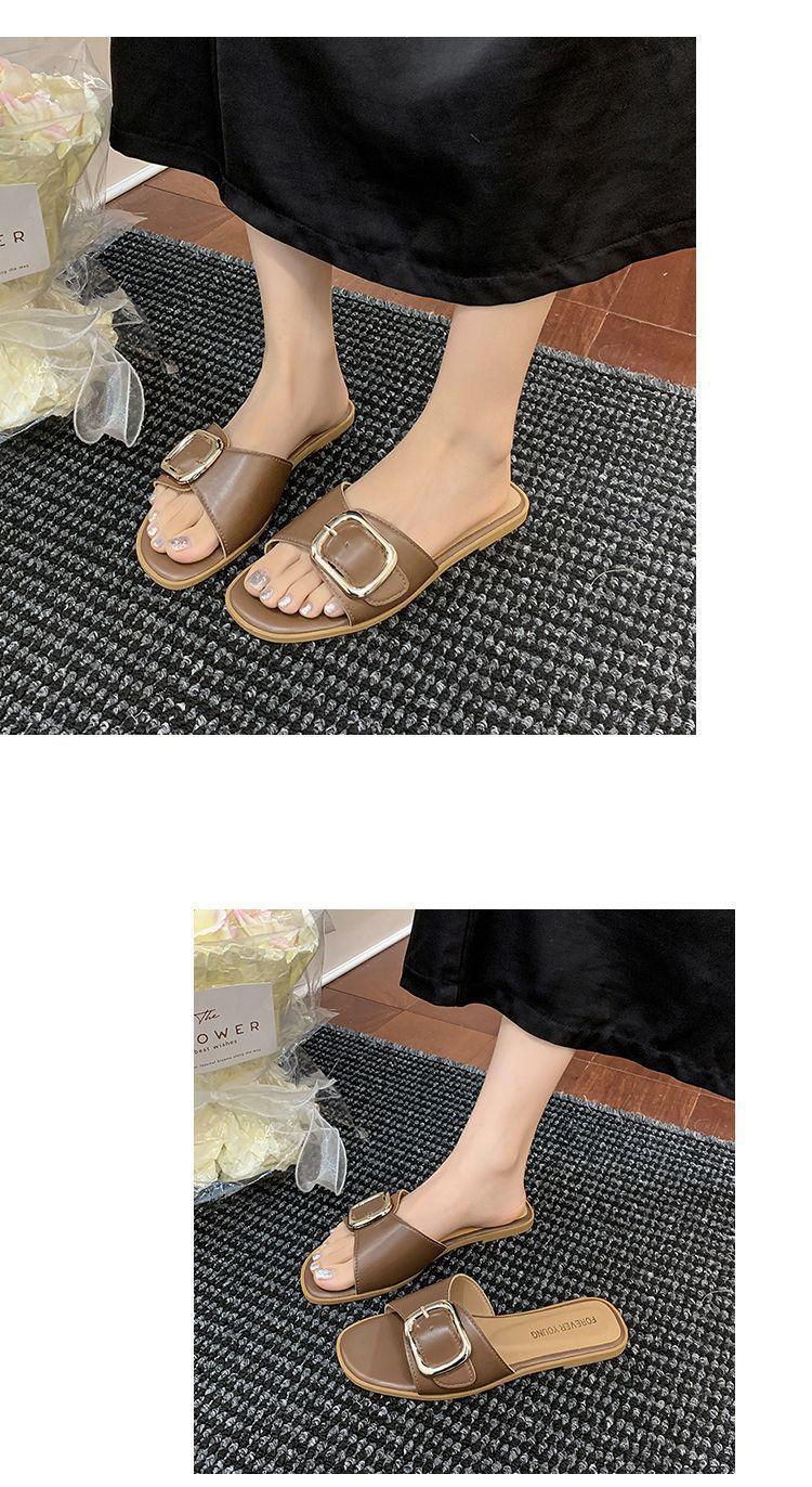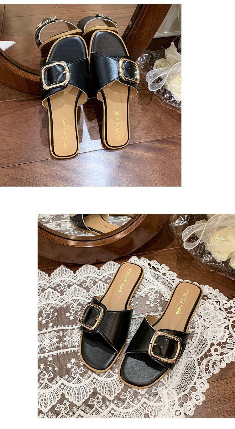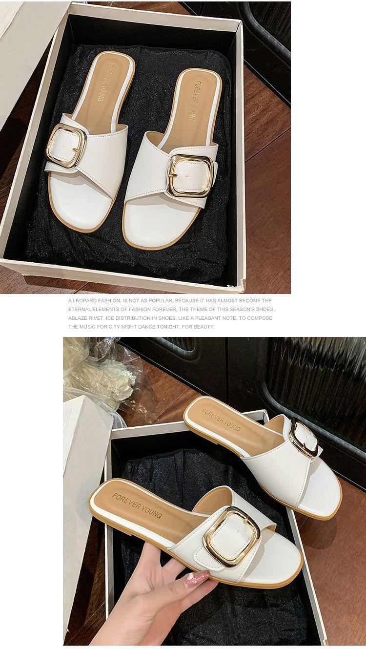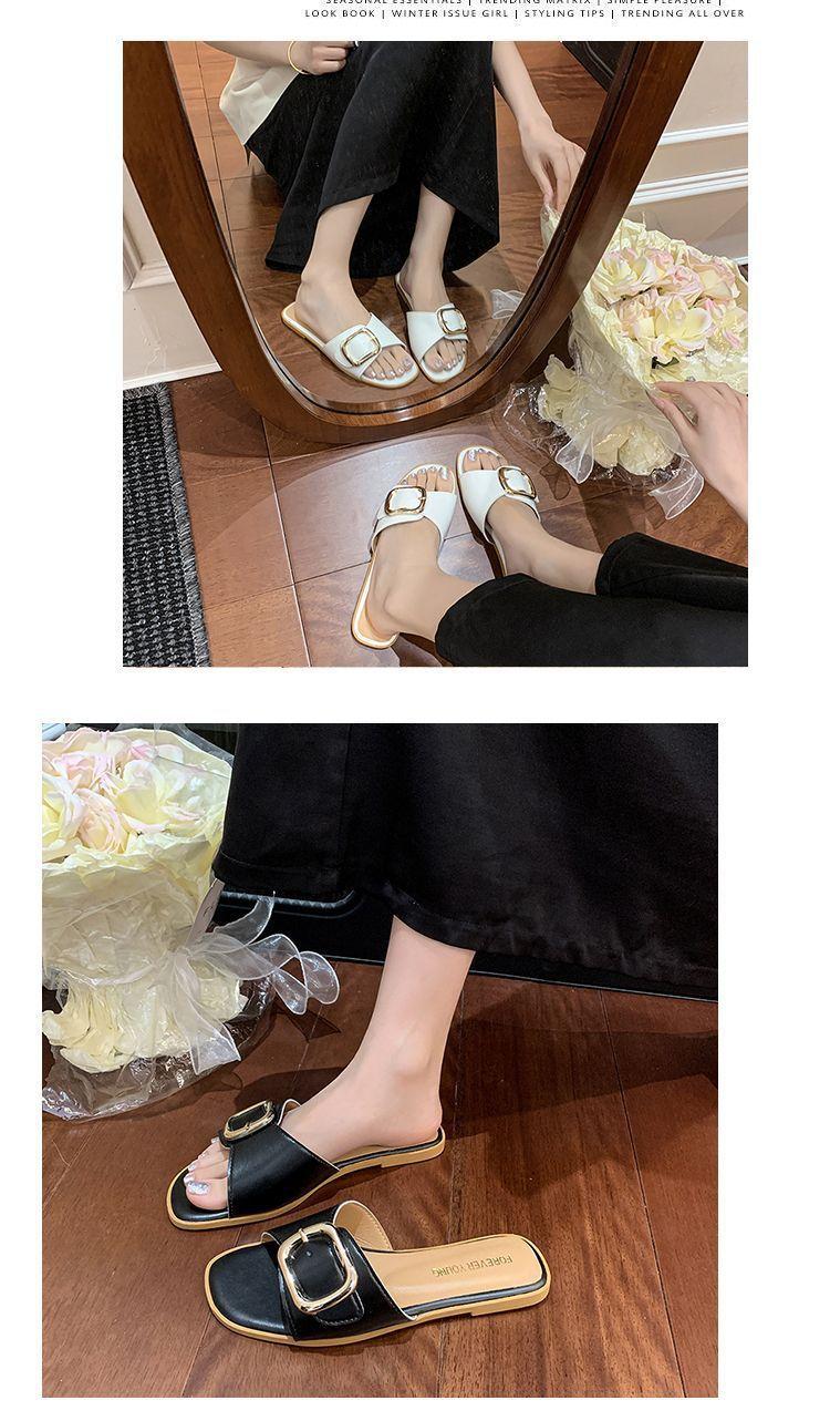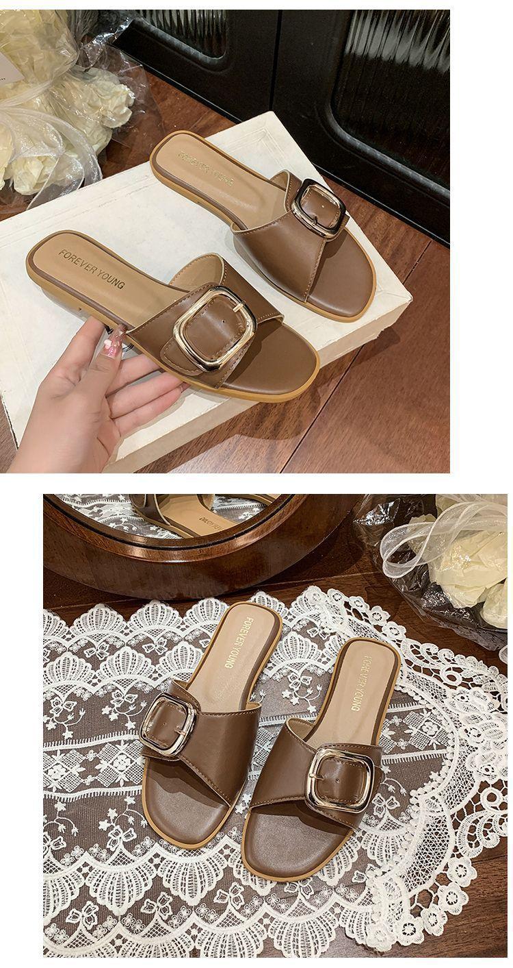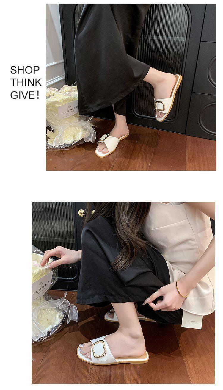 Sandalias de Playa de Suela Blanda Plana Antideslizante con Hebilla Cuadrada de Moda Estilo Hada Zapatillas de Exterior Nuevo Verano y Otoño 2025