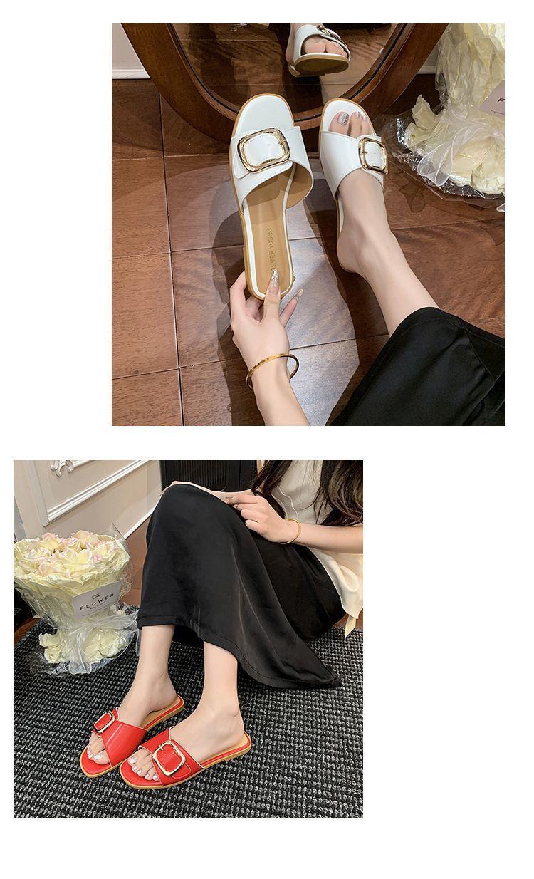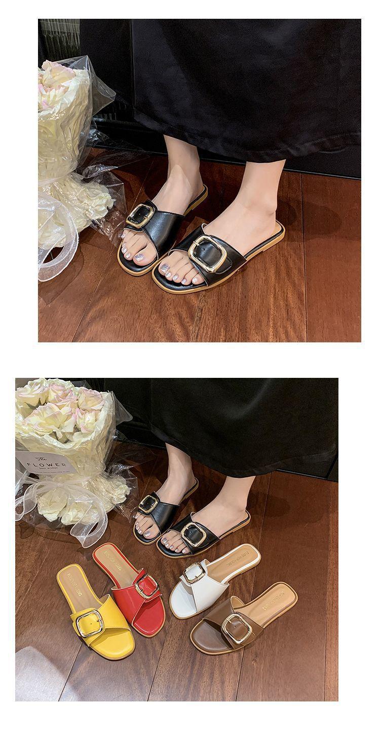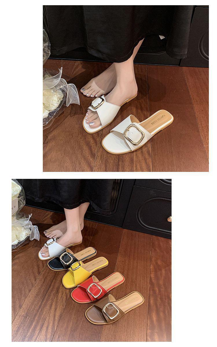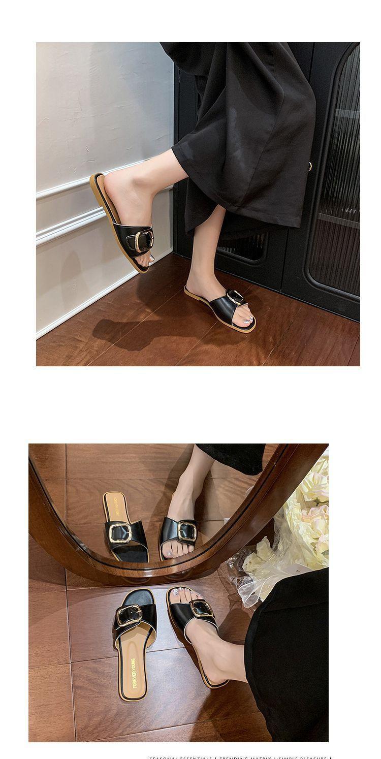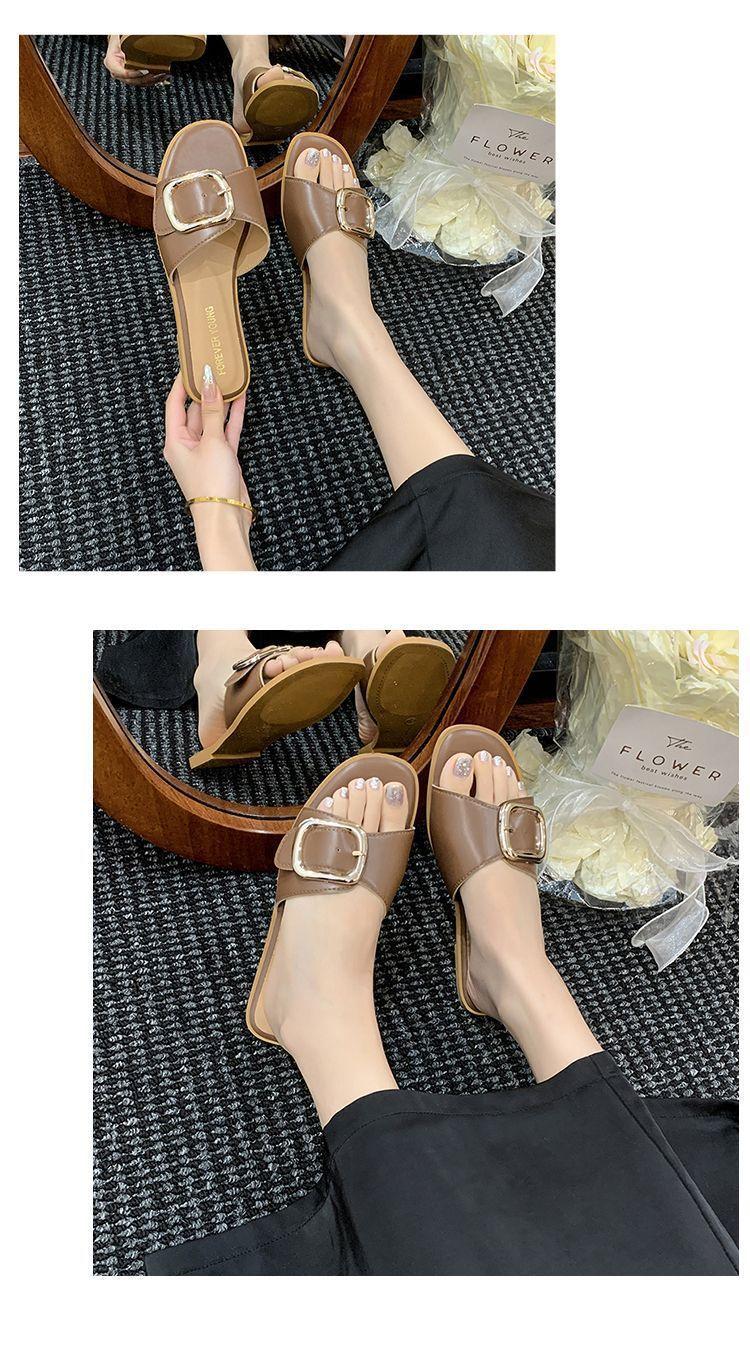 Sandalias de Playa de Suela Blanda Plana Antideslizante con Hebilla Cuadrada de Moda Estilo Hada Zapatillas de Exterior Nuevo Verano y Otoño 2025
