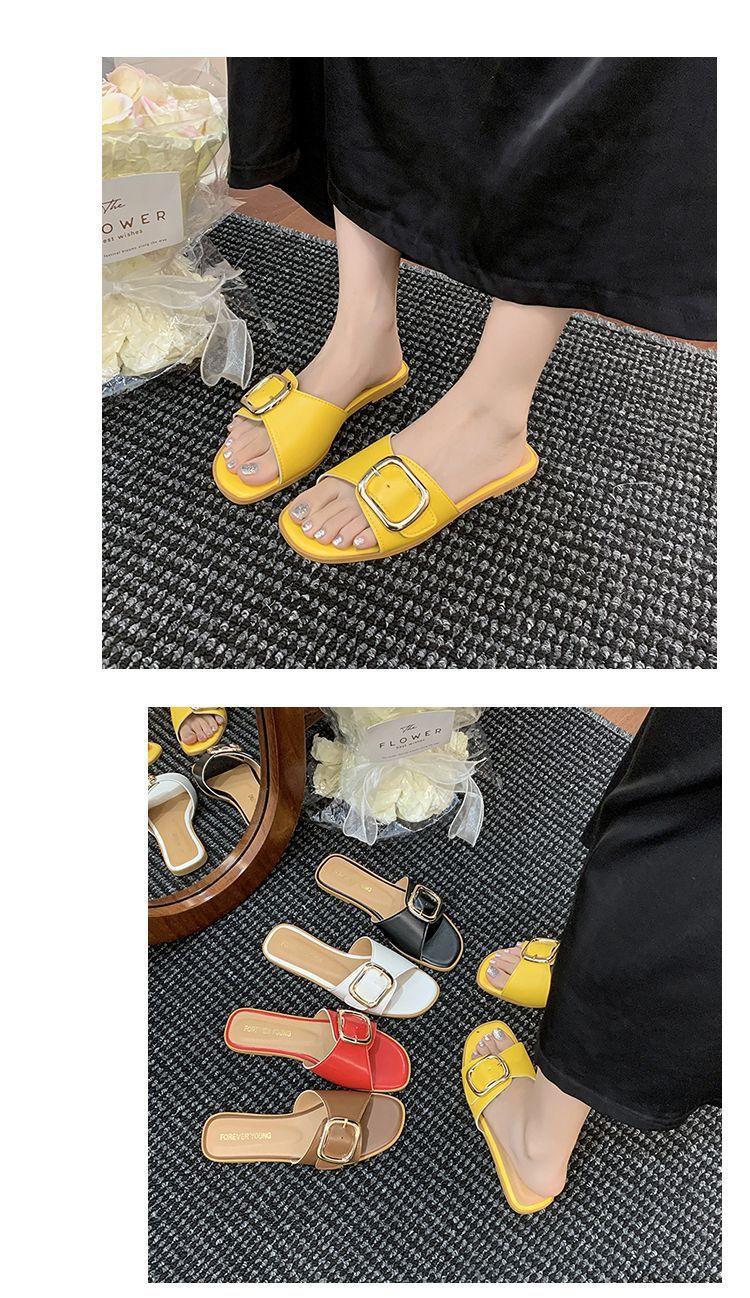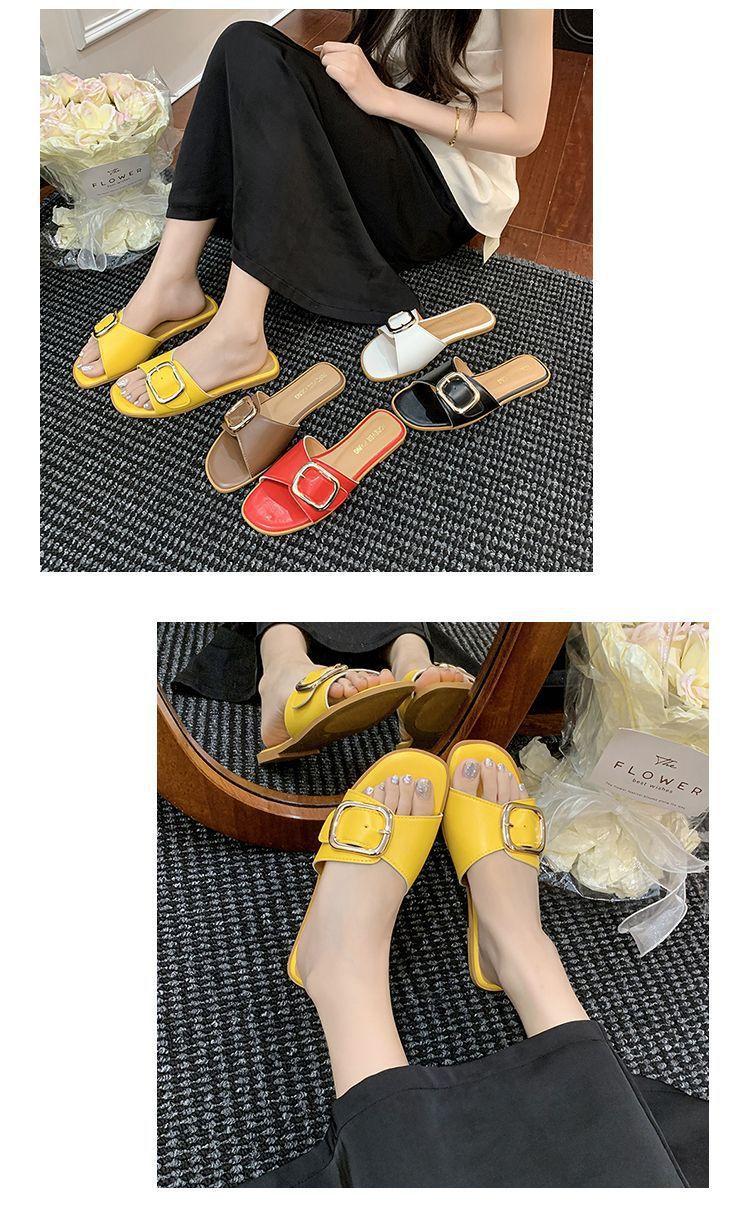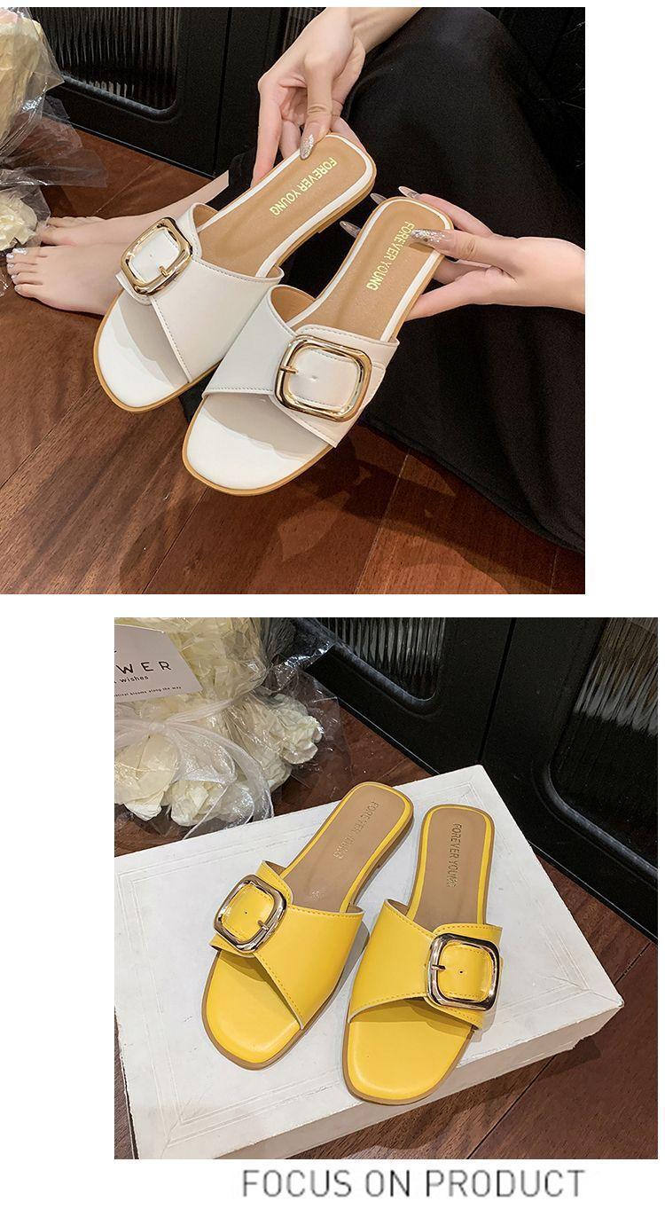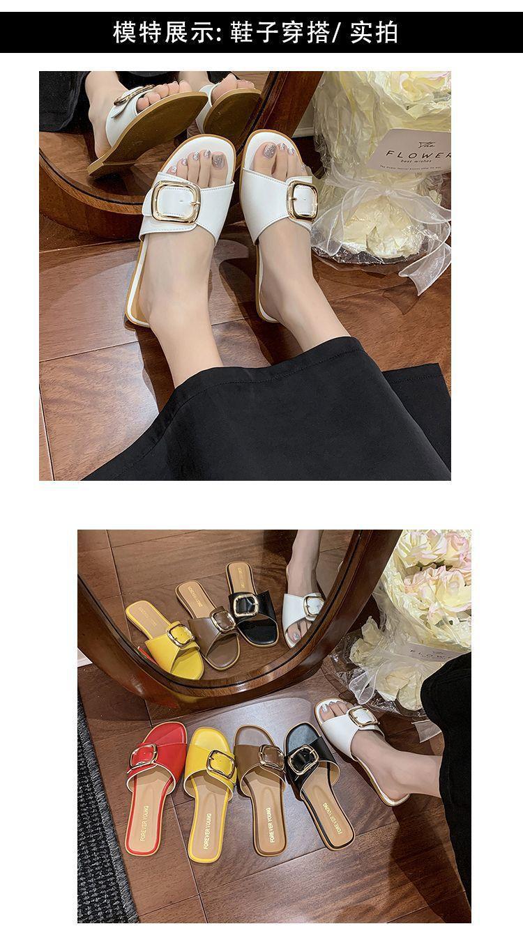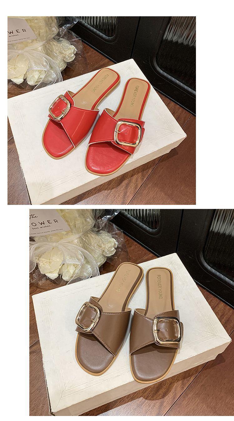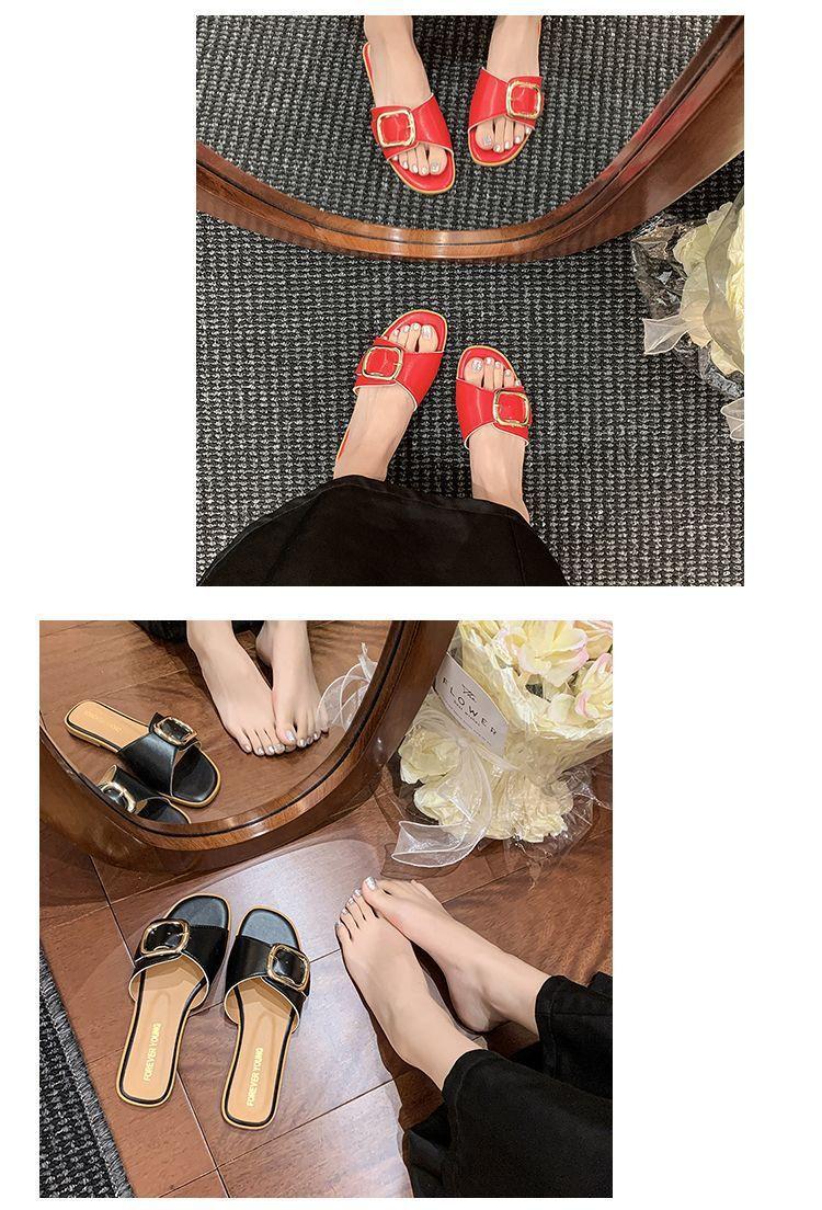 Sandalias de Playa de Suela Blanda Plana Antideslizante con Hebilla Cuadrada de Moda Estilo Hada Zapatillas de Exterior Nuevo Verano y Otoño 2025