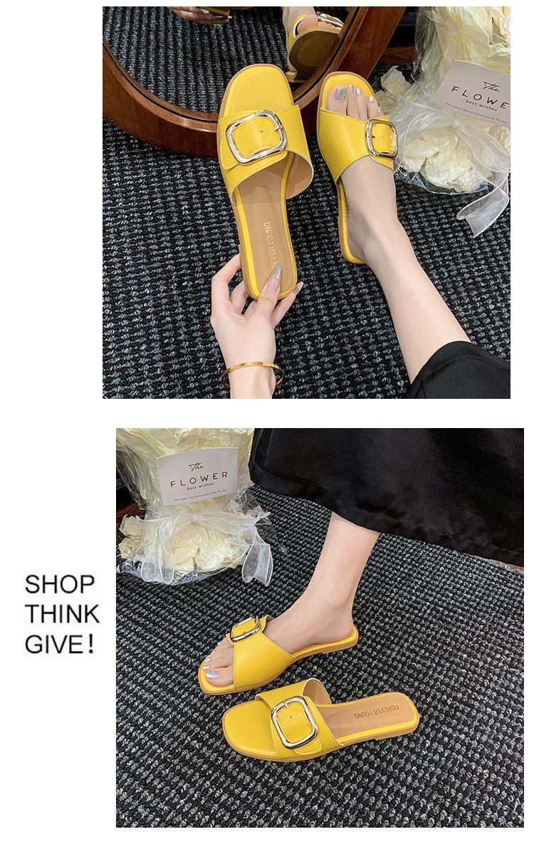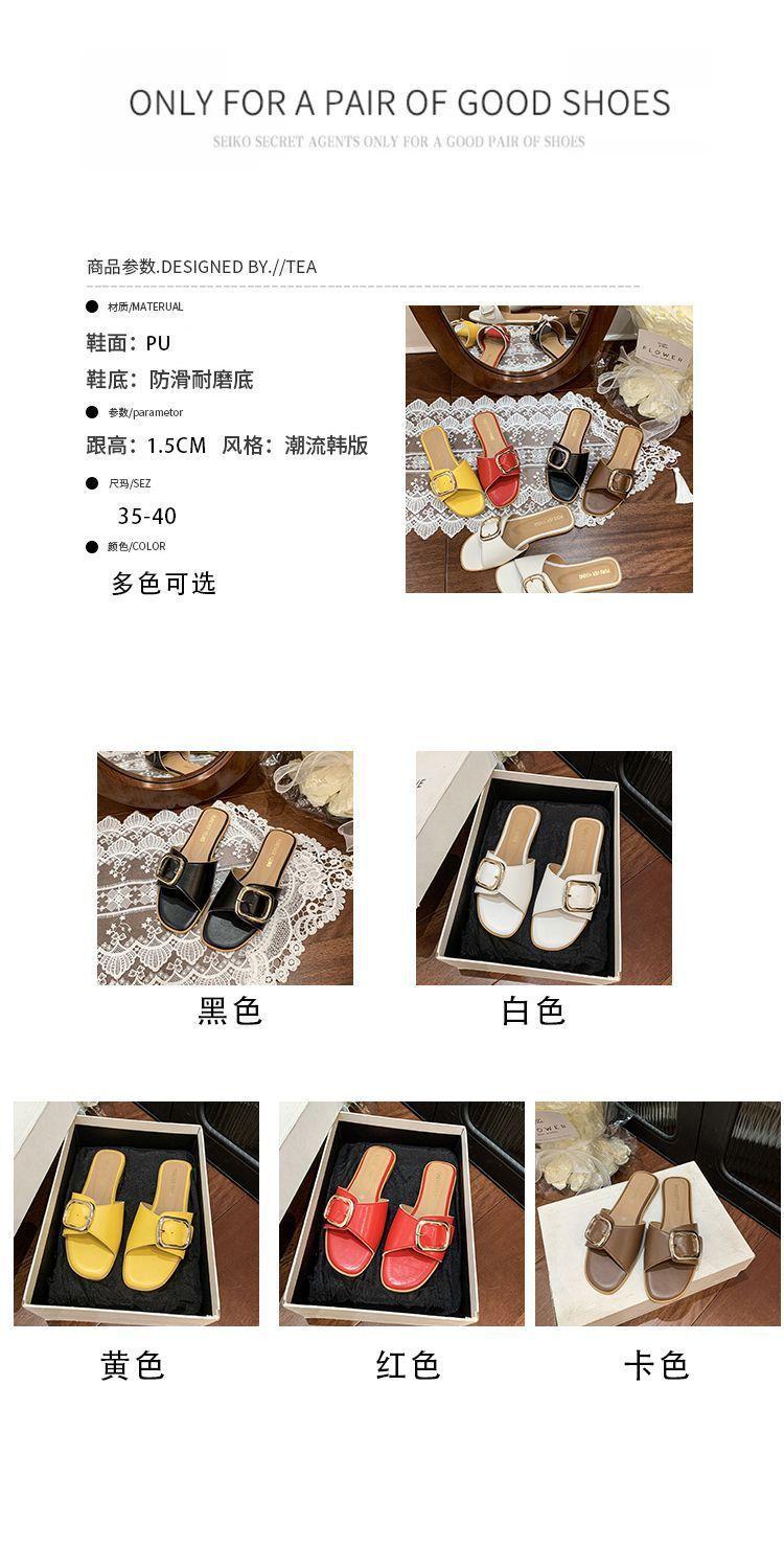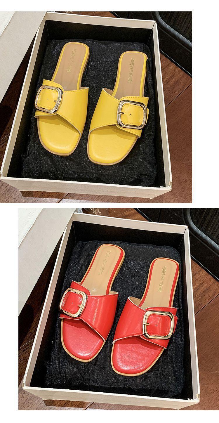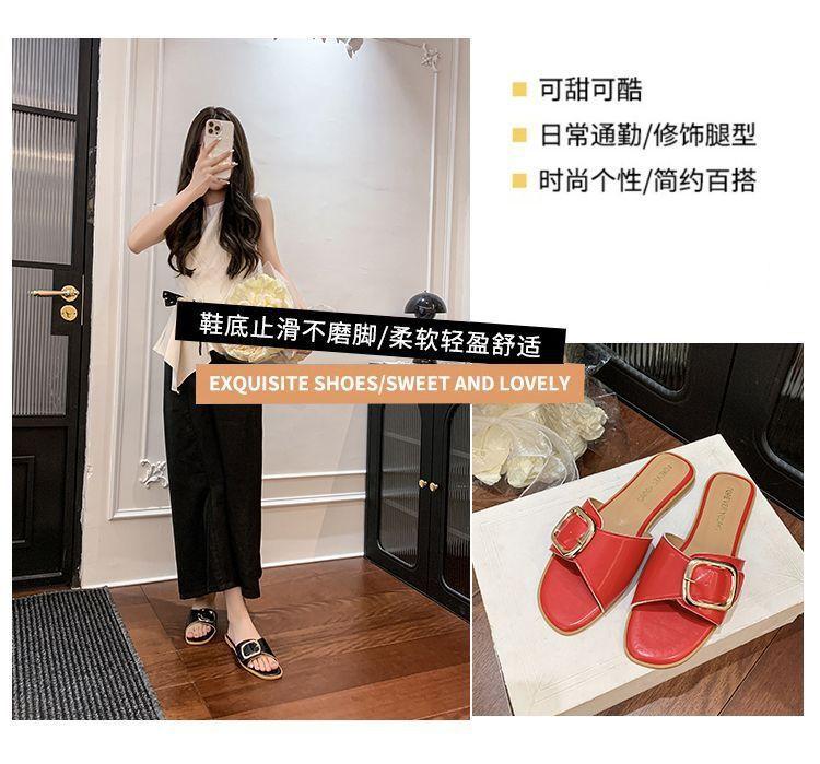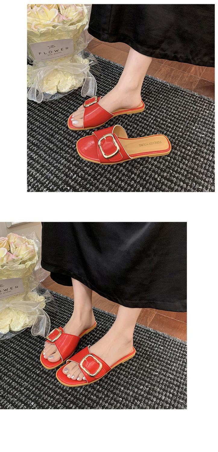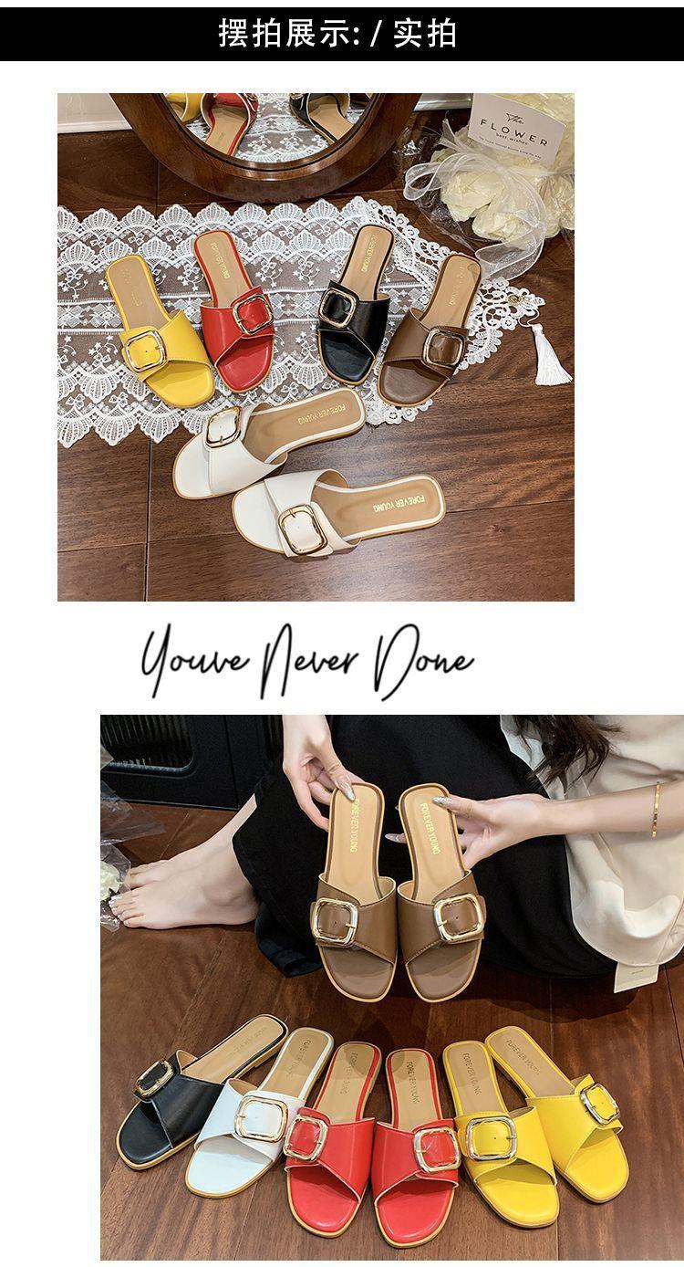 Sandalias de Playa de Suela Blanda Plana Antideslizante con Hebilla Cuadrada de Moda Estilo Hada Zapatillas de Exterior Nuevo Verano y Otoño 2025