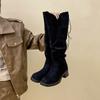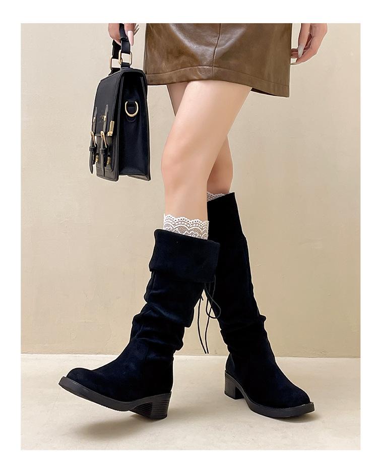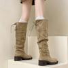 Botas altas con cordones de temperamento retro, modernas y versátiles, para mujer francesa, otoño e invierno 2025, nuevas botas ajustadas, botas Martin