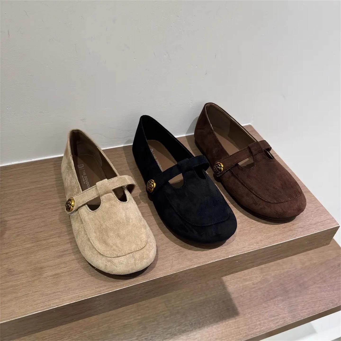 Zapatos Planos de Punta Redonda Retro Estilo Coreano para Mujer Otoño/Invierno 2025 Nuevos Suela Suave de Gamuza Versátiles Adelgazantes Zapatos Mary Jane