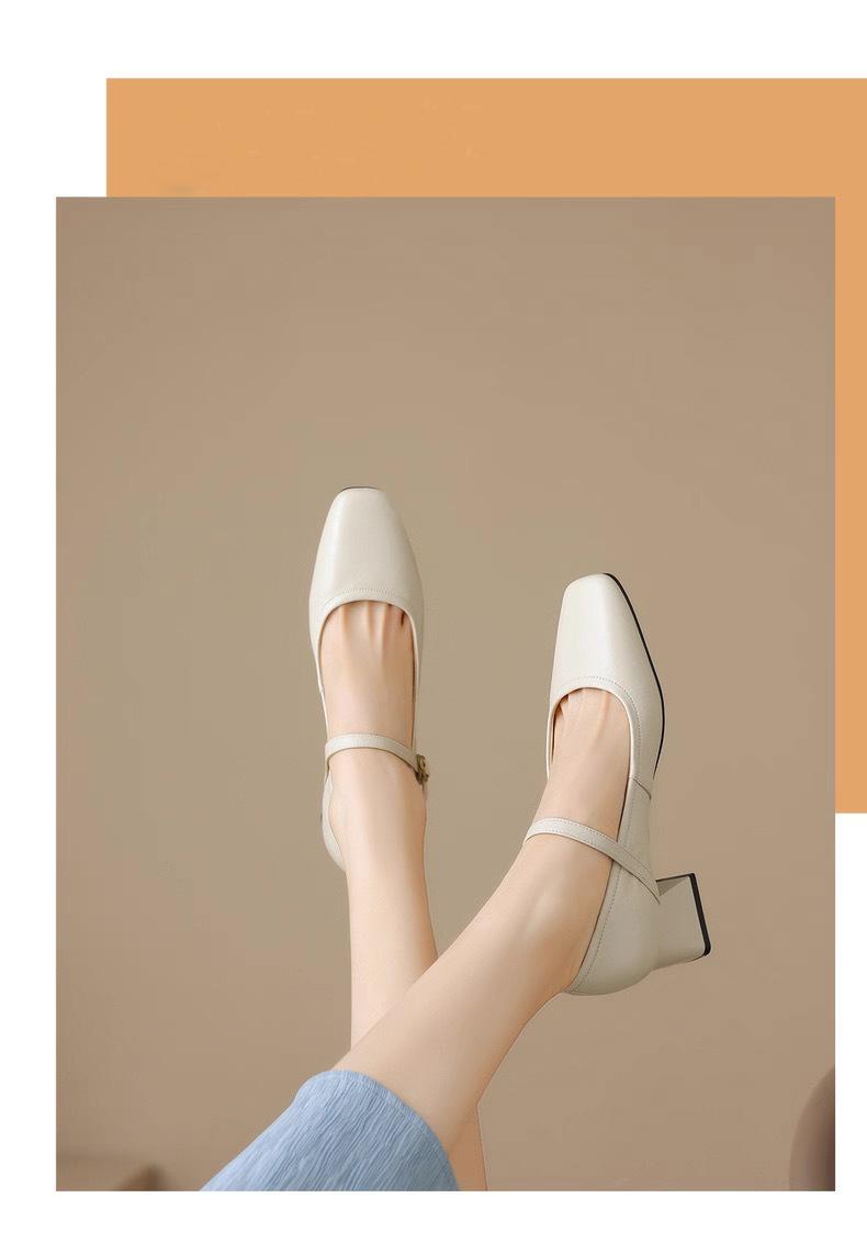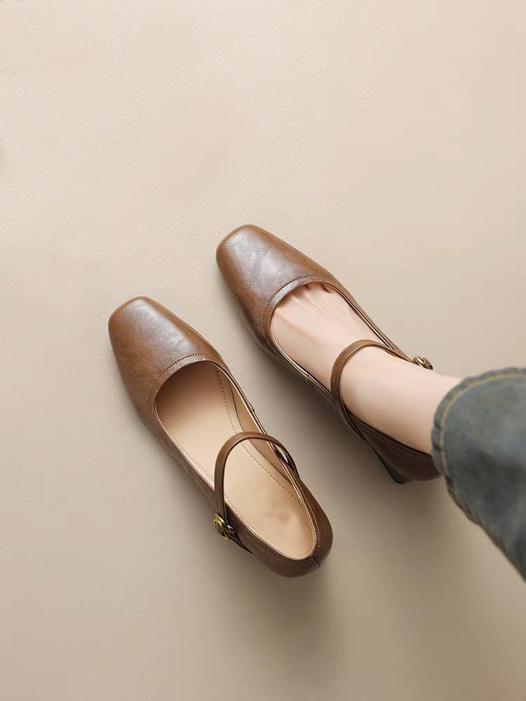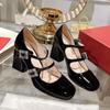 Zapatos de Tacón Alto Rojos 2025 Primavera y Otoño Nuevos Retro Francés Tacón Grueso Mary Janes de Una Tira Zapatos Individuales de Mujer