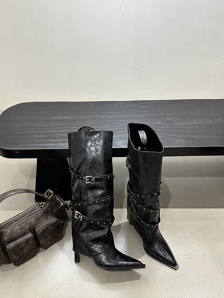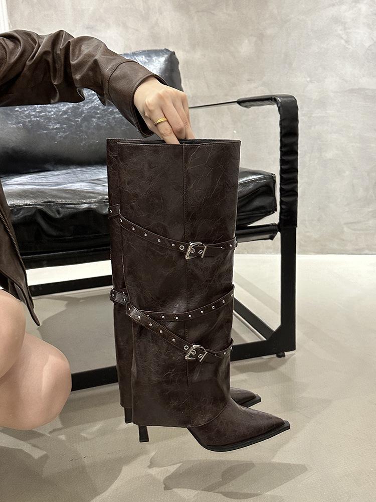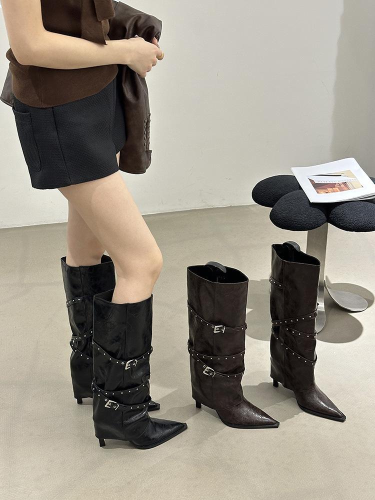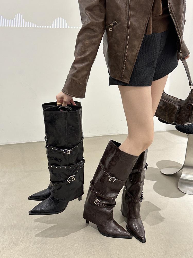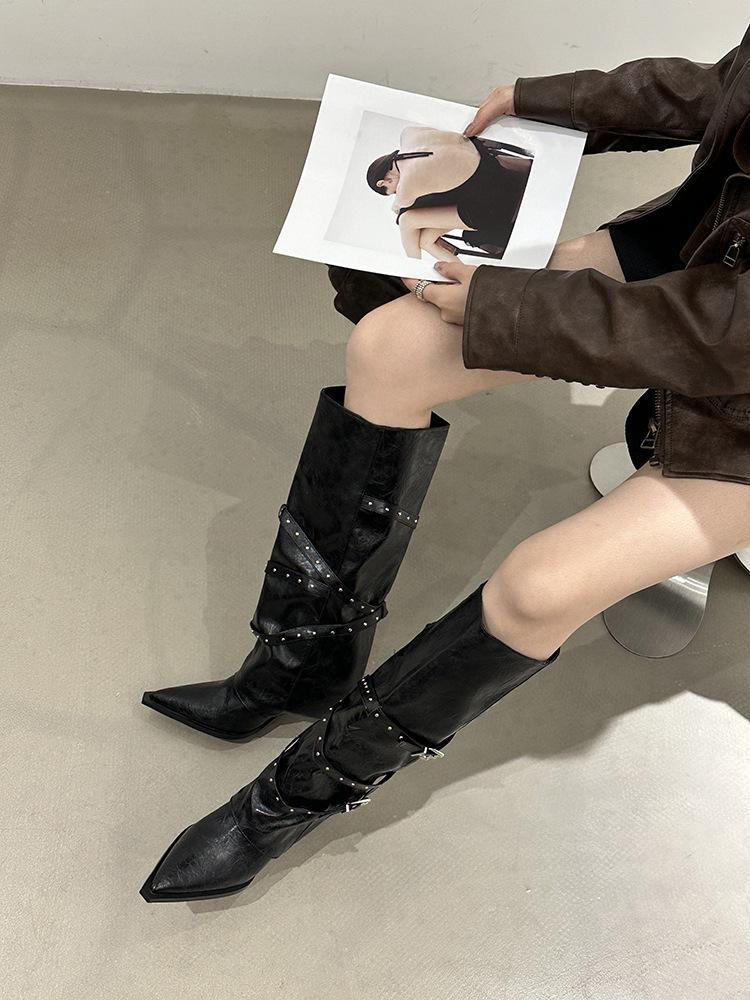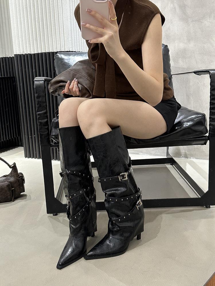 Botas Largas de Punta para Mujer 2025 Otoño/Invierno Nuevas Botas de Mujer Botas Martin Tacones Altos Botas Largas Botas de Motociclista Botas de Caballero