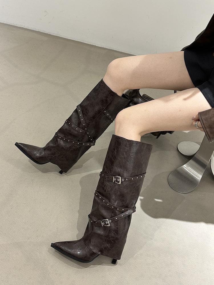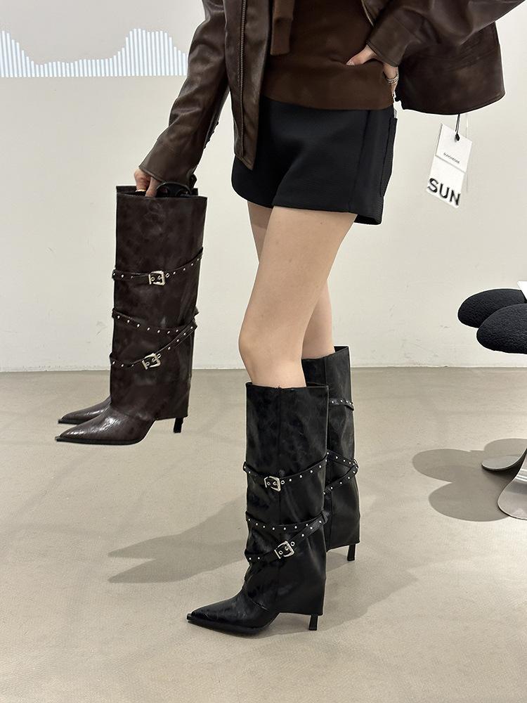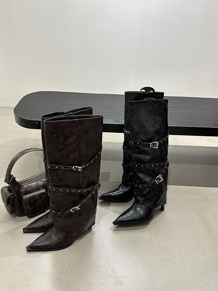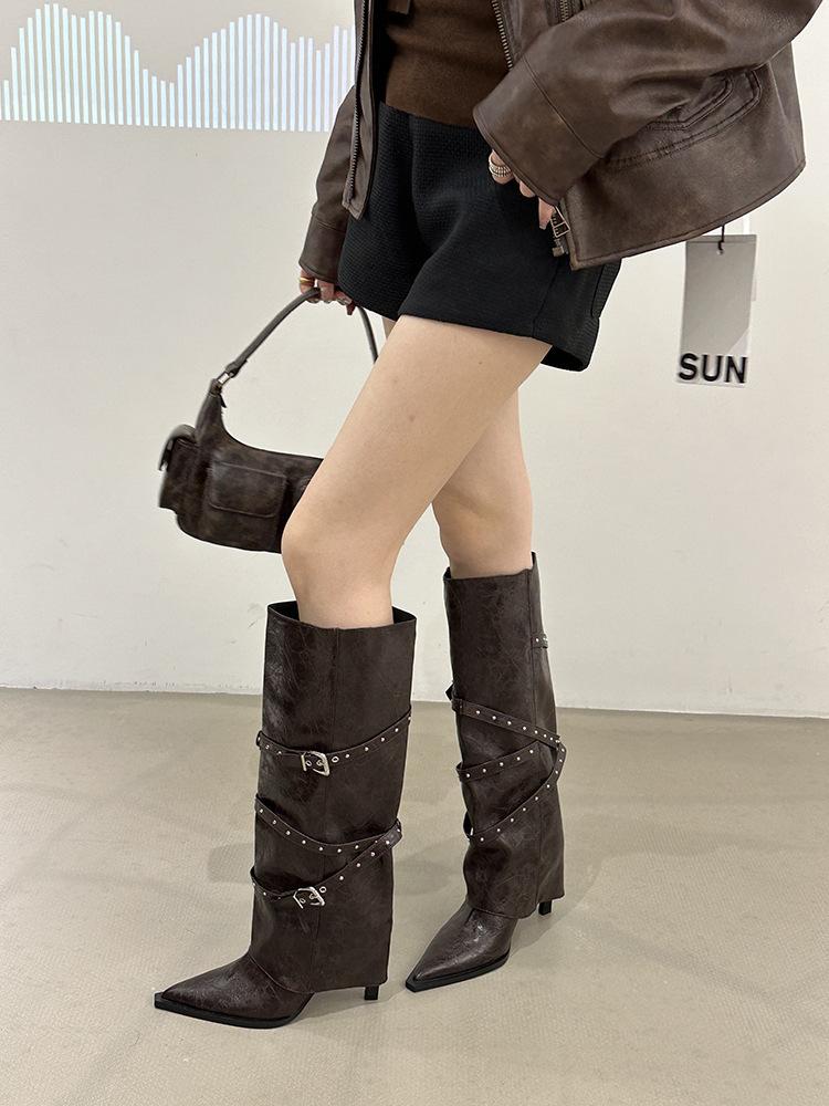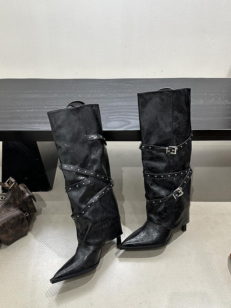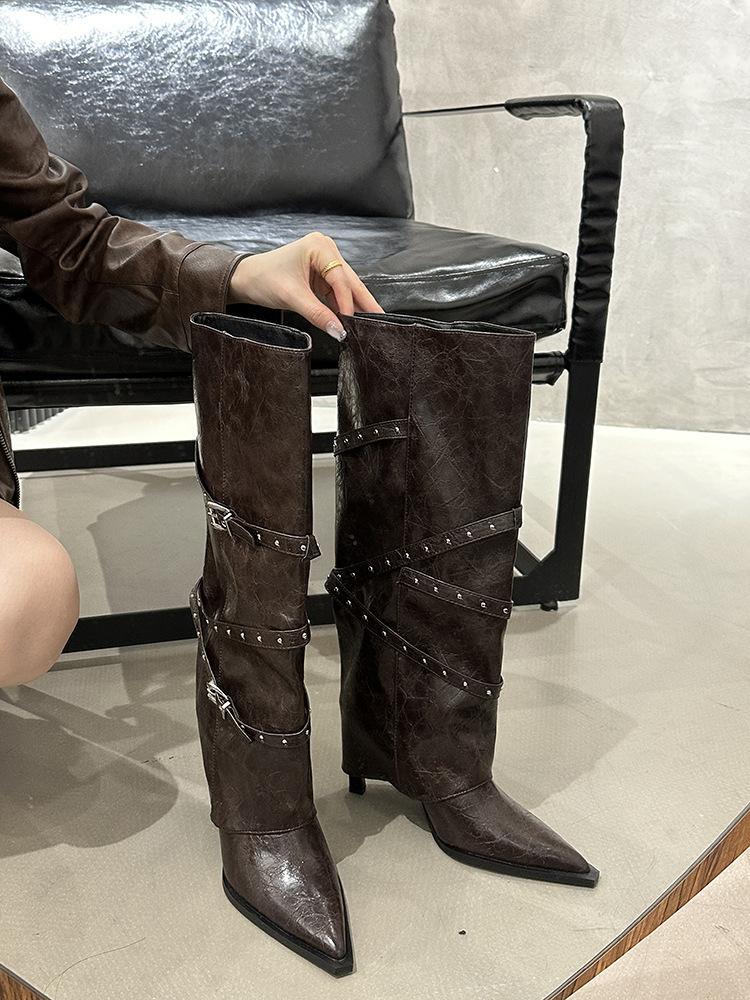 Botas Largas de Punta para Mujer 2025 Otoño/Invierno Nuevas Botas de Mujer Botas Martin Tacones Altos Botas Largas Botas de Motociclista Botas de Caballero