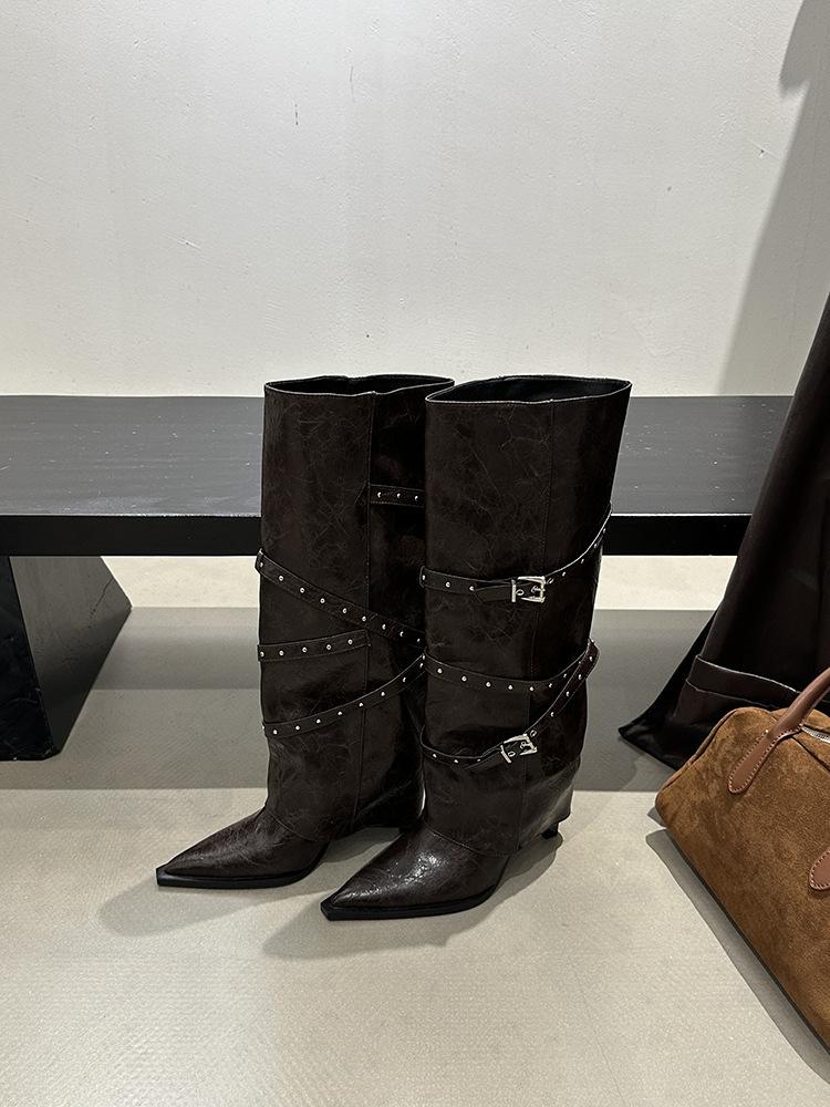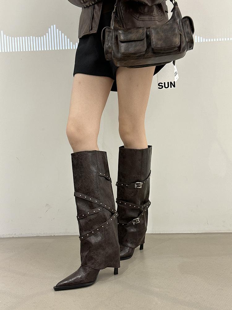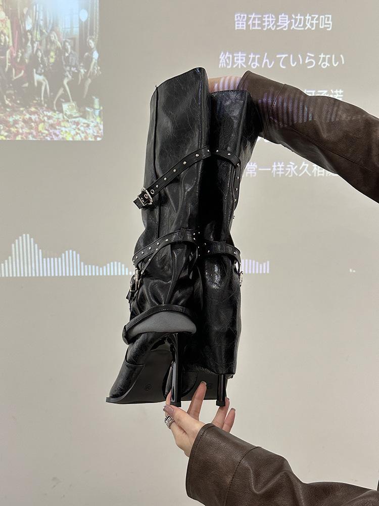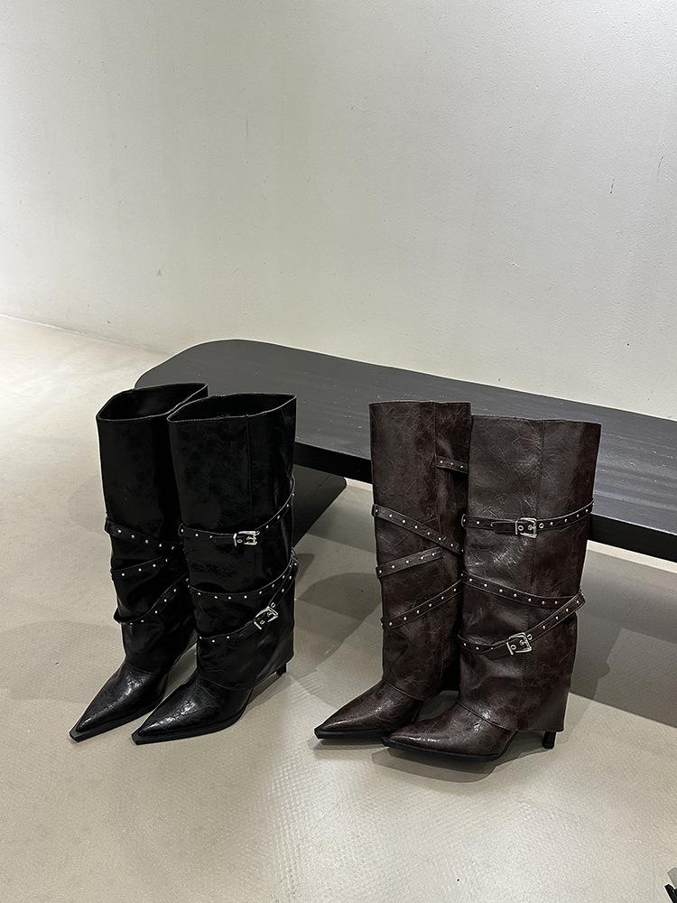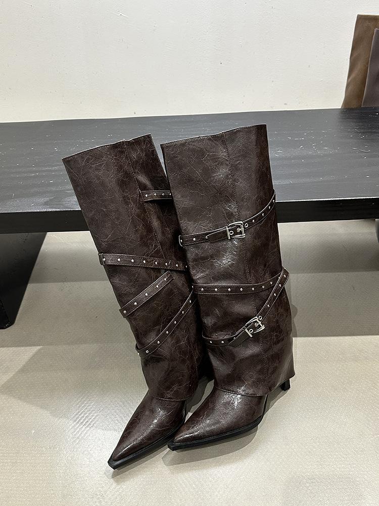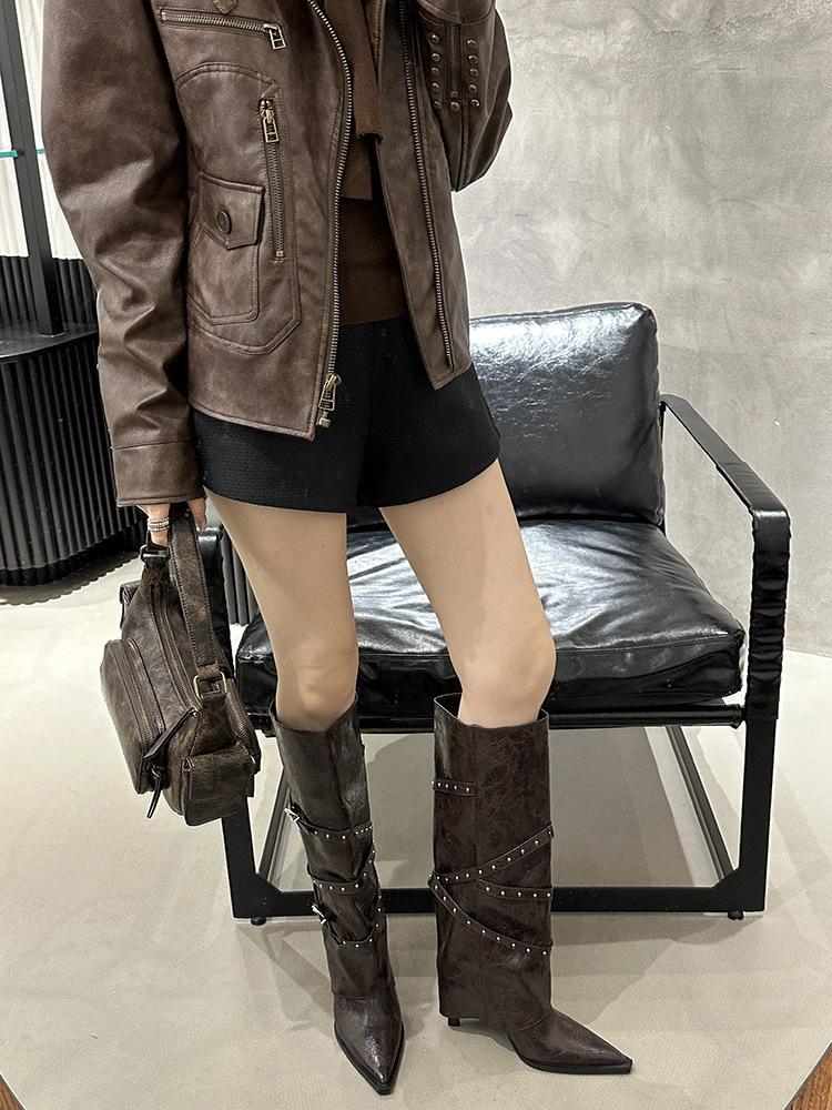 Botas Largas de Punta para Mujer 2025 Otoño/Invierno Nuevas Botas de Mujer Botas Martin Tacones Altos Botas Largas Botas de Motociclista Botas de Caballero