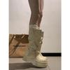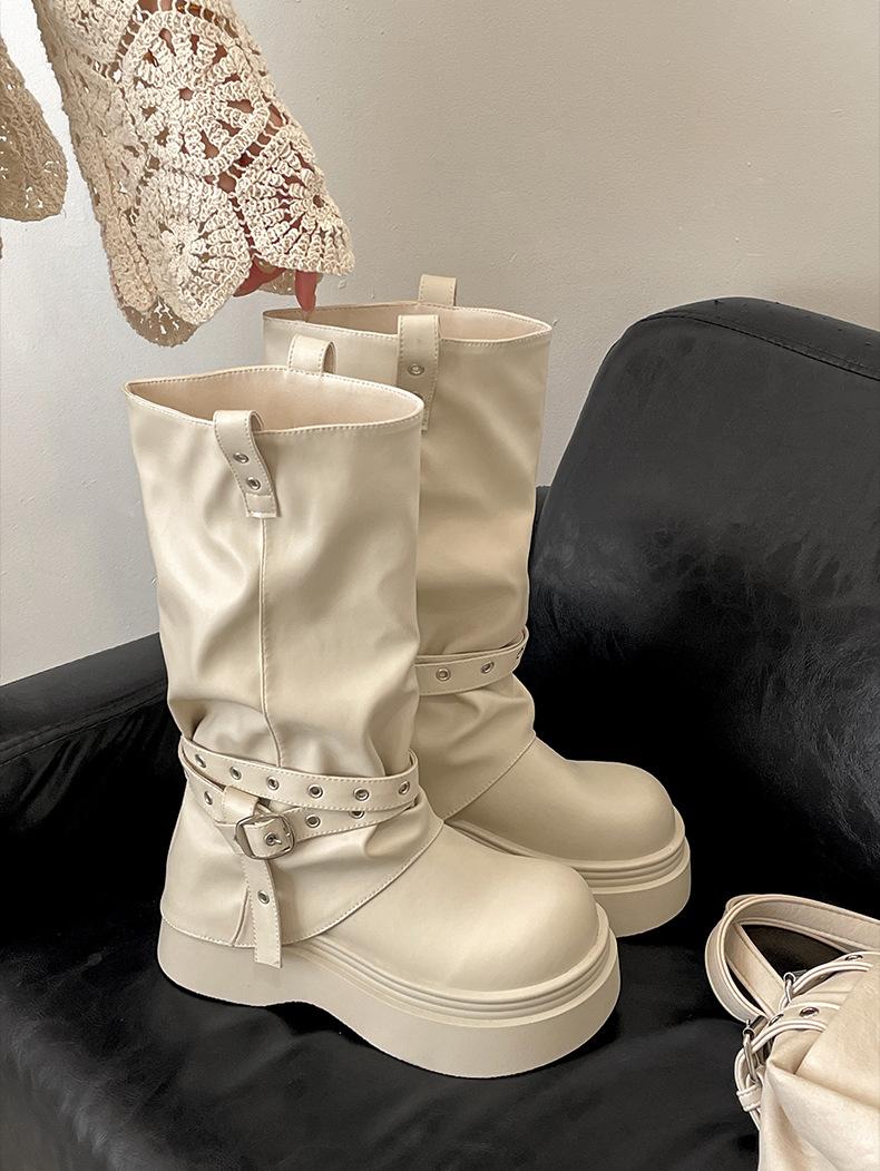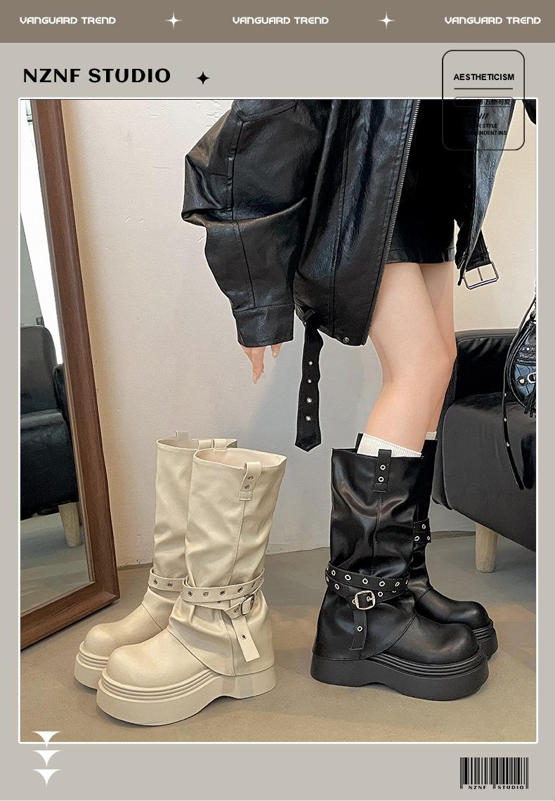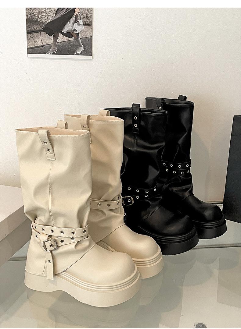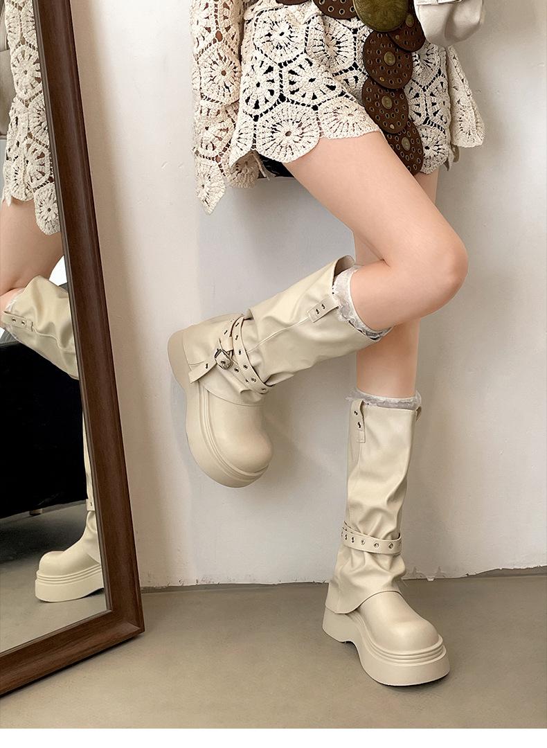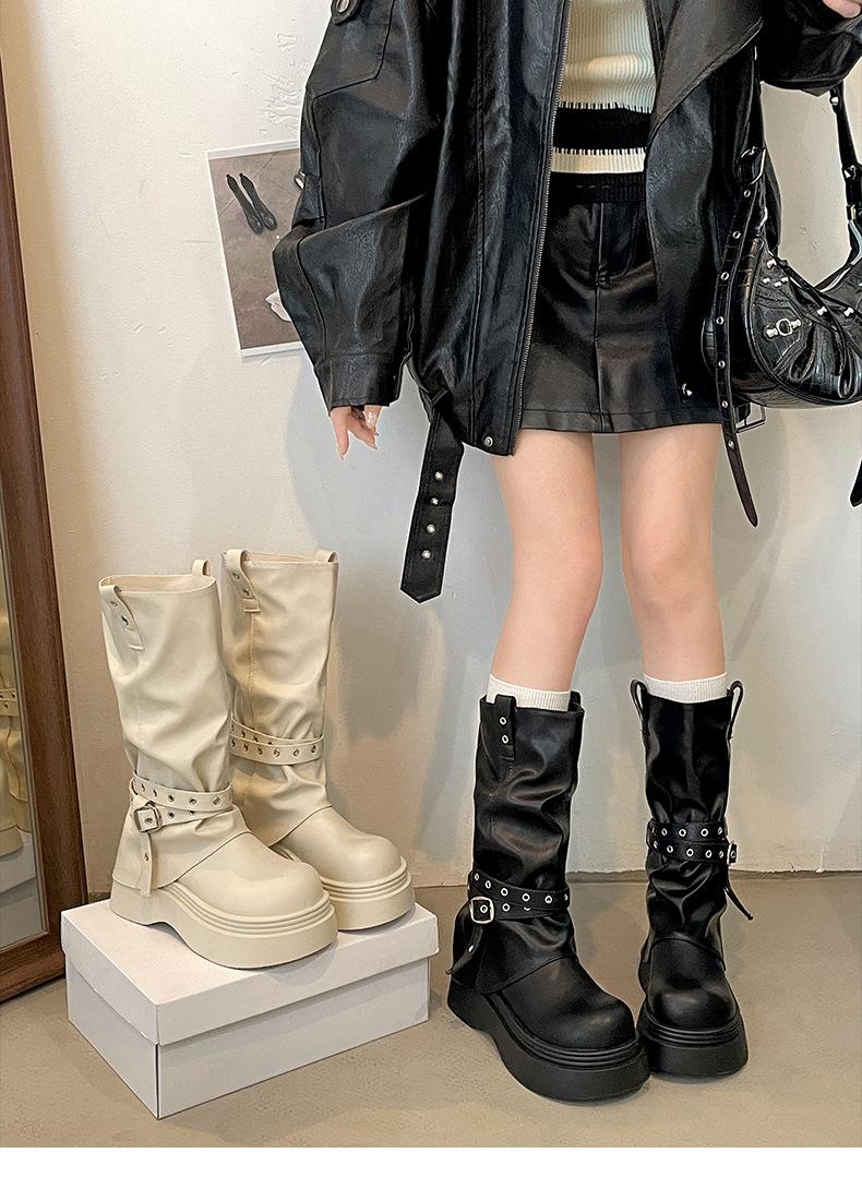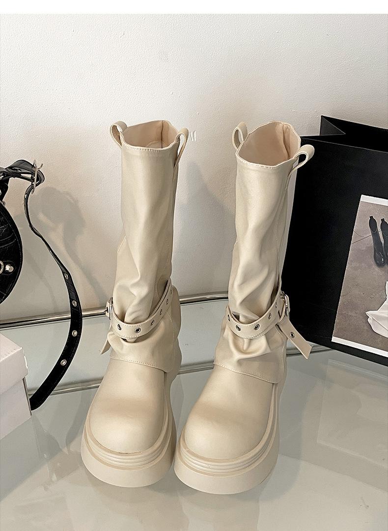 Botas de Plataforma Retro Blancas Botas hasta la Rodilla para Mujer 2025 Nuevo Otoño Versátil Petite Aumento de Altura Adelgazantes Pantalones Botas