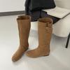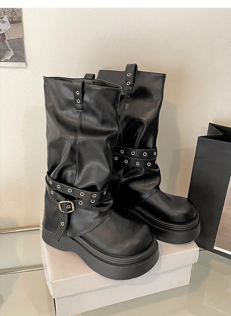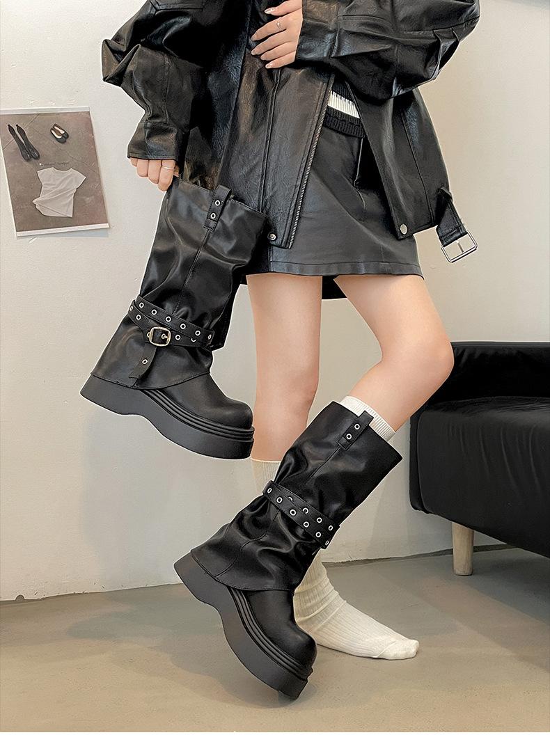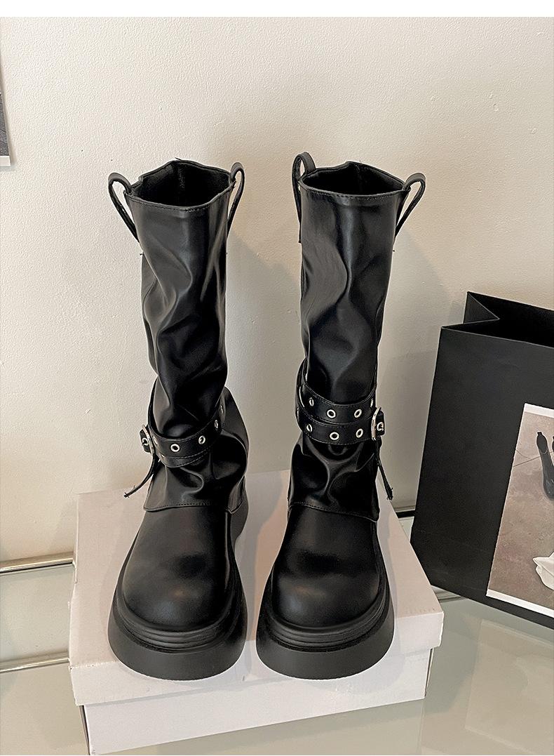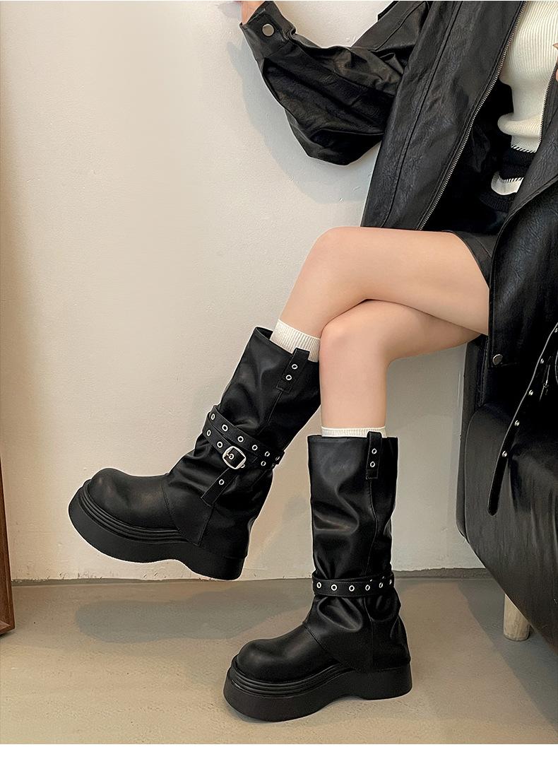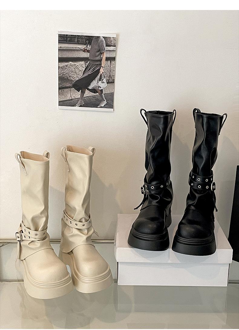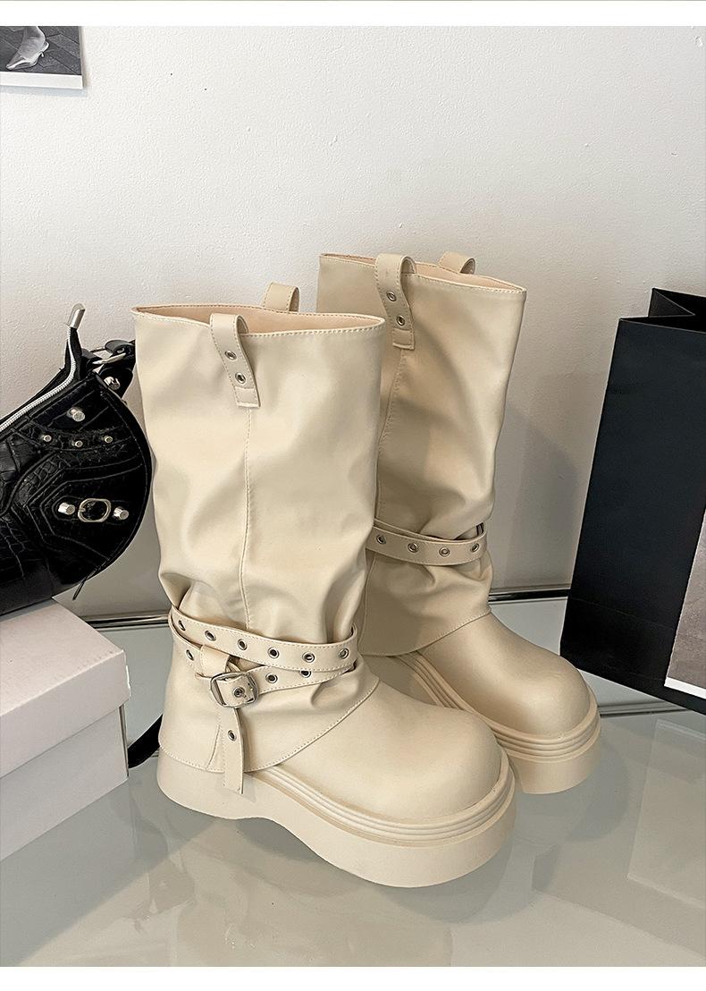 Botas de Plataforma Retro Blancas Botas hasta la Rodilla para Mujer 2025 Nuevo Otoño Versátil Petite Aumento de Altura Adelgazantes Pantalones Botas