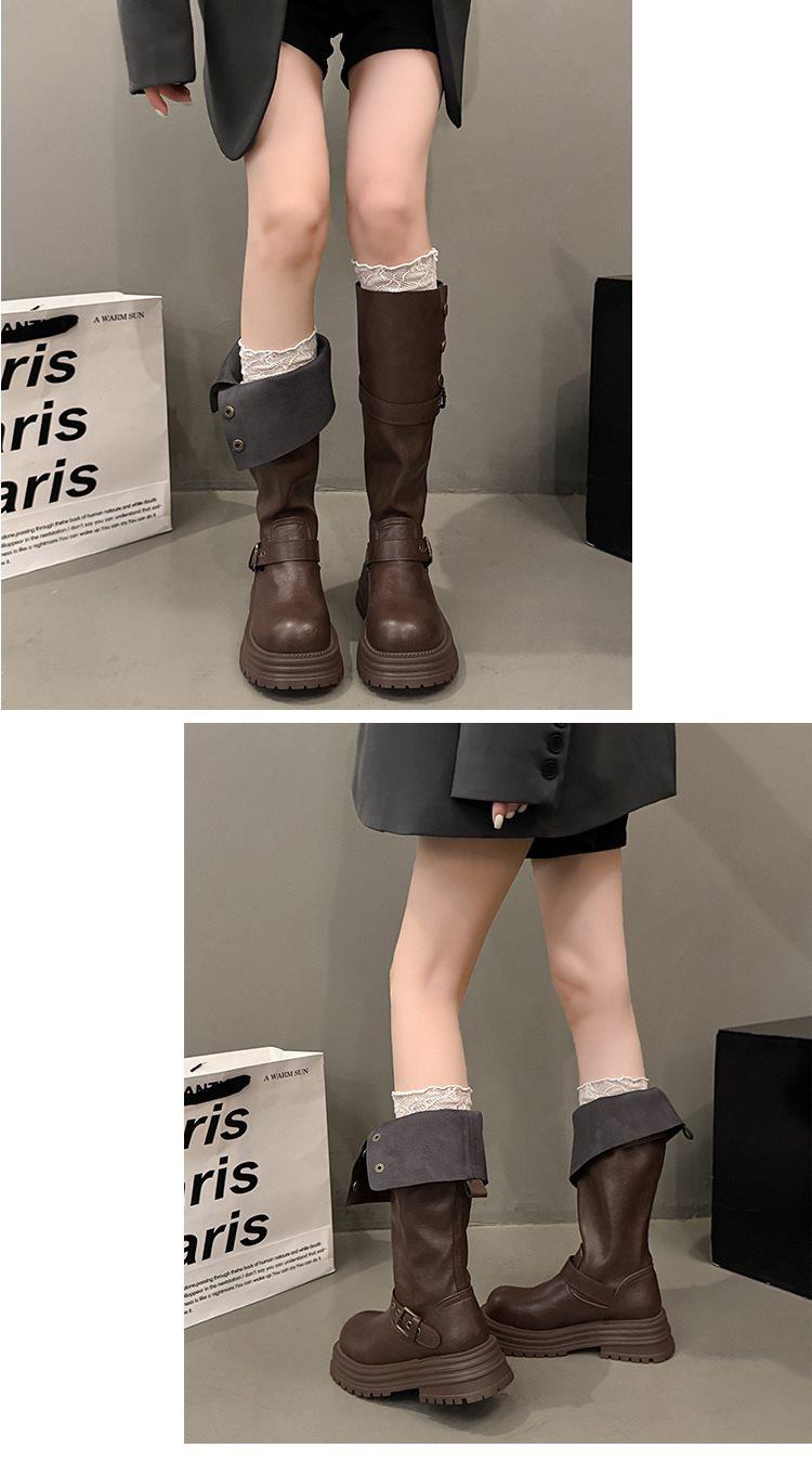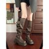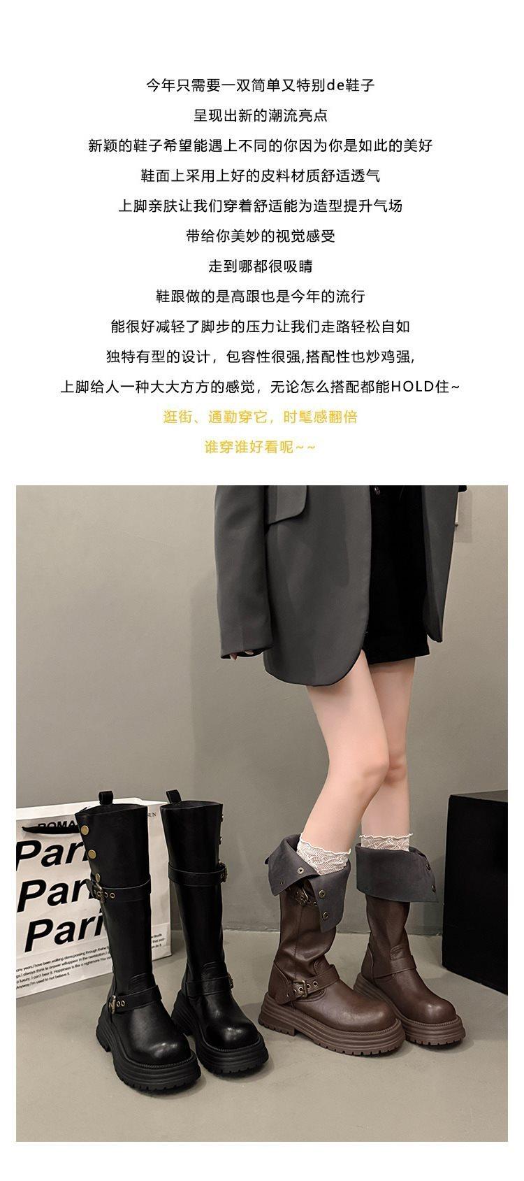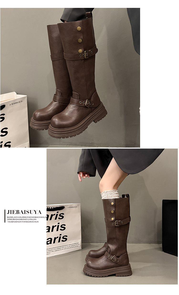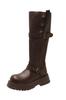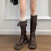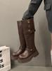 Botas altas largas Melaard marrones de suela gruesa para mujer verano 2025 nuevo otoño combinar falda vaquero occidental caballero botas