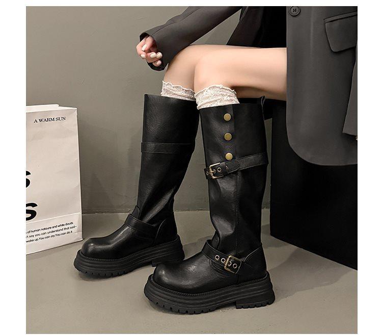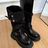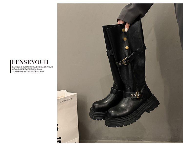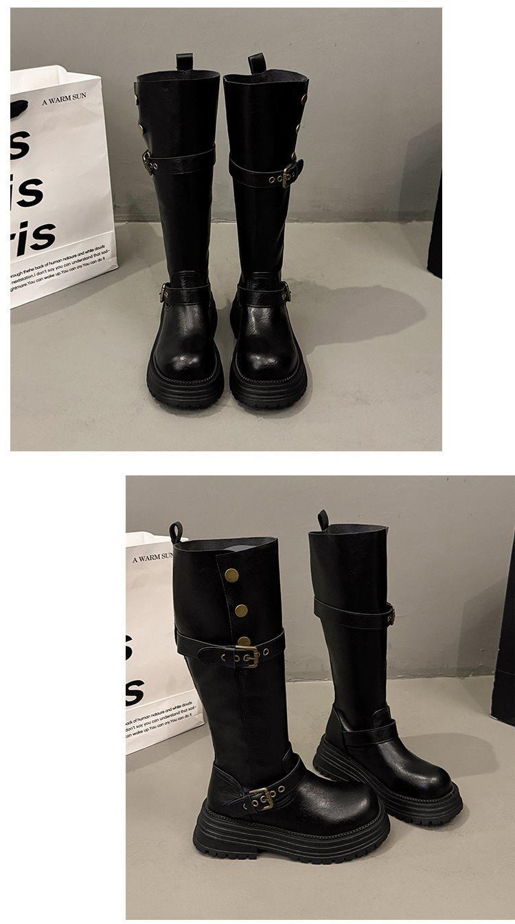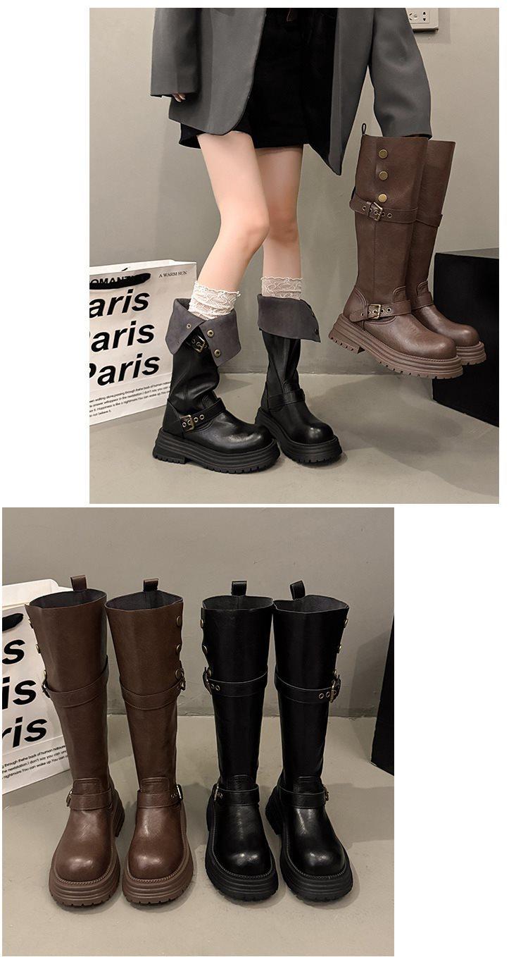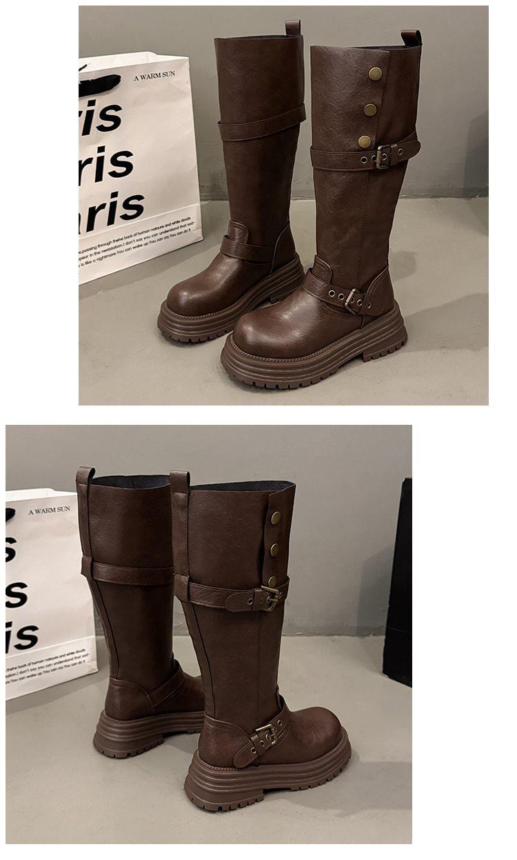 Botas altas largas Melaard marrones de suela gruesa para mujer verano 2025 nuevo otoño combinar falda vaquero occidental caballero botas