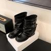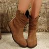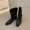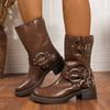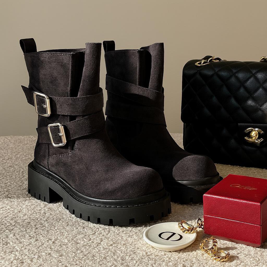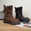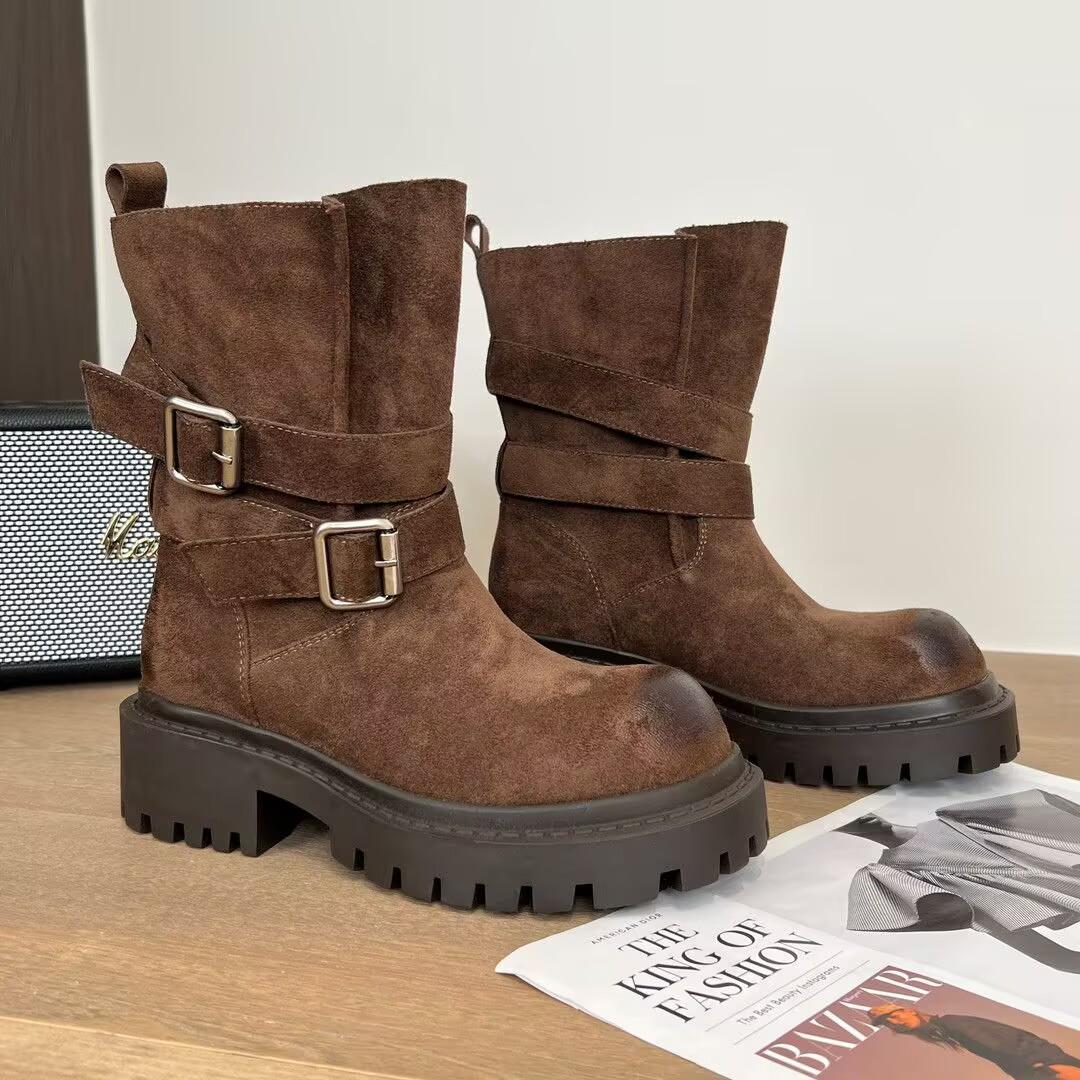 Botas Martin Serie Gris Hierro Grande 2025 Otoño Retro Tacón Grueso Botas Ajustadas de Media Caña Denim Botas de Mujer