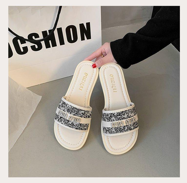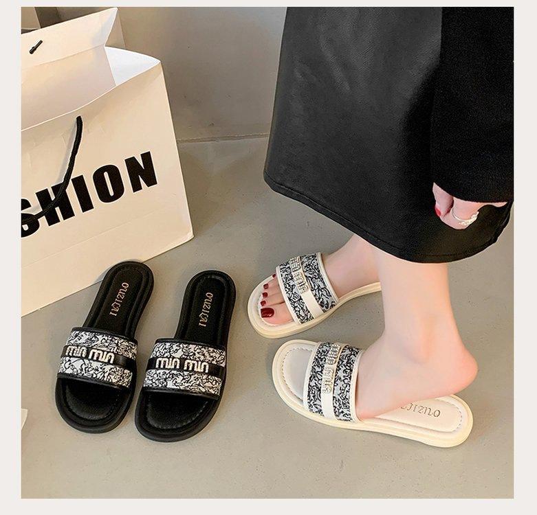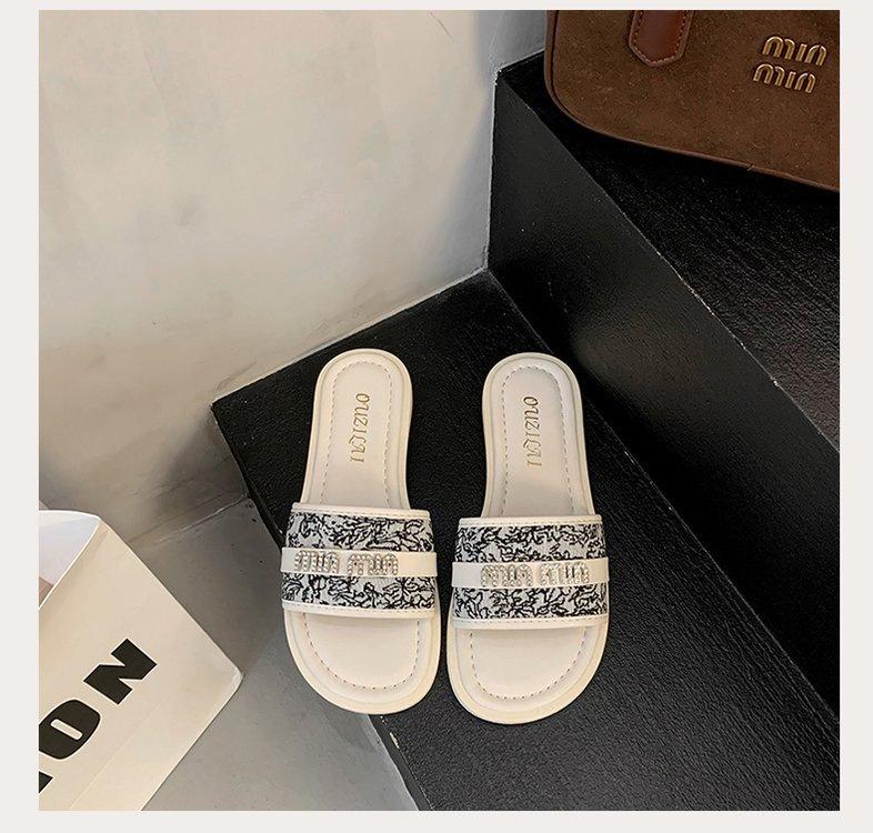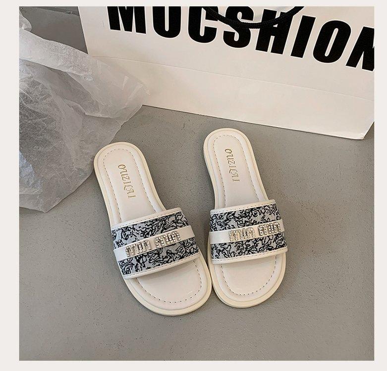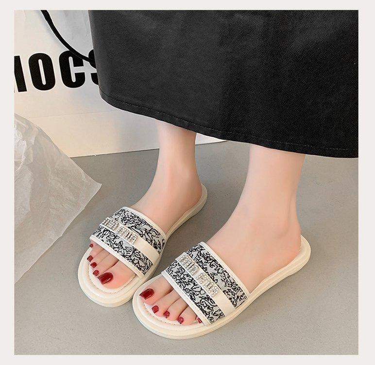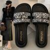 Sandalias planas de playa con pedrería para el verano 2025 Nuevas Zapatillas pequeñas Chanel de estilo francés de moda para mujer