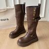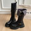Botas Negras Retro Estilo Británico de Tacón Grueso y Suela Gruesa hasta la Rodilla para Mujer 2025 Nuevo Otoño Altas por Encima de la Rodilla Aumentadoras de Altura Botas de Caballero