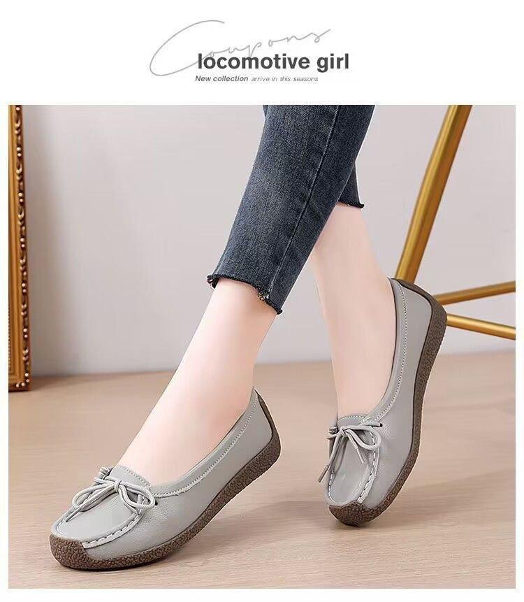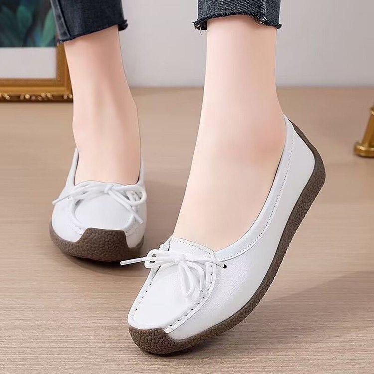 Mocasines de Otoño de Cuero Suave 2025 Nuevos Zapatos Individuales de Suela de Tendón para Mujer Slip-on Zapatos de Madre Flats Casuales