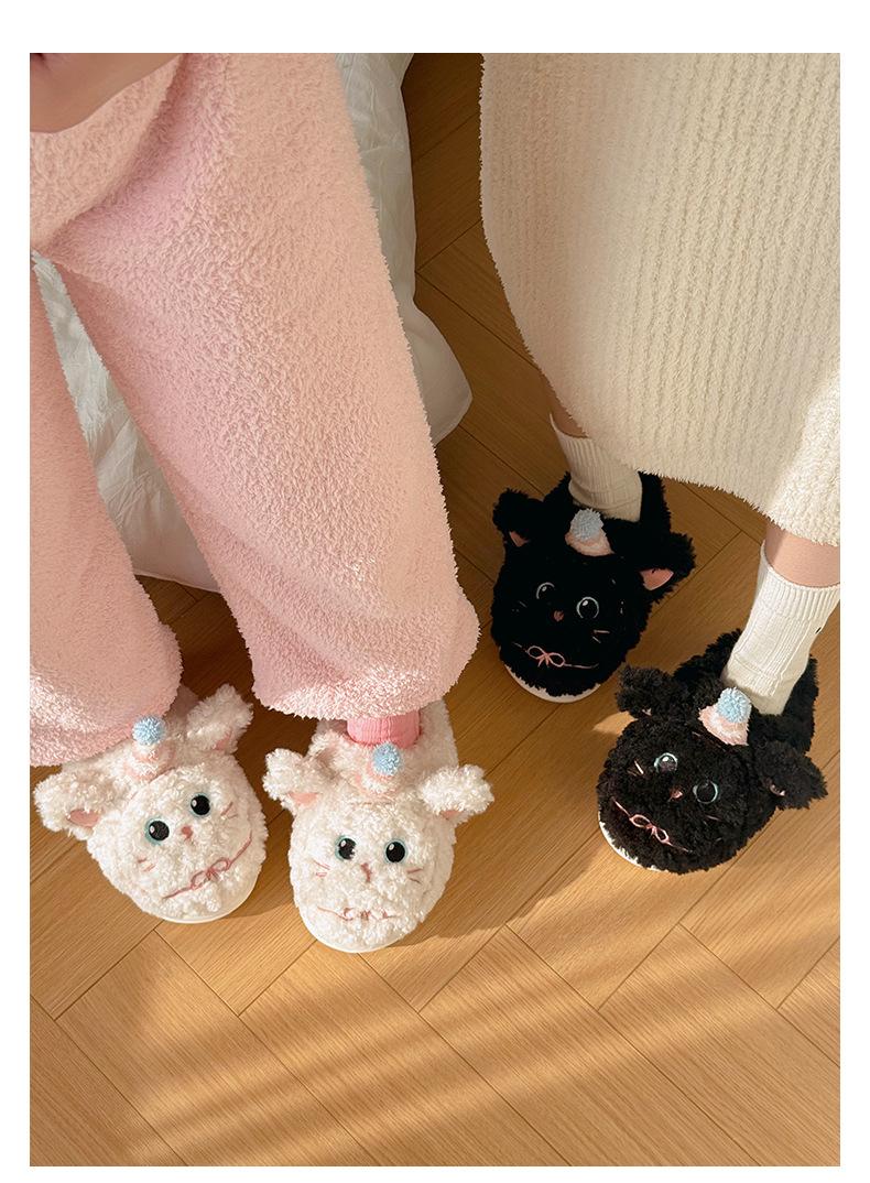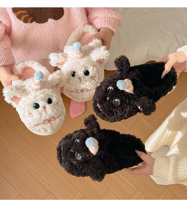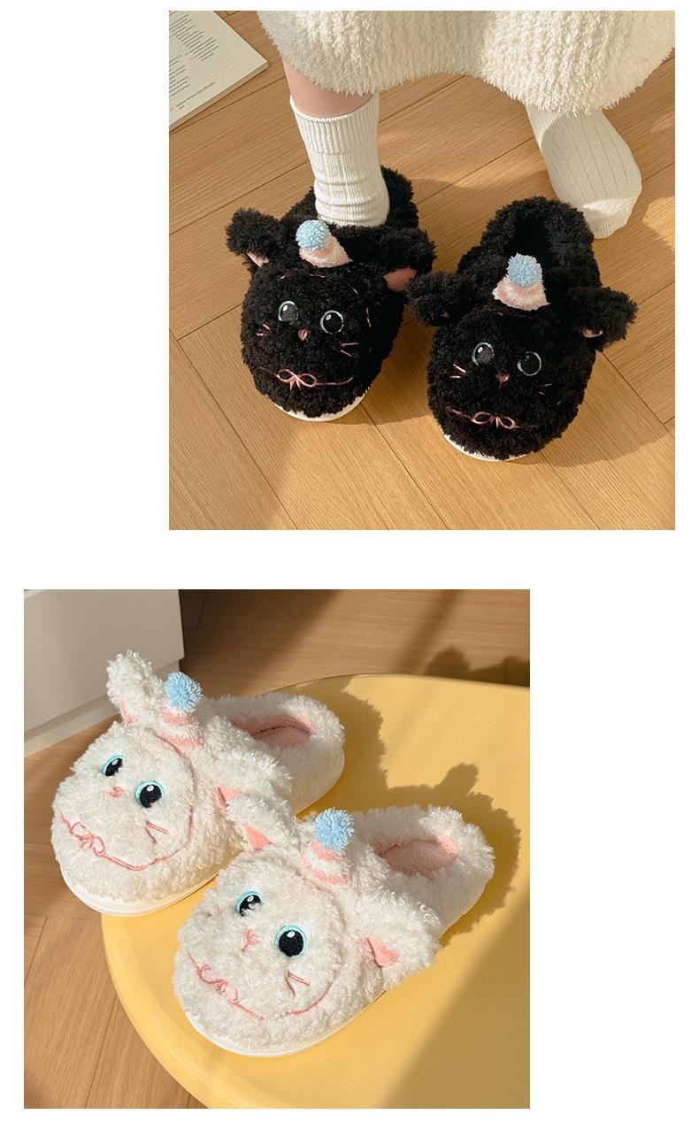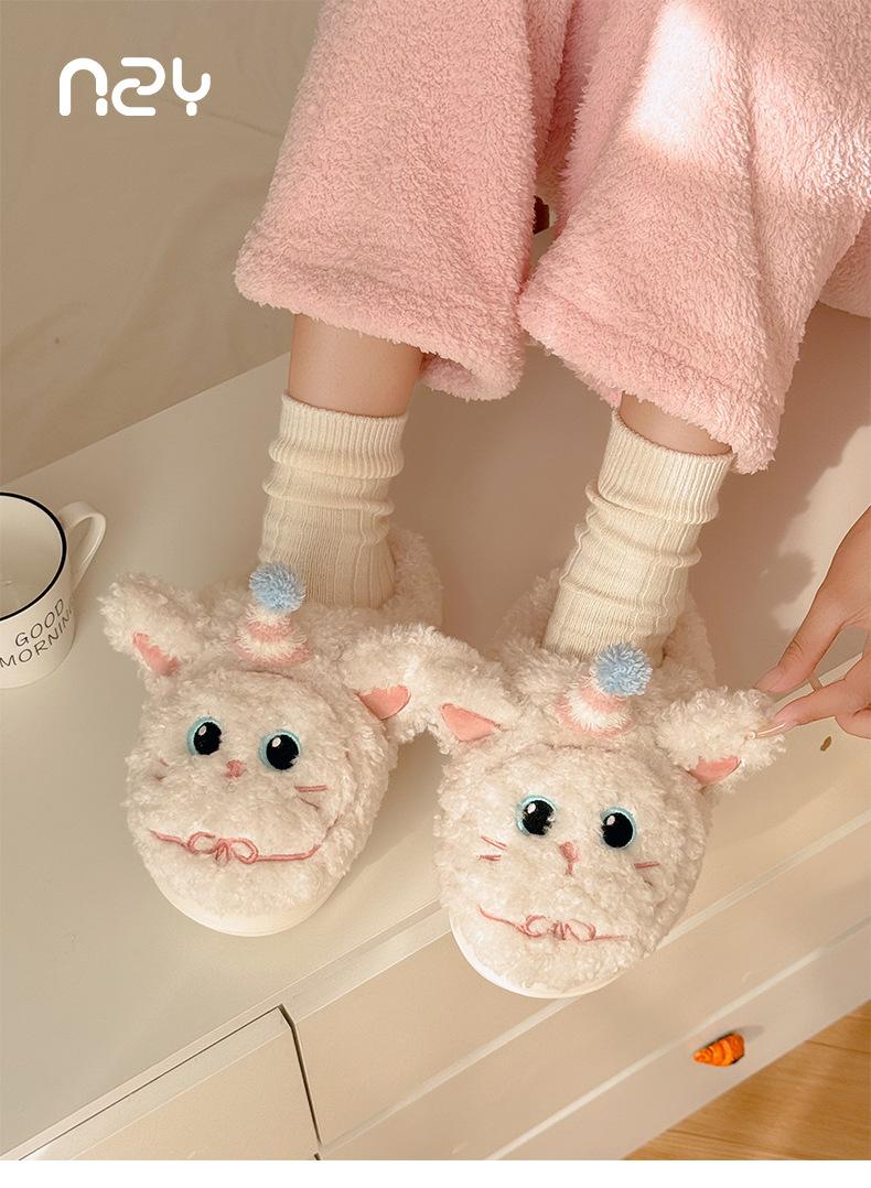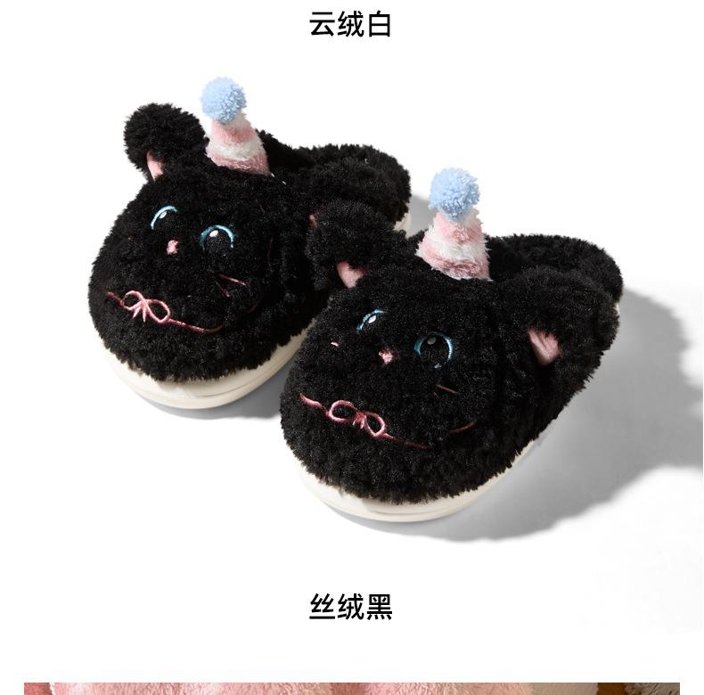 Pantuflas de Algodón de Gato con Sombrerito Tridimensional de Dibujos Animados Estilo Caliente Zapatos Cálidos de Invierno Zapatos de Casa Lindos y Esponjosos Suela Suave Zapatos Antideslizantes