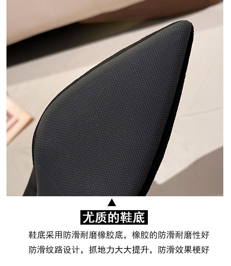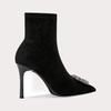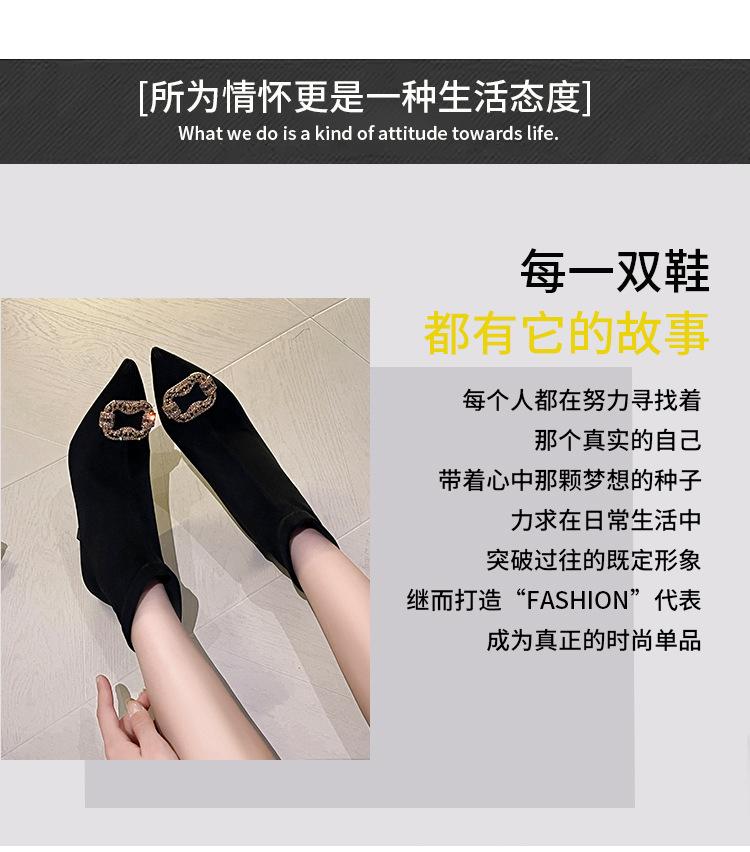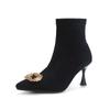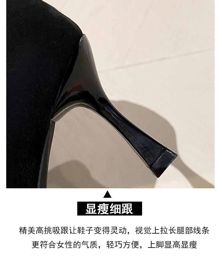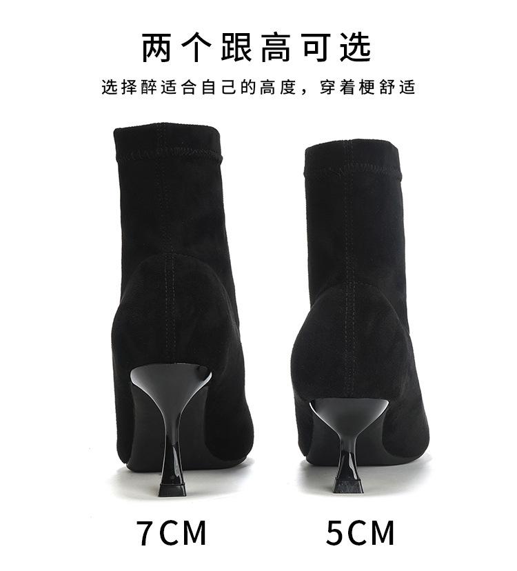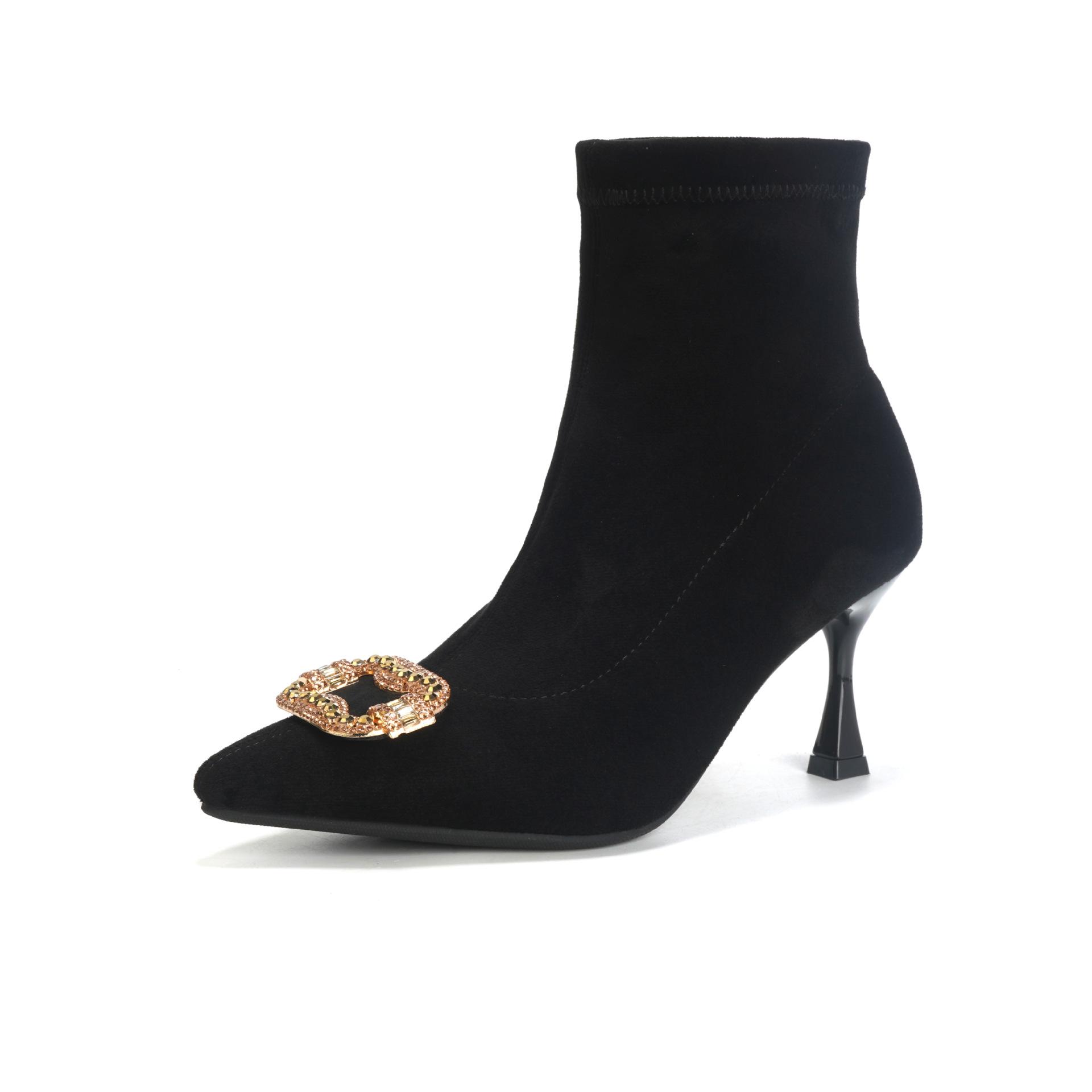 Botines de Tobillo de Tacón Alto con Punta Afilada y Hebilla Cuadrada de Pedrería para Mujer Otoño Invierno Nuevo Estilo Tacón de Aguja Gamuza Negra Elásticos Adelgazantes Botines de Tobillo Botines Calcetín