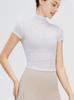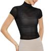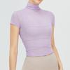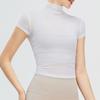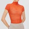 Blusa de yoga retro de cuello alto para mujer, blusa deportiva de secado rápido, top de fitness de malla con protección solar, ropa de yoga